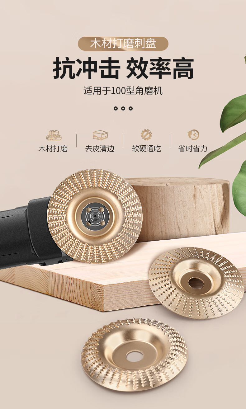 MeiKeLa woodworking grinding disc thorn disk polishing artifact wood wood grinding tool polishing root carving angle grinder 3 pieces golden flat surface 100mm