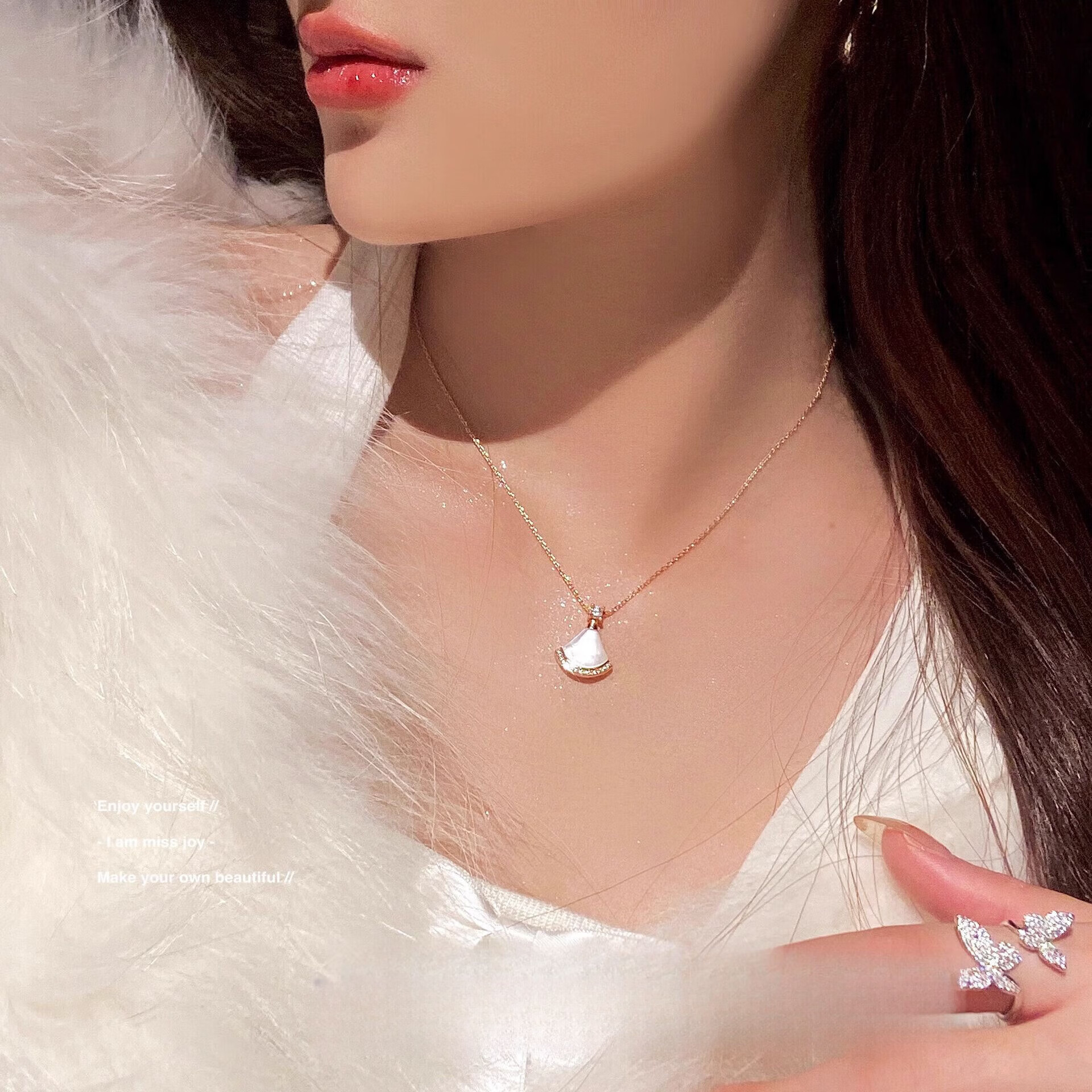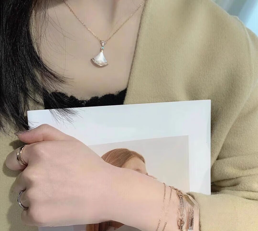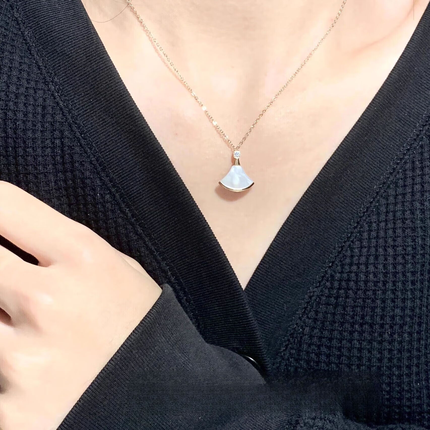 Fat Donglai's same style DL 1998 light luxury small skirt necklace 18k gold Chaumet platinum white mother-of-pearl small fan large rose gold with diamond white mother-of-pearl