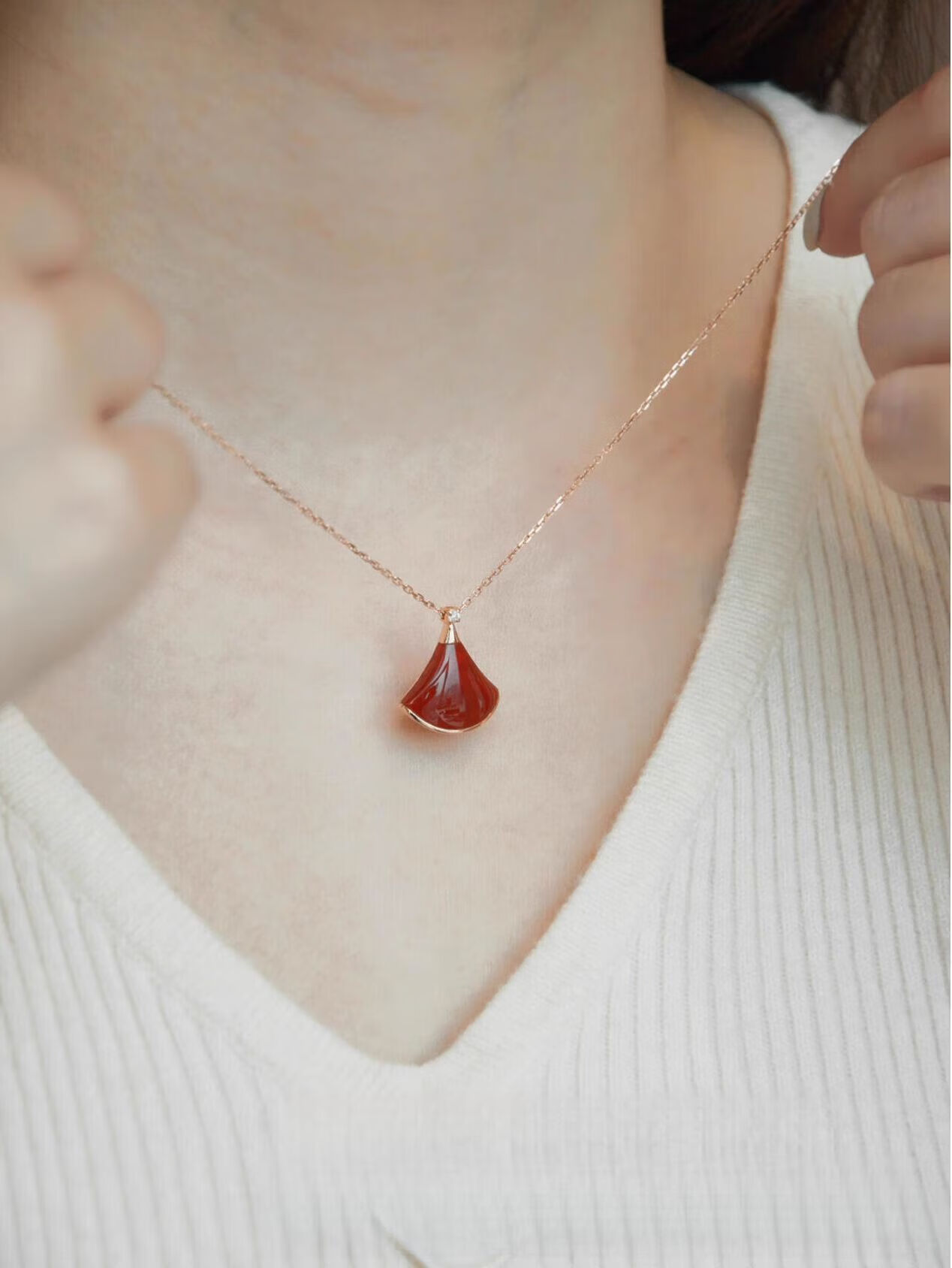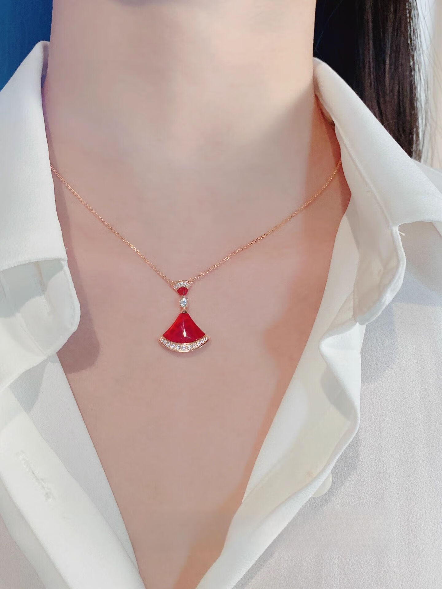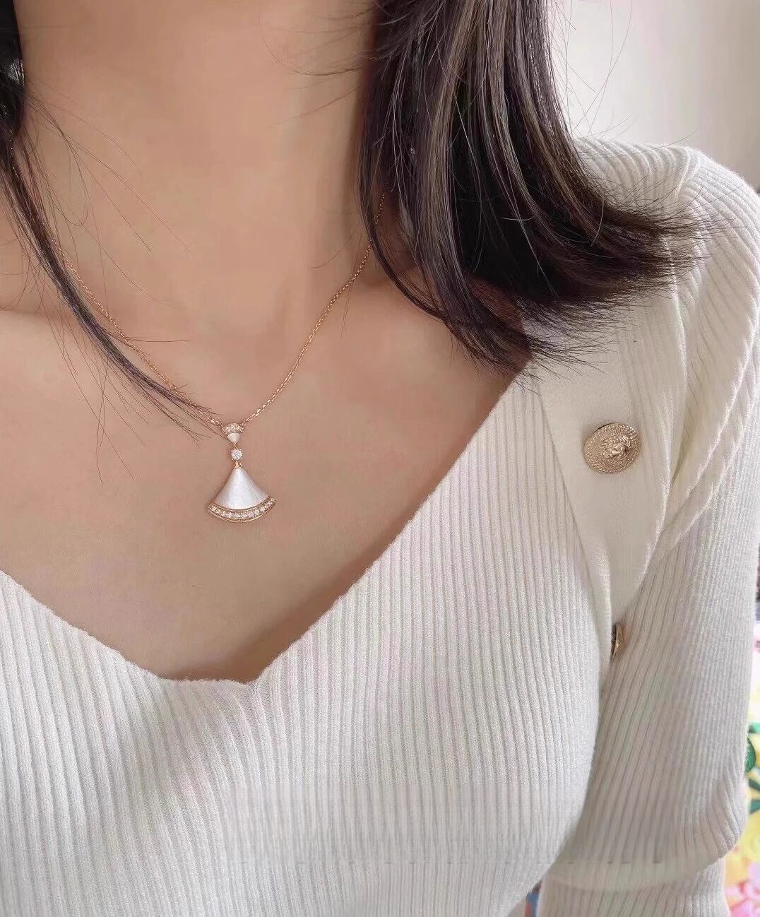 Fat Donglai's same style DL 1998 light luxury small skirt necklace 18k gold Chaumet platinum white mother-of-pearl small fan large rose gold with diamond white mother-of-pearl