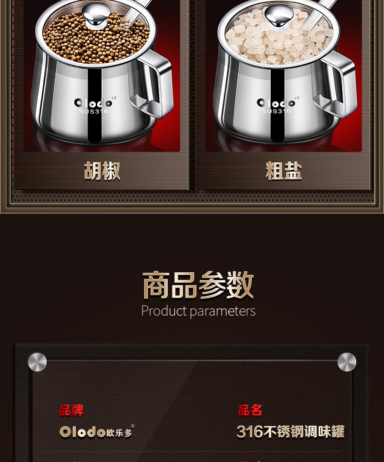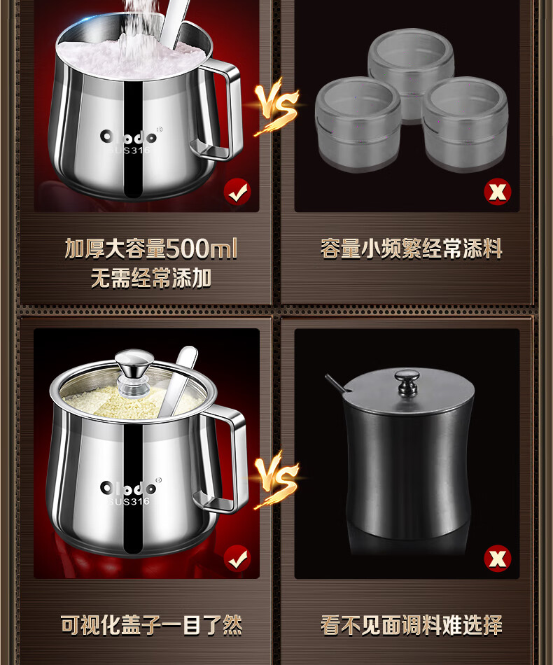 Olodo 316 stainless steel kitchen seasoning shaker salt shaker seasoning box seasoning utensils seasoning bottle seasoning bottle seasoning box 316 seasoning jar 1 pack 304 spoons 500ml