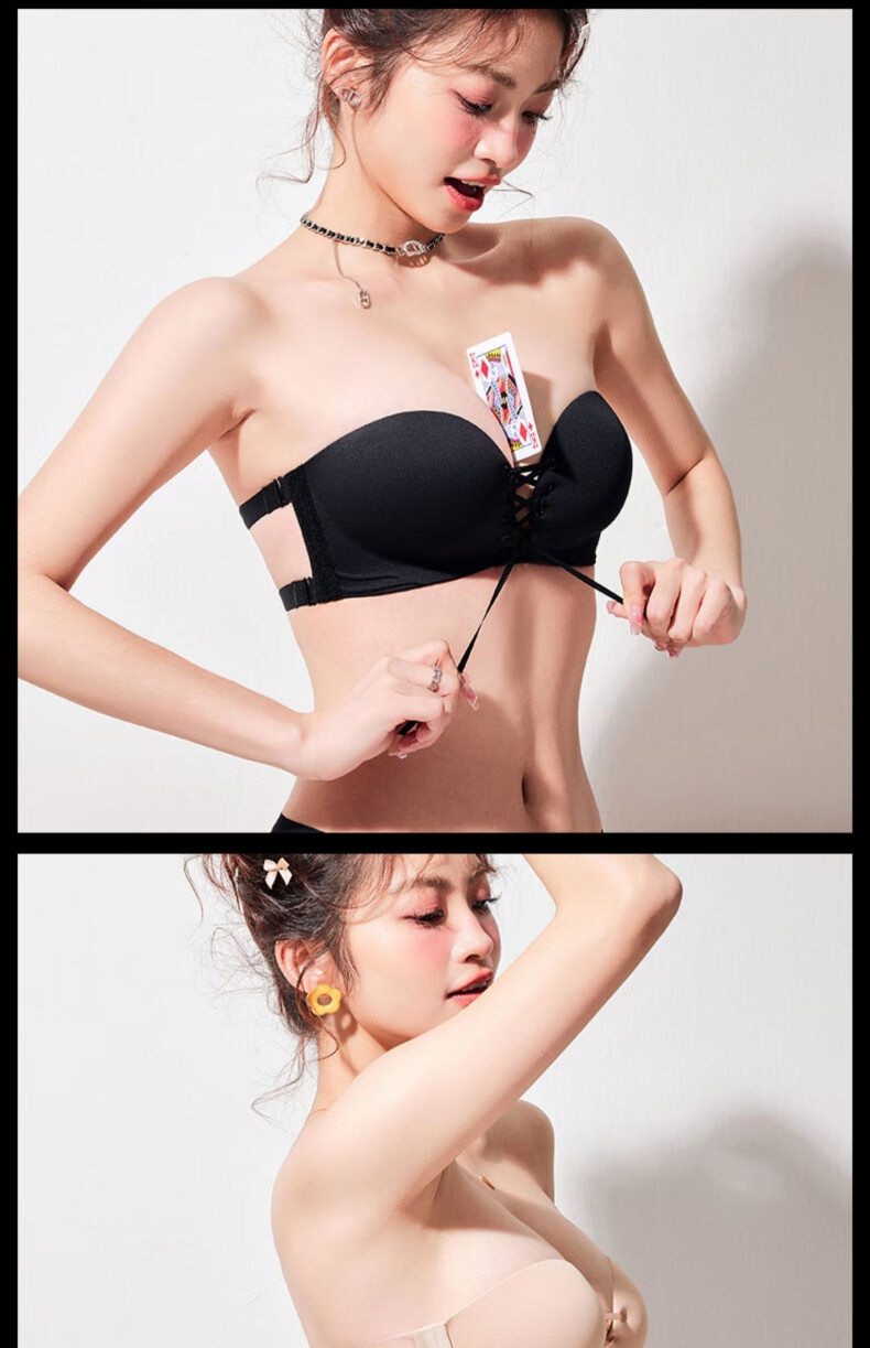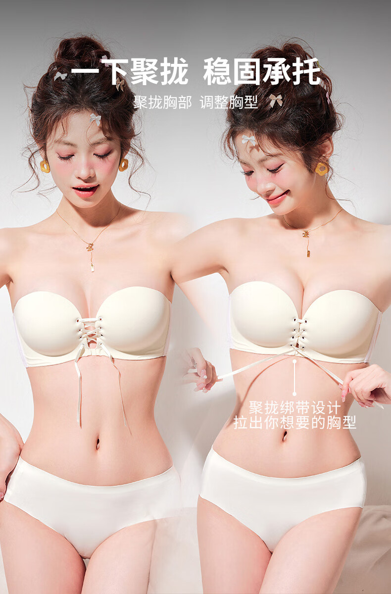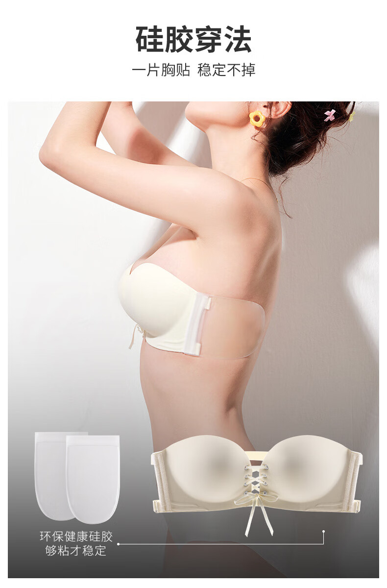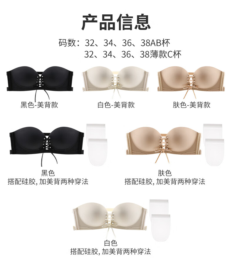 Miss Polly's strapless underwear for wedding dresses, specially designed for women with beautiful backs, non-slip gathered bandeau bra, wraps small breasts to make them look bigger, special for suspender skirts, nude skin + nude skin 70A