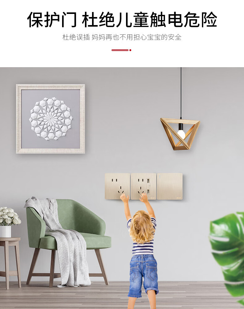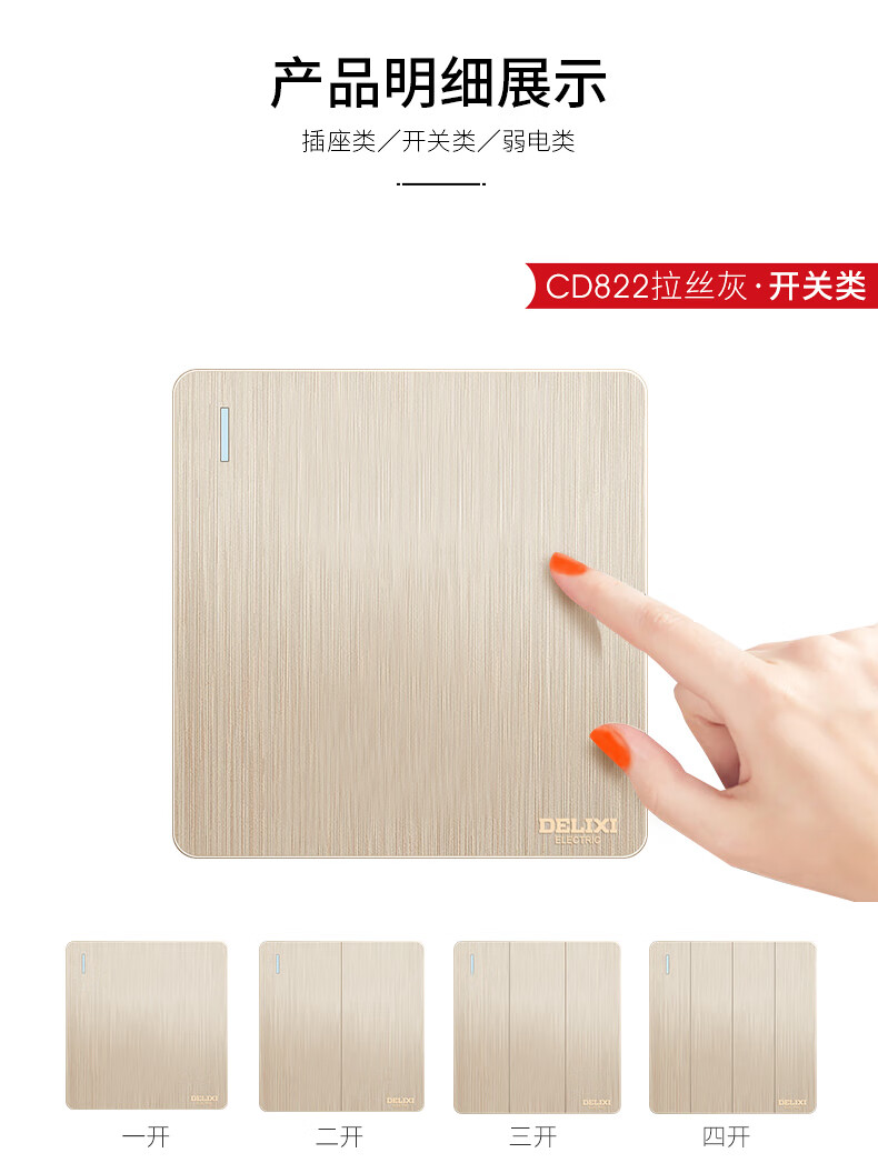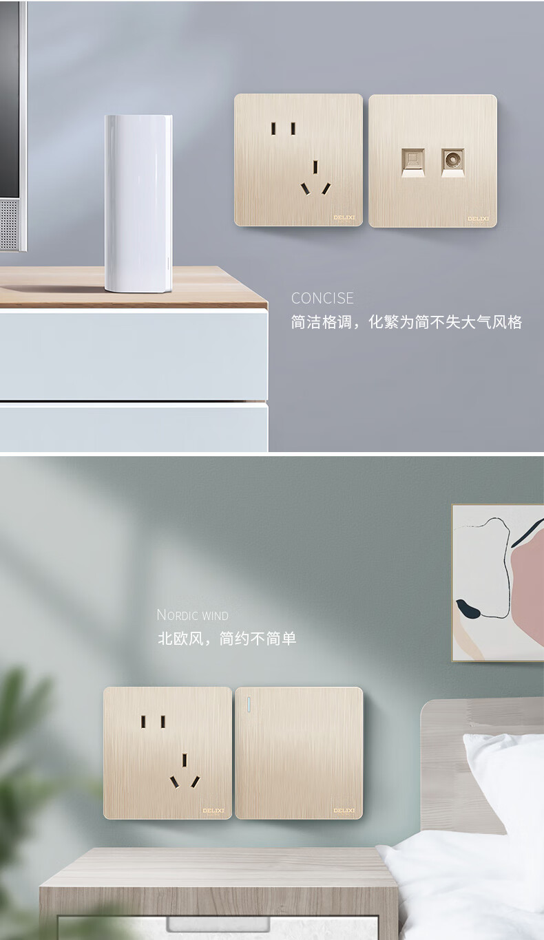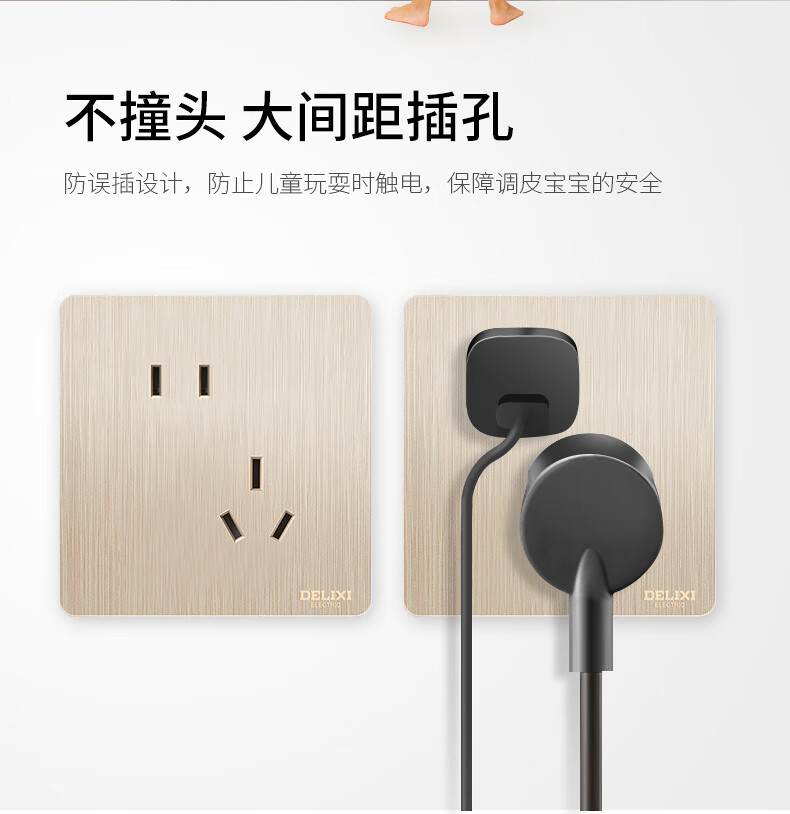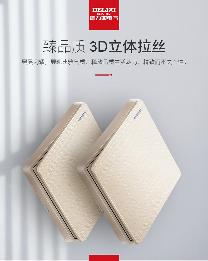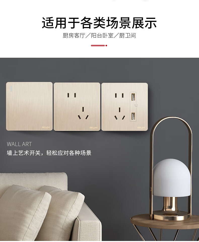 Champagne brushed gold switch socket panel 86 type concealed socket 5 five-hole wall switch oblique five holes