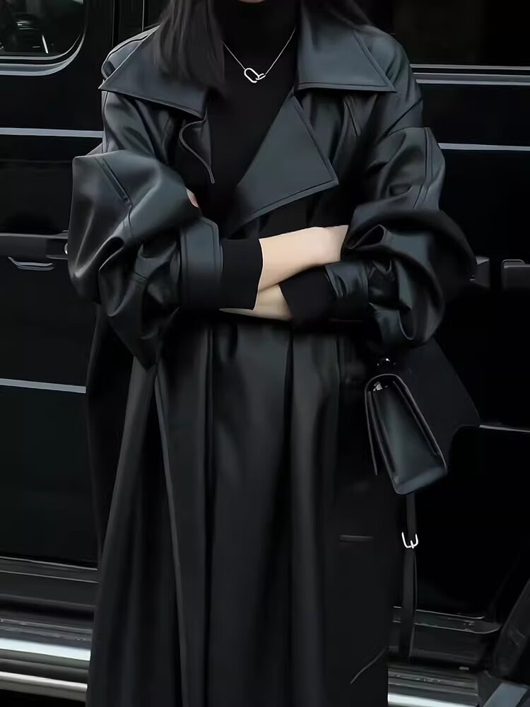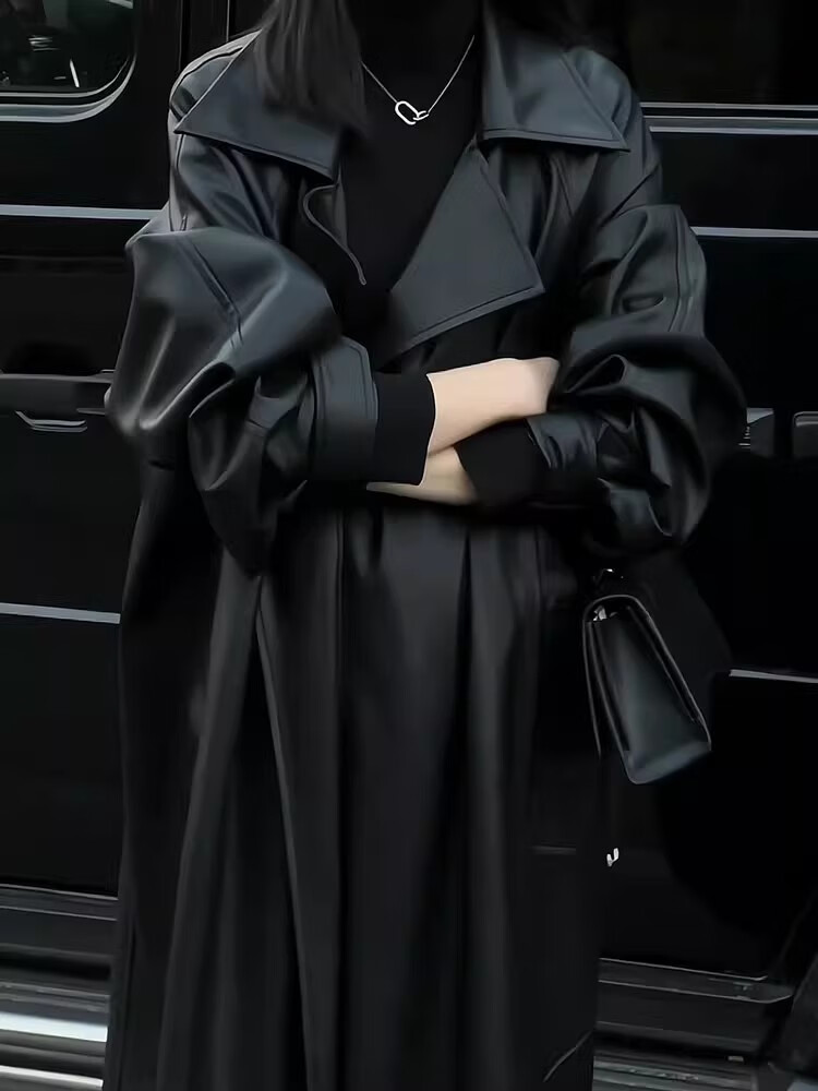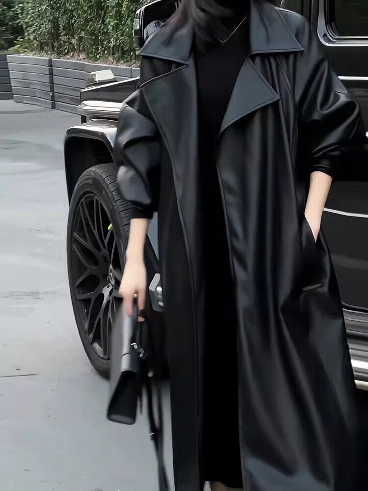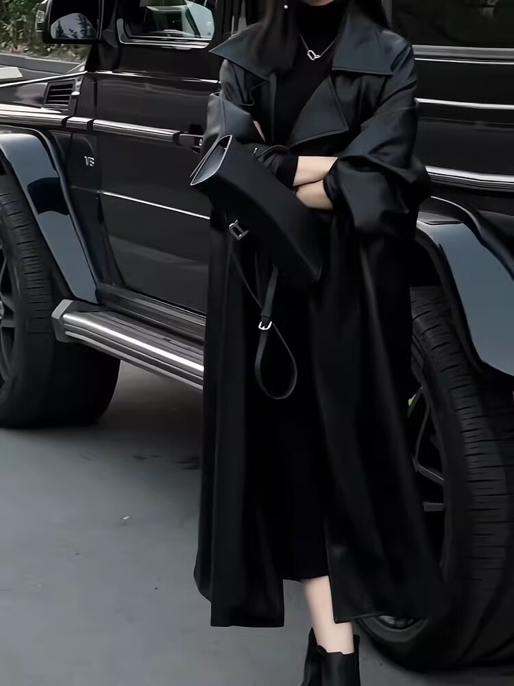 MODX Hong Kong women's high-end fashion windbreaker women's loose 2024 autumn and winter new temperament mid-length leather jacket regular black version leather jacket with belt S 110Jin Jin is equal to 0.5 kg within