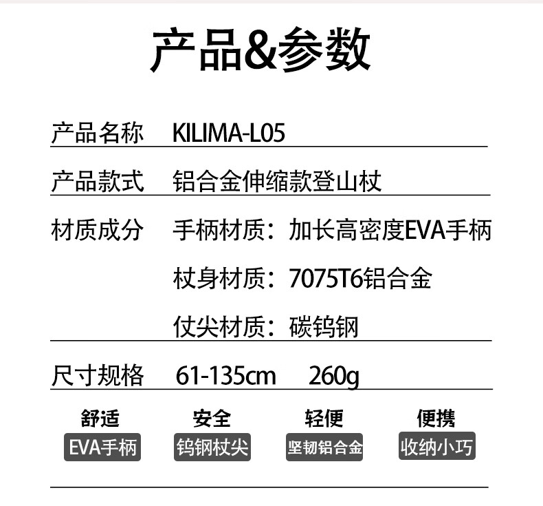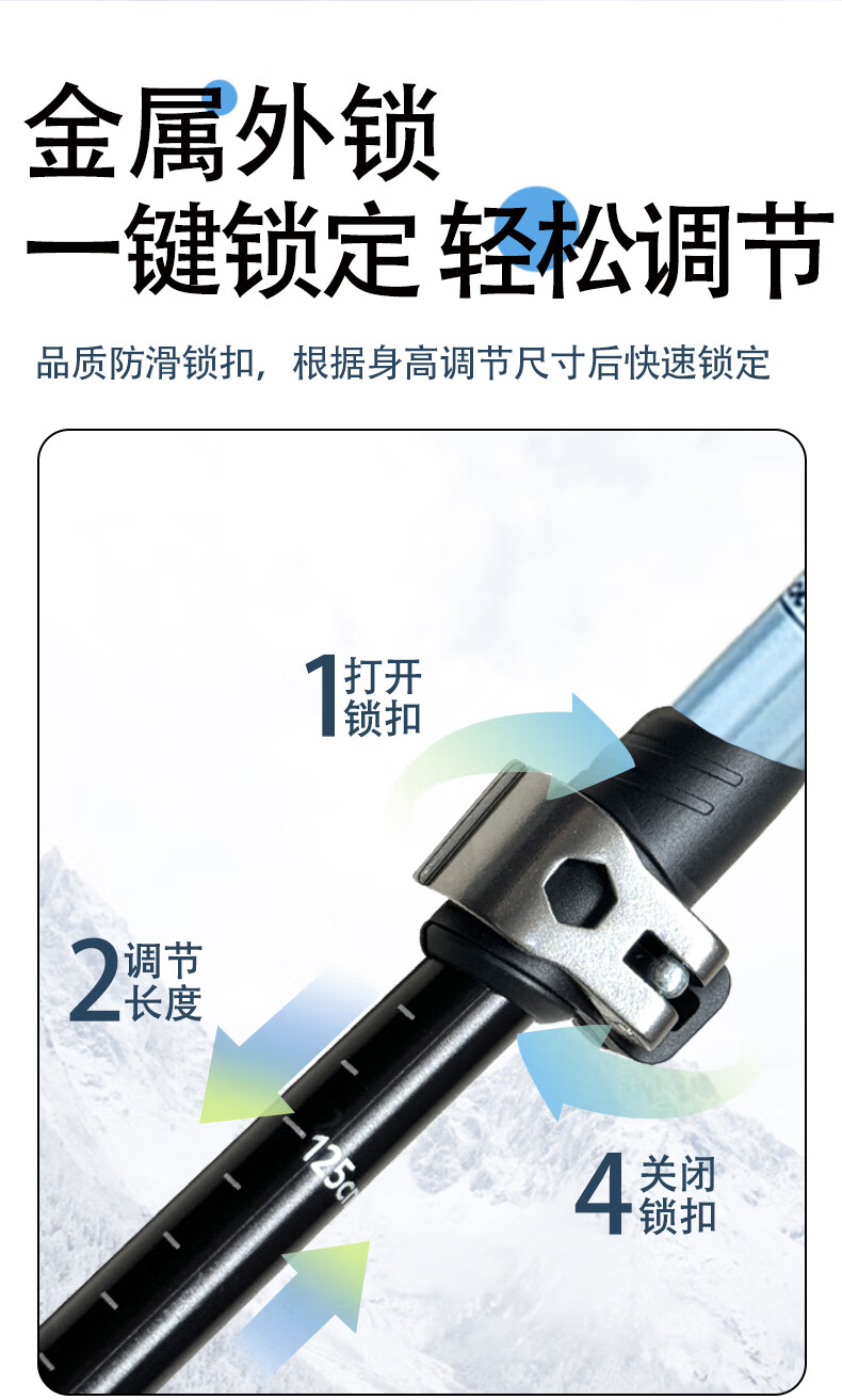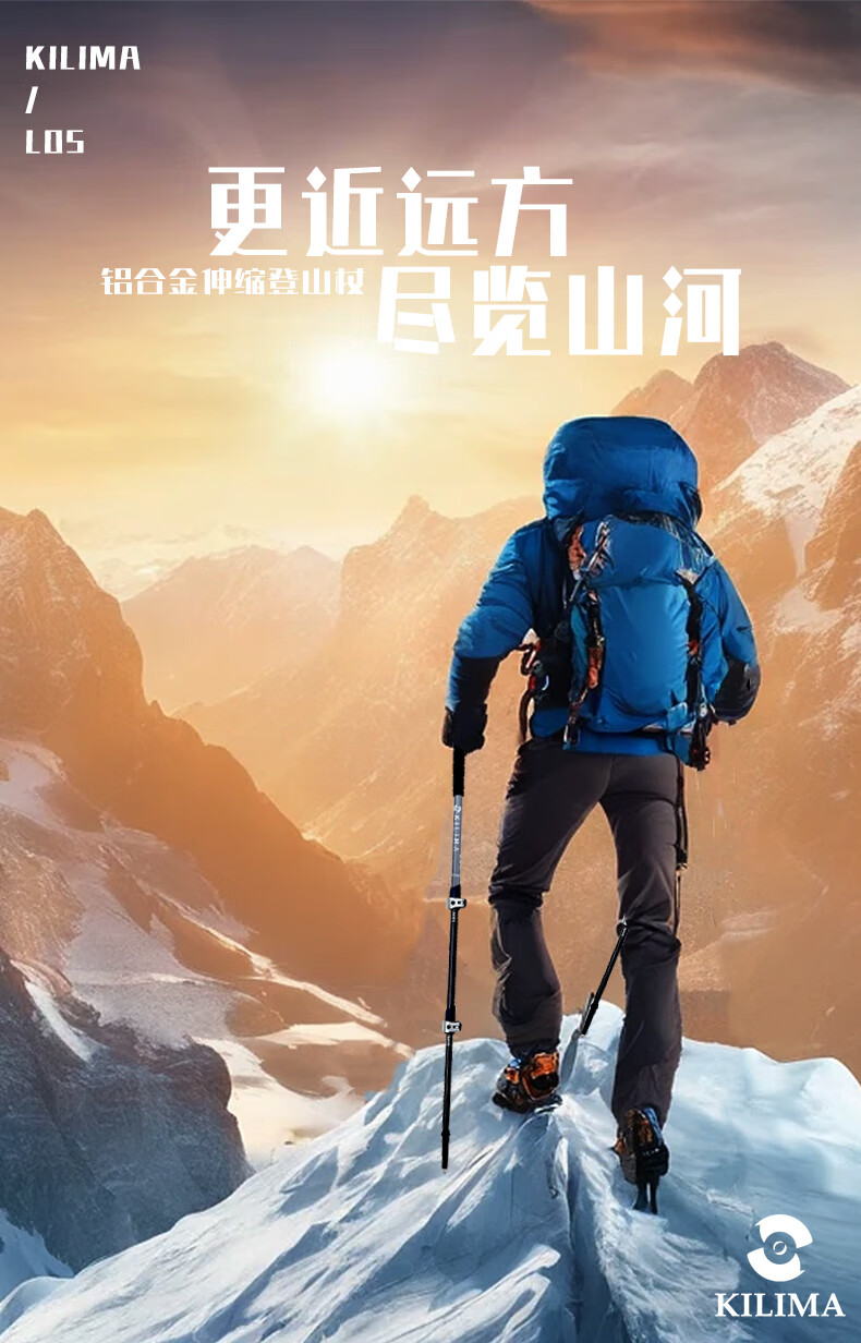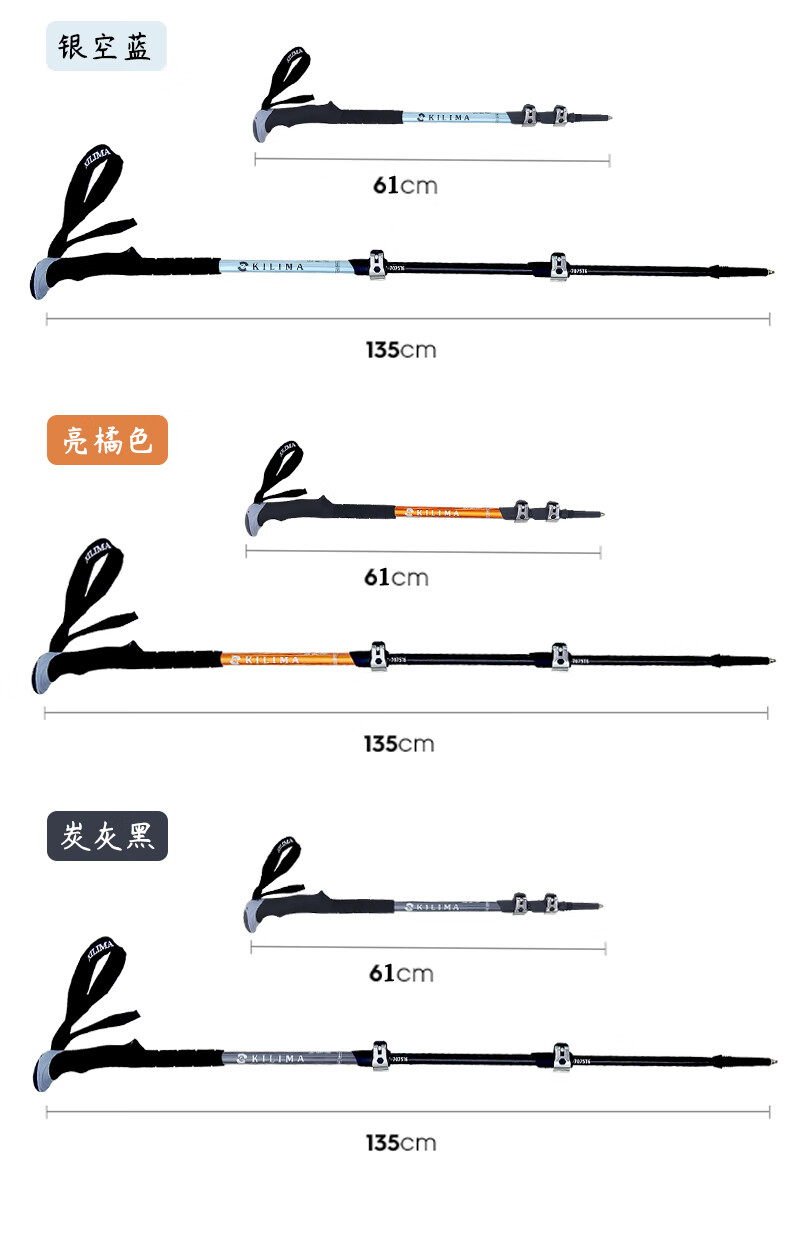 Kilima heavy-duty aluminum alloy telescopic trekking pole with metal buckle heavy-duty outdoor mountaineering and hiking self-defense L05 bright orange one