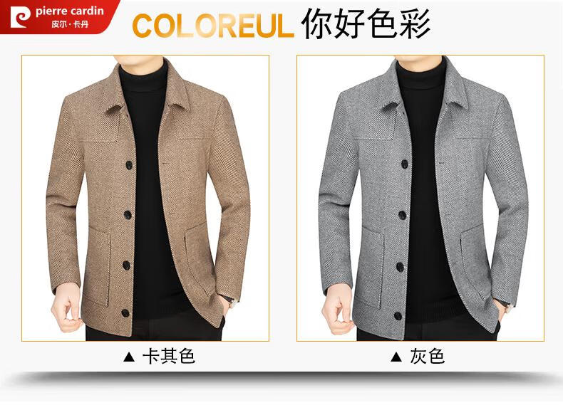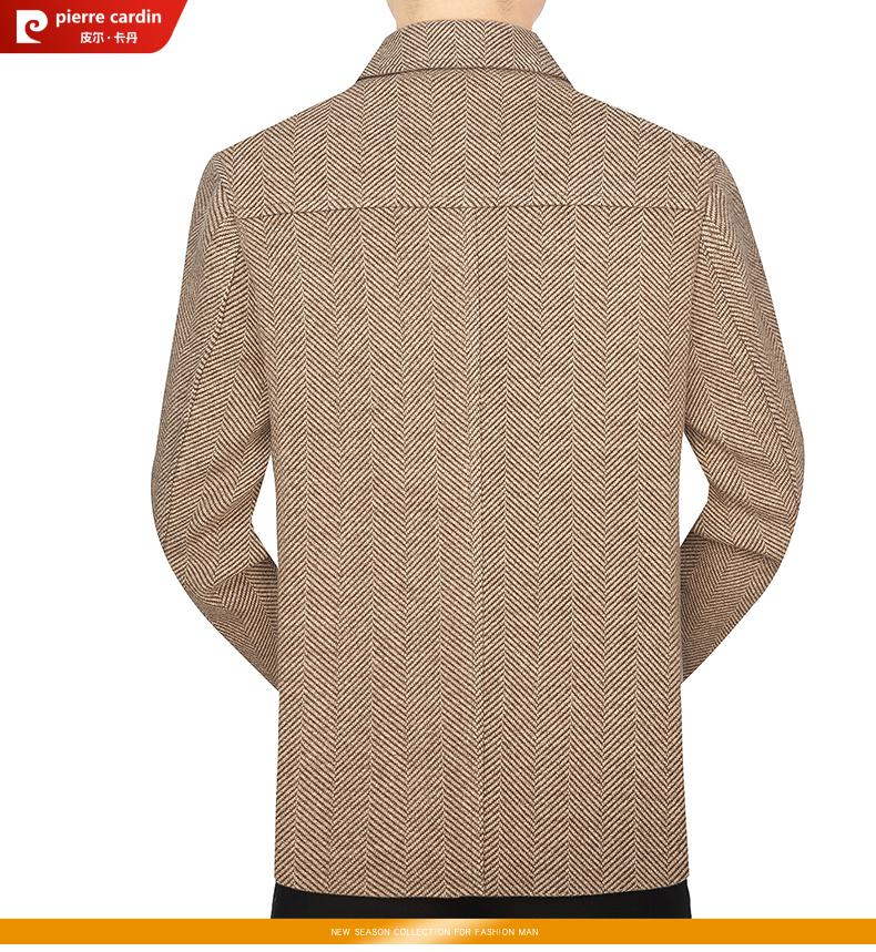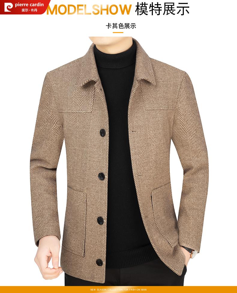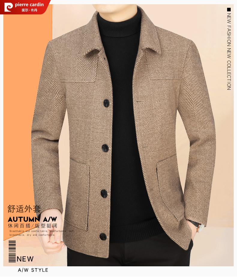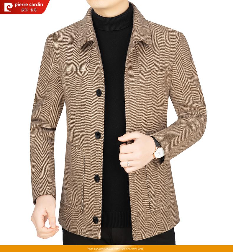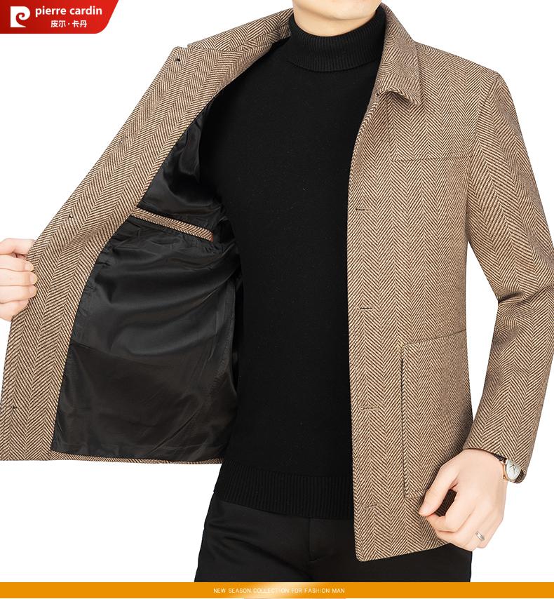 Pierre Cardin high-end men's woolen woolen jacket spring and autumn new style young and middle-aged casual lapel men's jacket dad top Khaki XL 180 (135-150Jin Jin is equal to 0.5 kg)