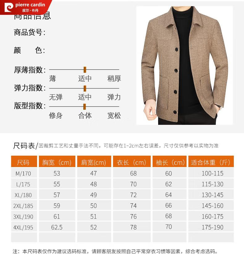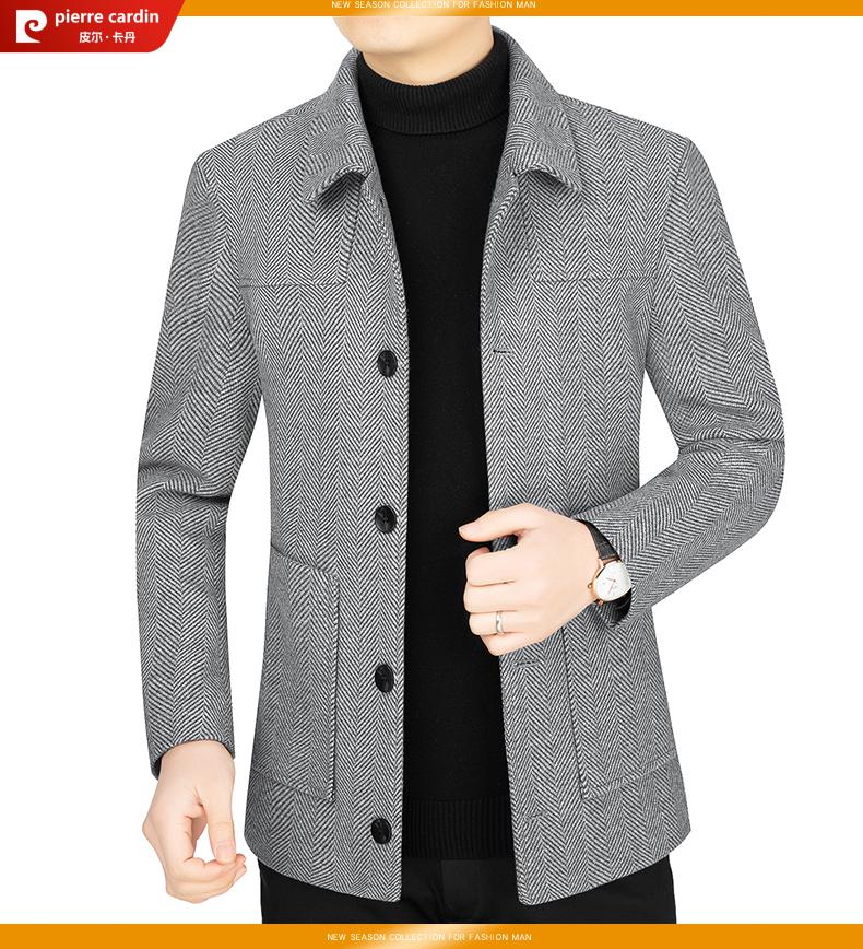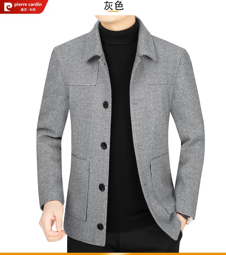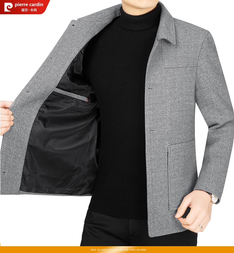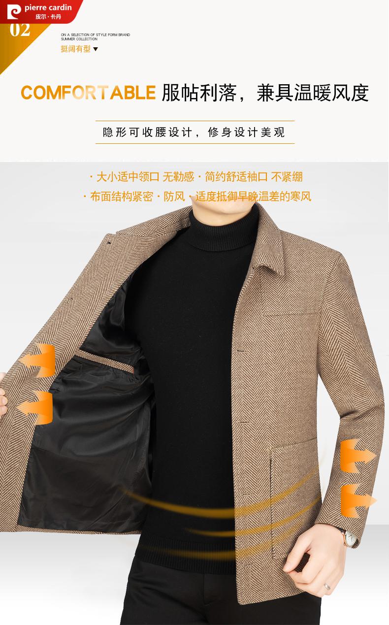 Pierre Cardin high-end men's woolen woolen jacket spring and autumn new style young and middle-aged casual lapel men's jacket dad top Khaki XL 180 (135-150Jin Jin is equal to 0.5 kg)