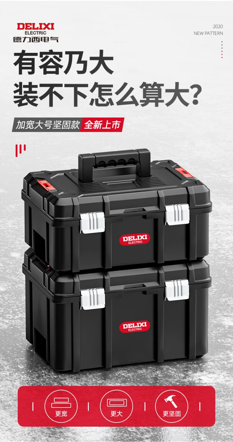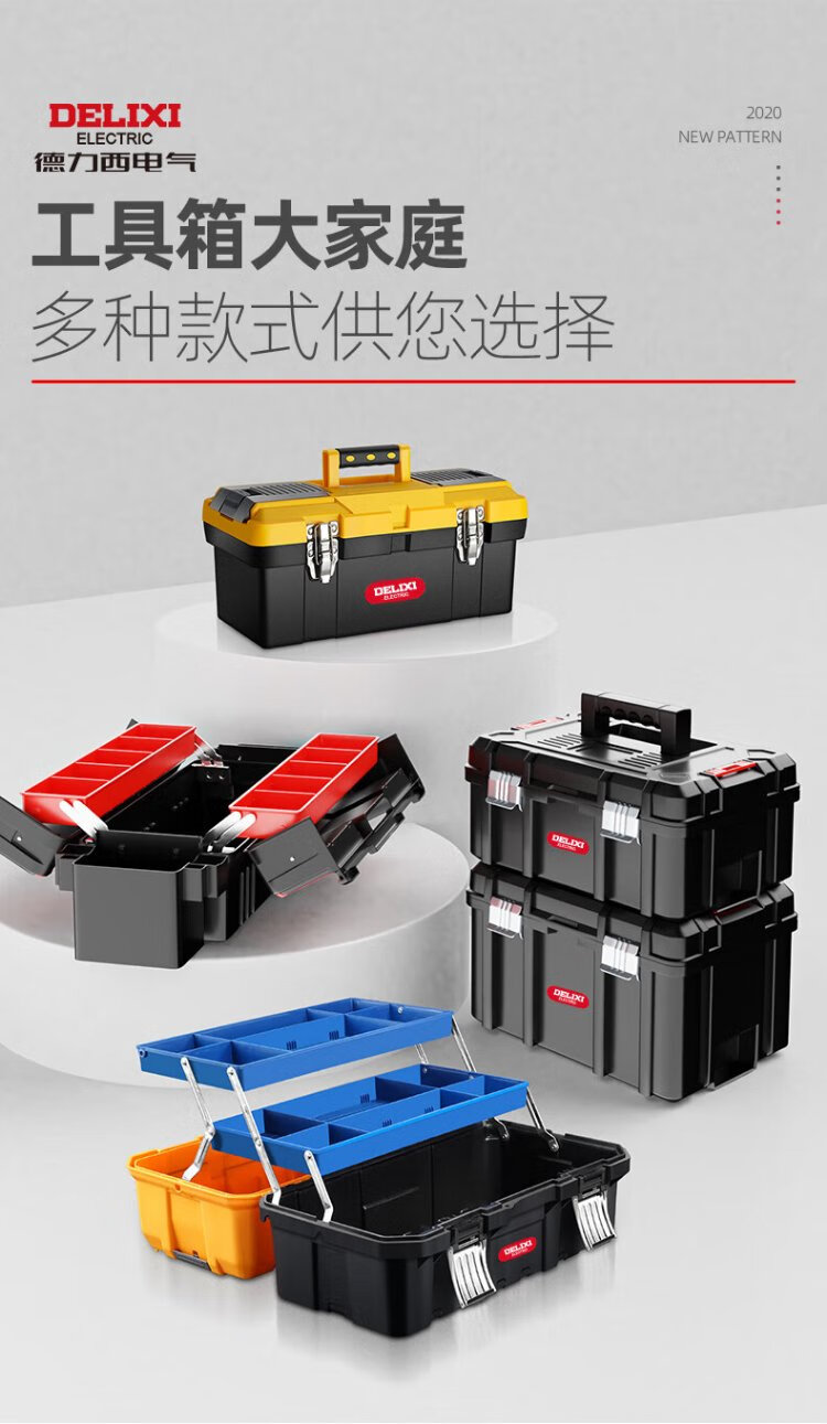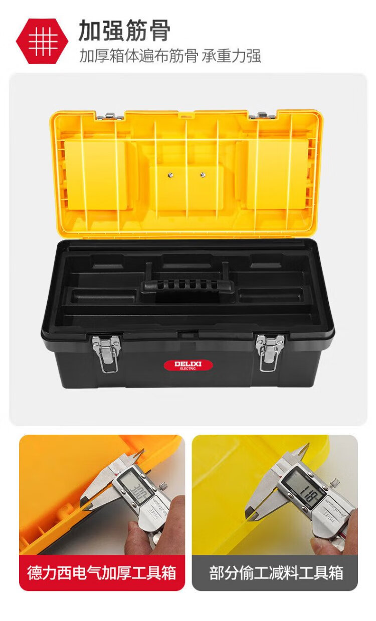Delixi Toolbox Storage Box Hardware Large Industrial Grade Home Portable Car Multifunctional Maintenance Electrician Discharge Hammer 18-inch Classic Double Layer Thickened New Material + Toolbox