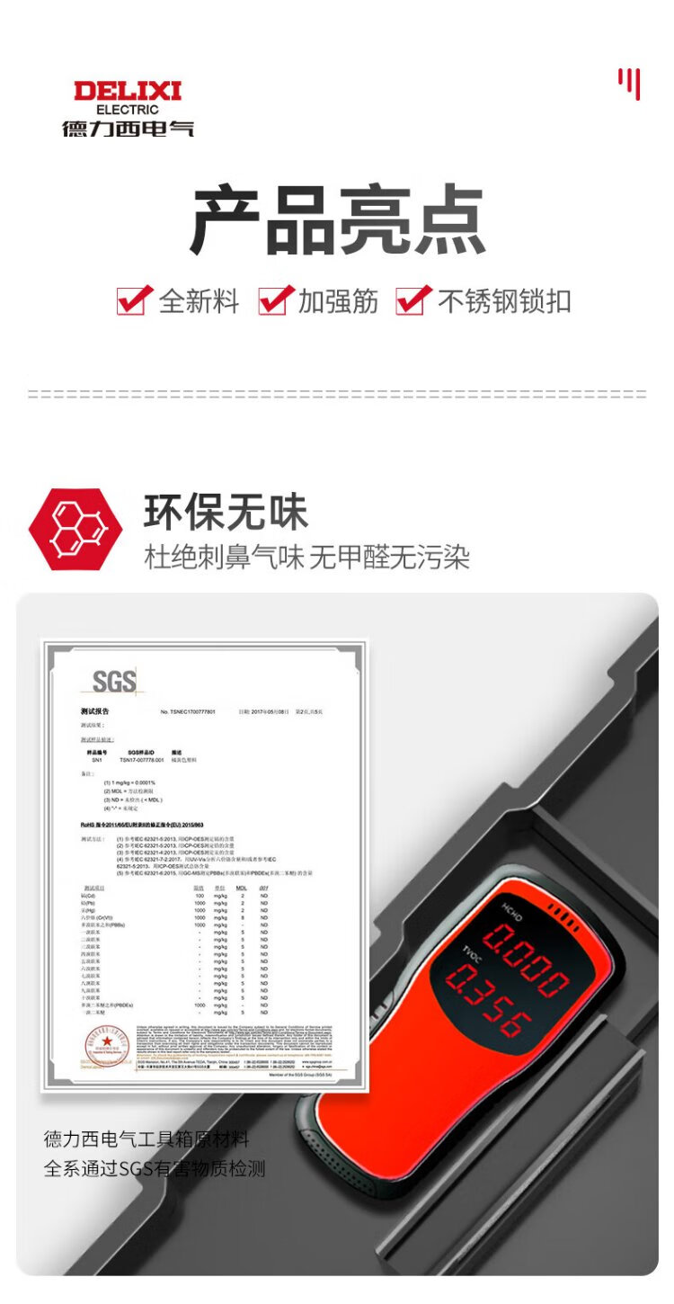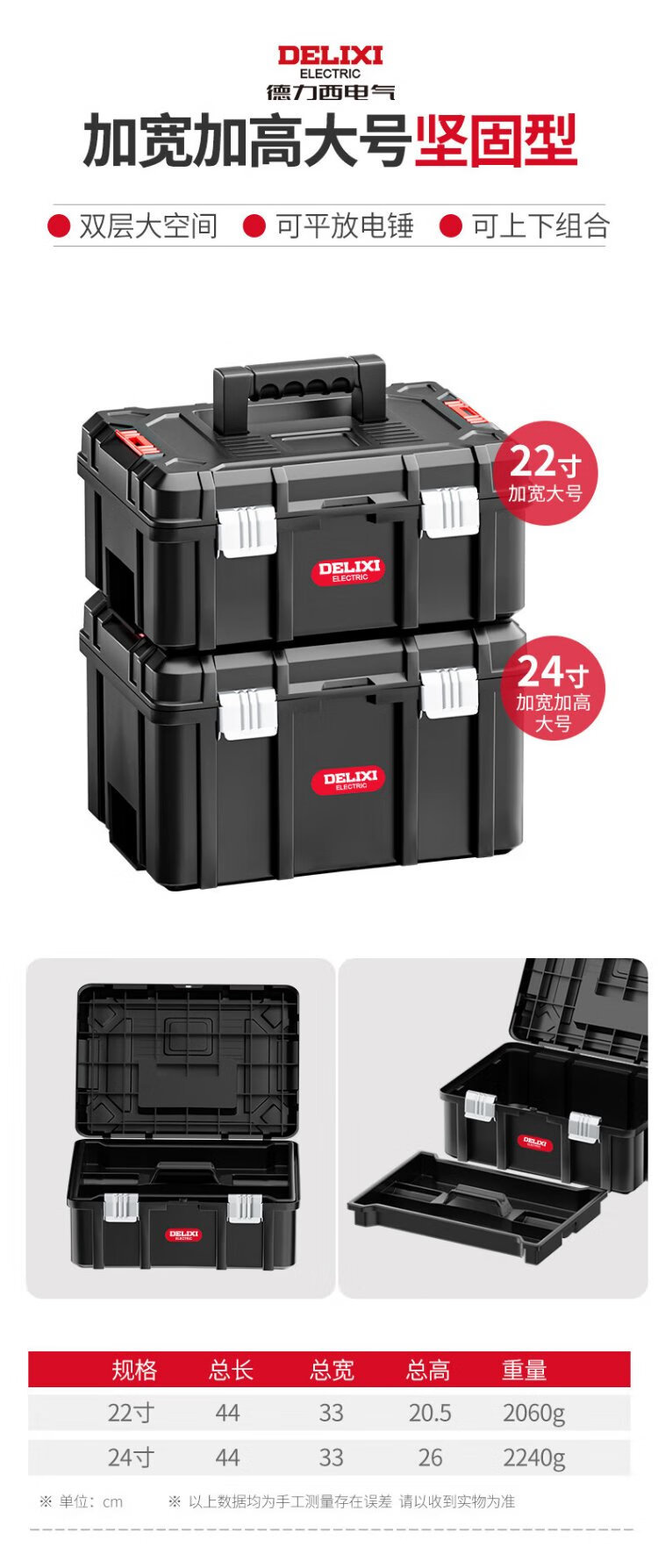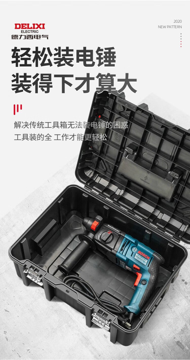 Delixi Toolbox Storage Box Hardware Large Industrial Grade Home Portable Car Multifunctional Maintenance Electrician Discharge Hammer 18-inch Classic Double Layer Thickened New Material + Toolbox