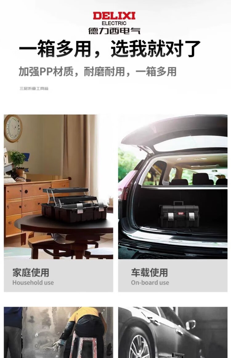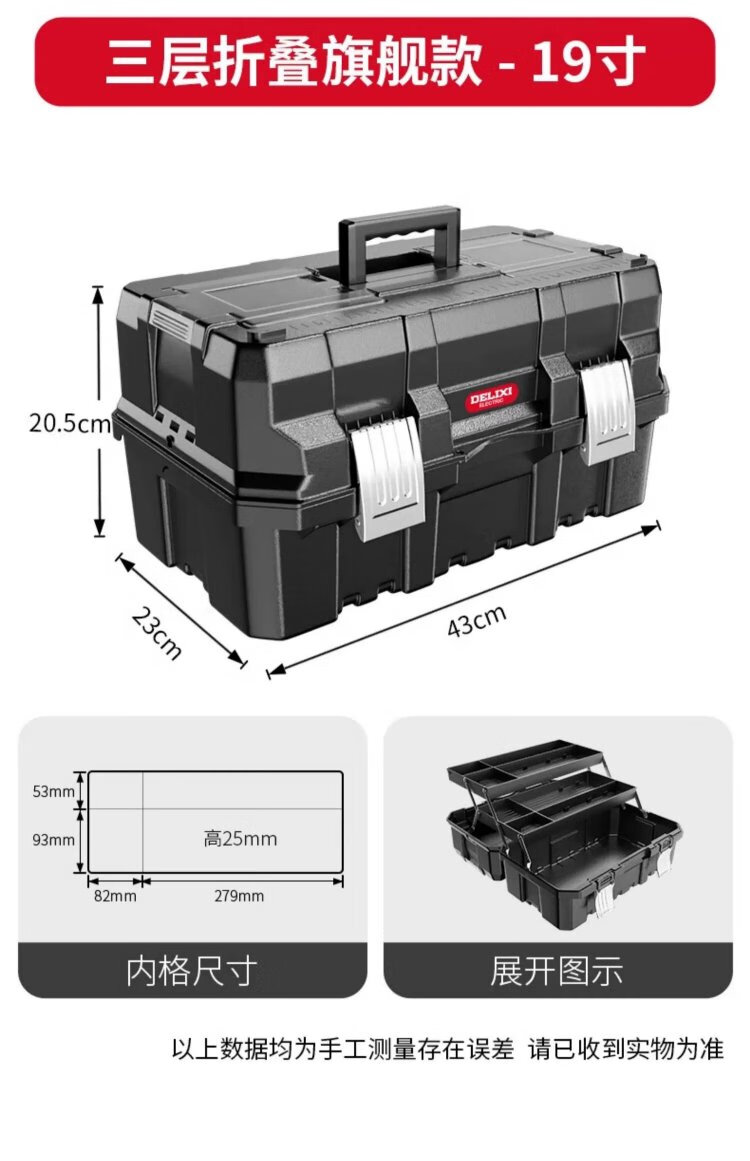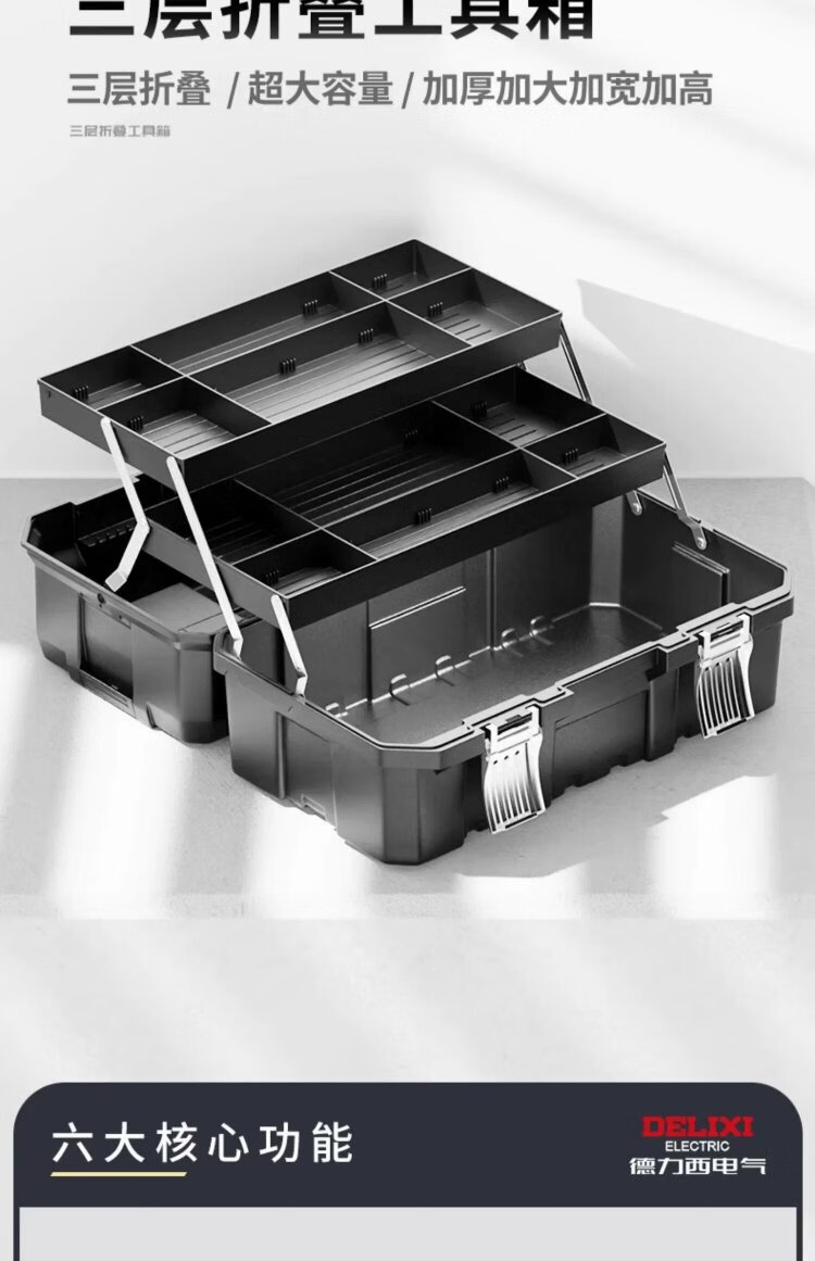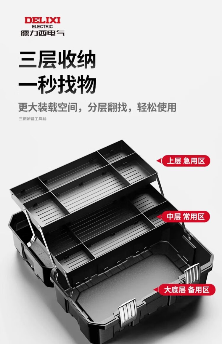 Delixi tool box industrial-grade household set multi-functional hardware art box electrician multi-layer folding storage box environmentally friendly material 17-inch environmentally friendly thickened metal buckle