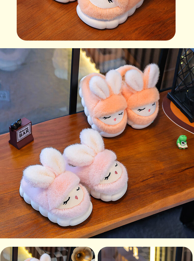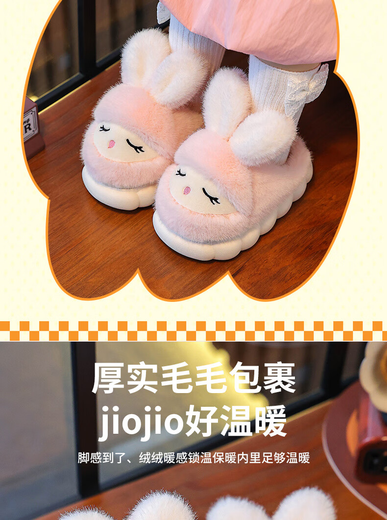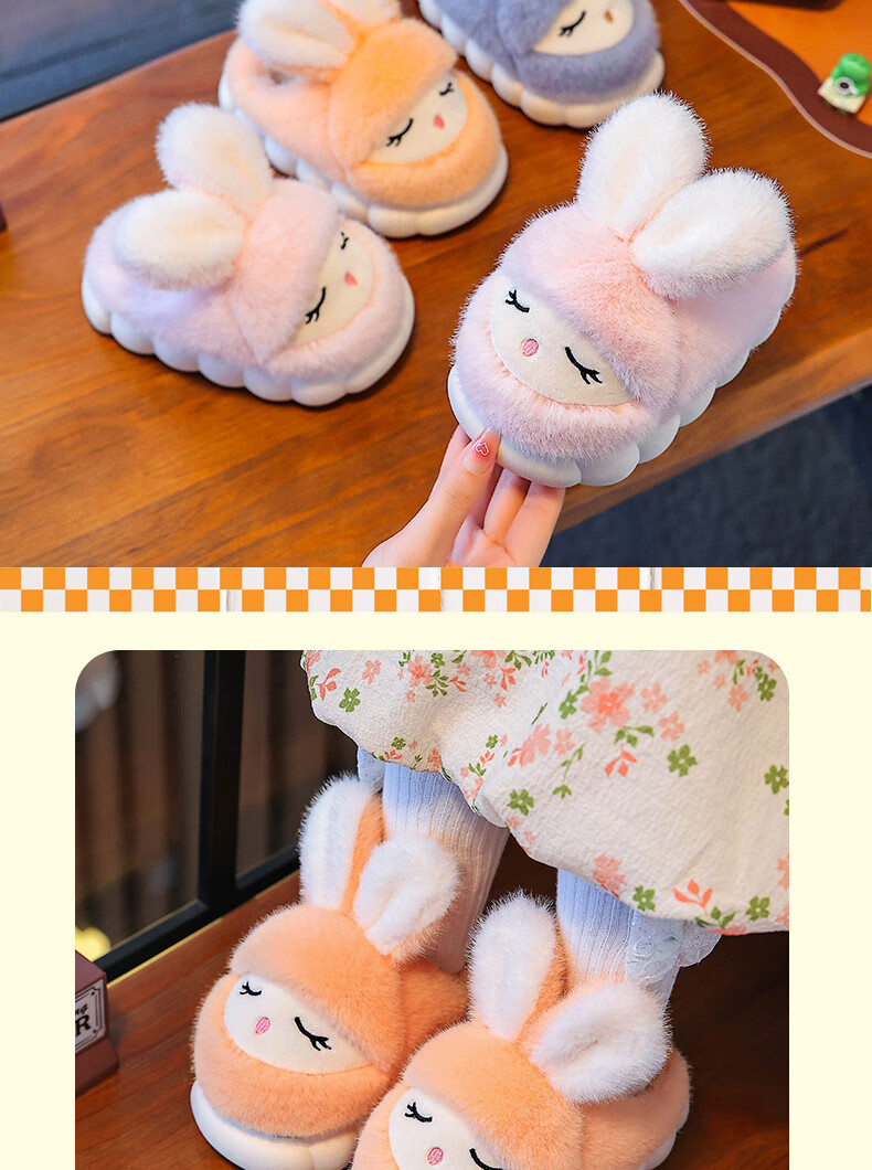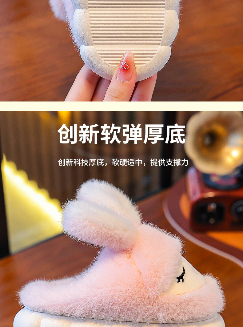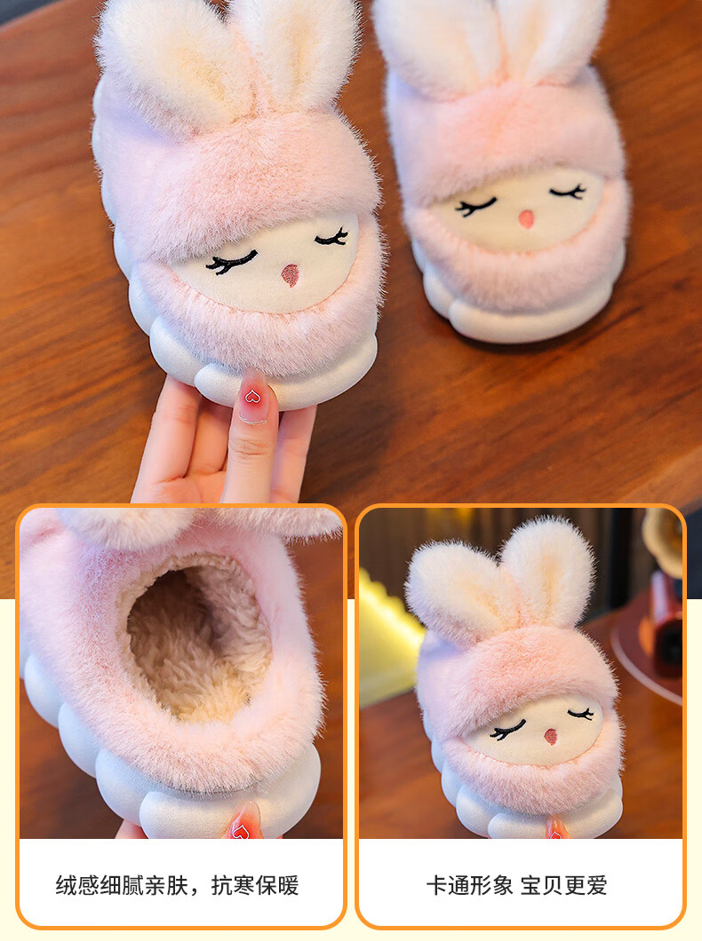 Candy astringent parent-child winter children's cotton slippers, cute rabbit warm plus velvet for boys and girls at home, non-slip soft bottom baby cotton slippers, cute rabbit slippers - pink, size 32-33, inner length 19.5cm