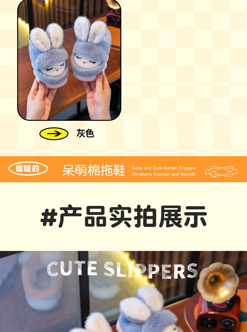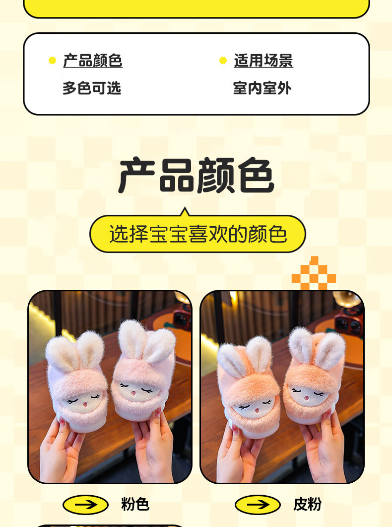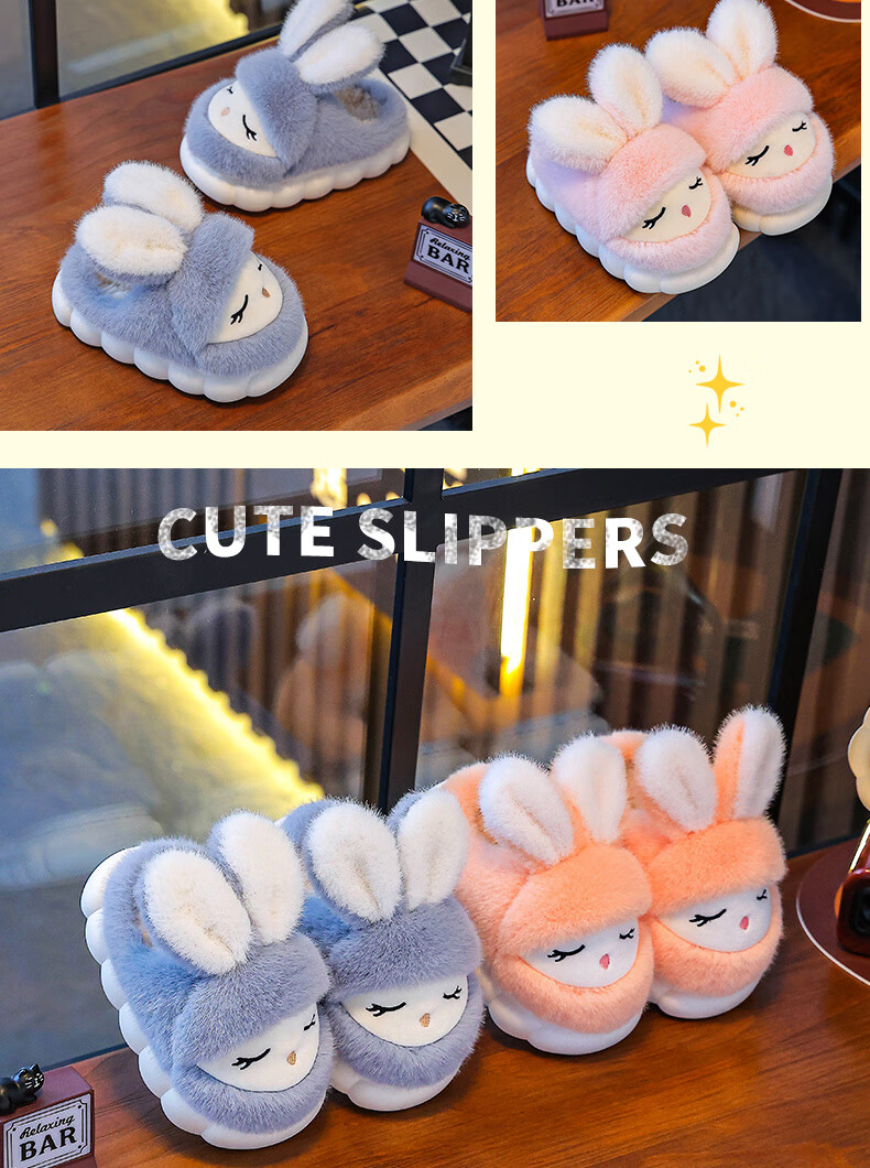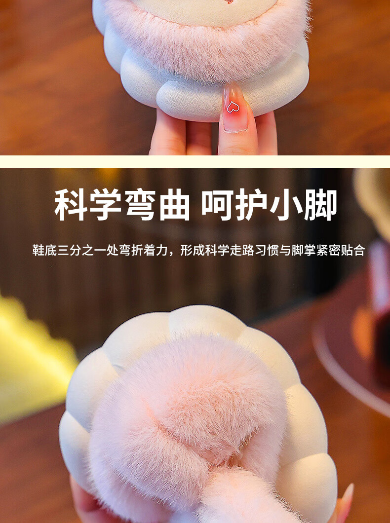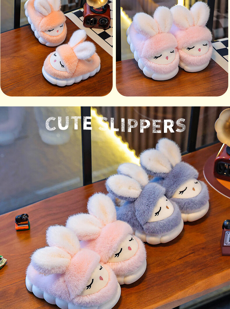Candy astringent parent-child winter children's cotton slippers, cute rabbit warm plus velvet for boys and girls at home, non-slip soft bottom baby cotton slippers, cute rabbit slippers - pink, size 32-33, inner length 19.5cm