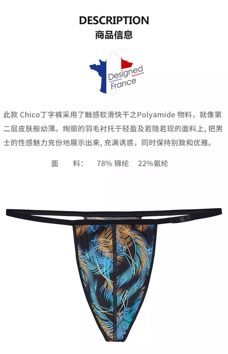 HOM French men's thong low-waist sexy seamless large single thong T-pants nude underwear L