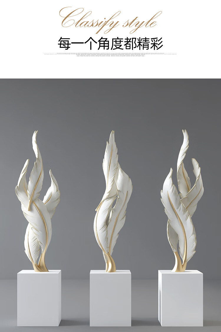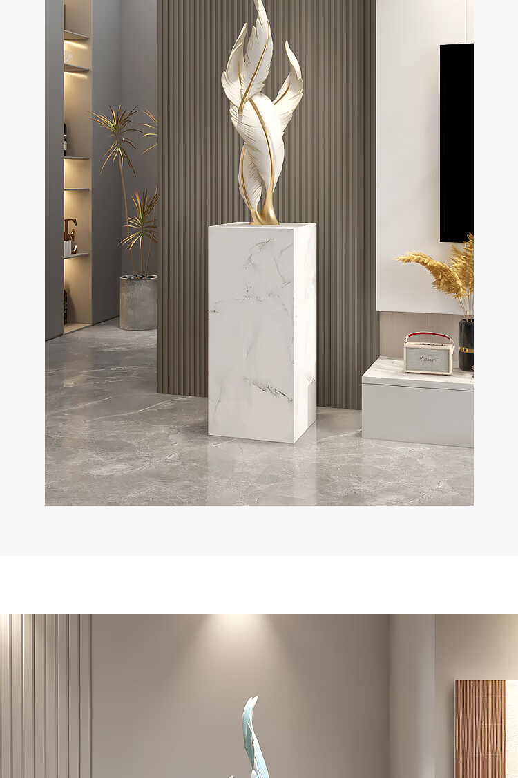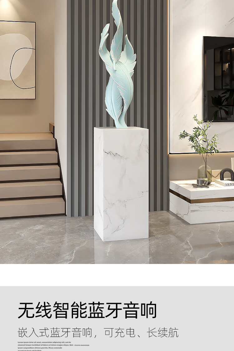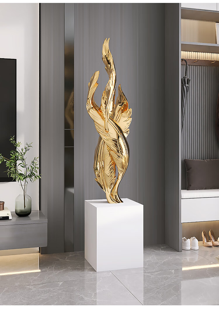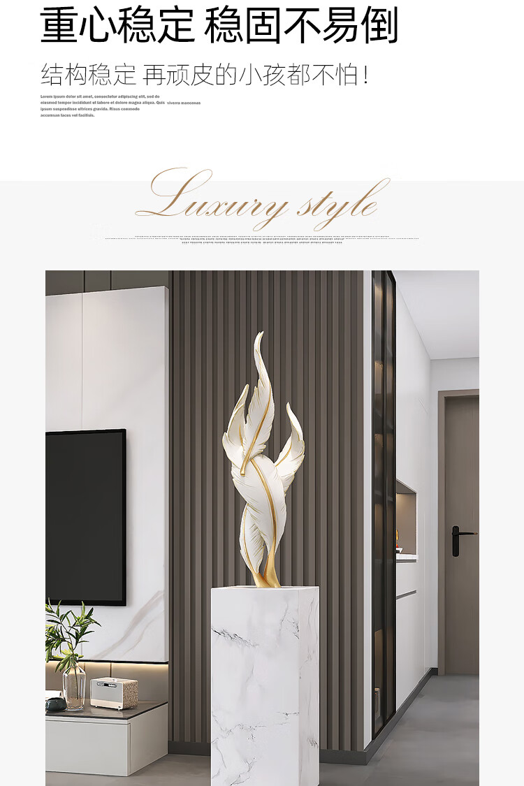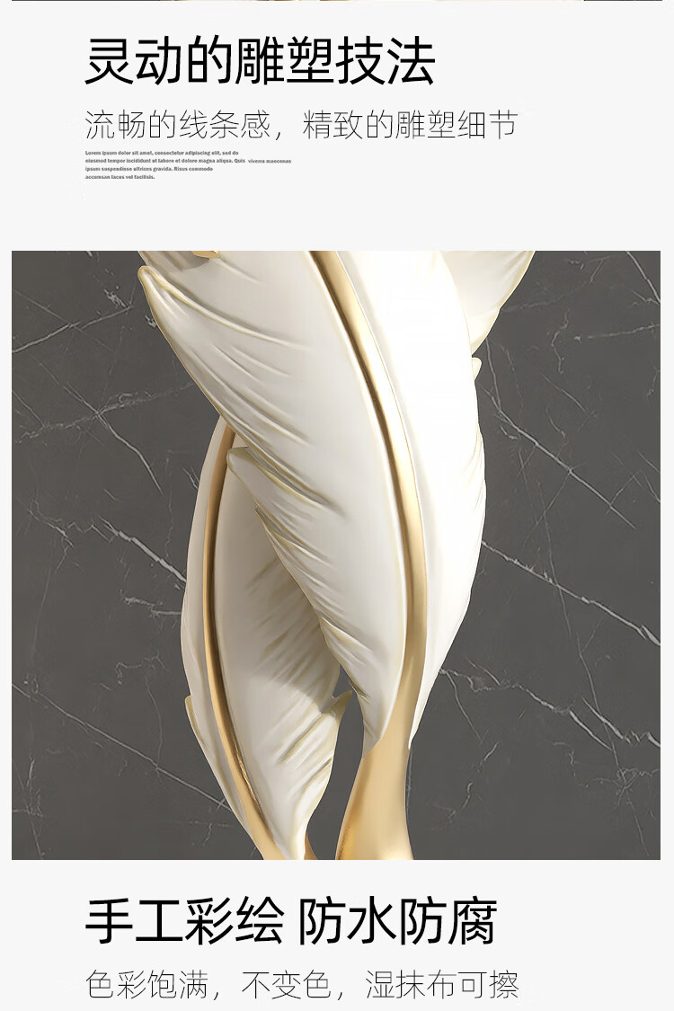Palm tree light luxury feather living room floor-standing ornaments entrance large art sculpture decorations office furnishings moving to a new home Bluetooth model-feather ornaments-electroplated gold/1.2 meters