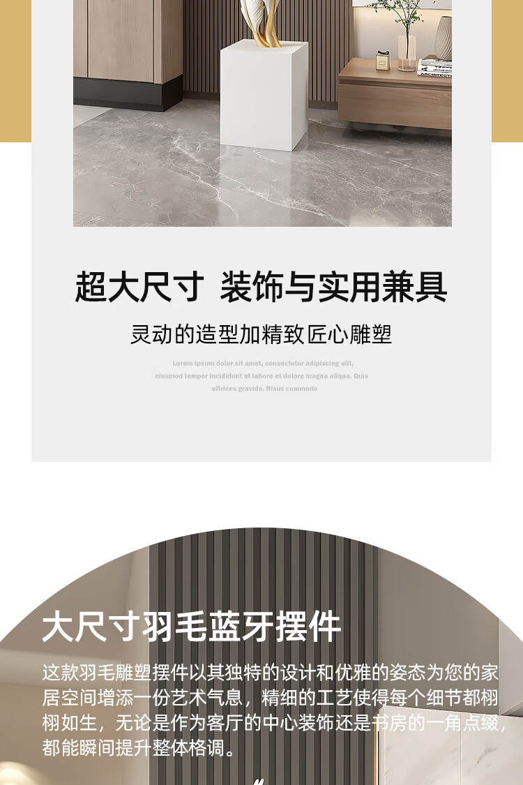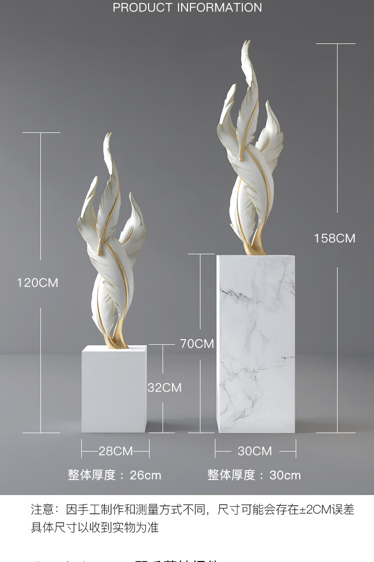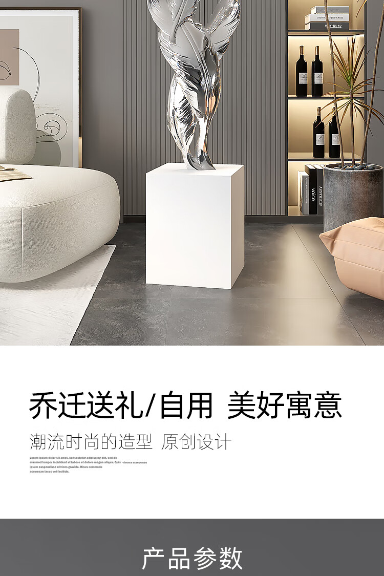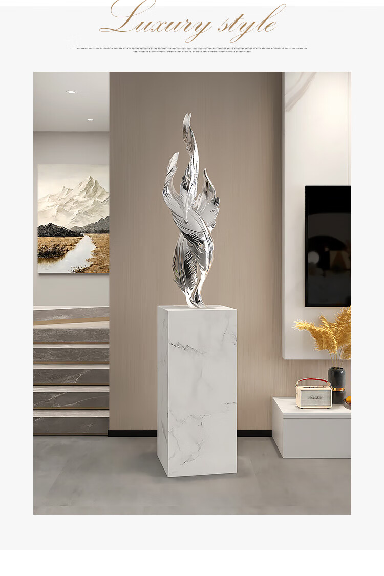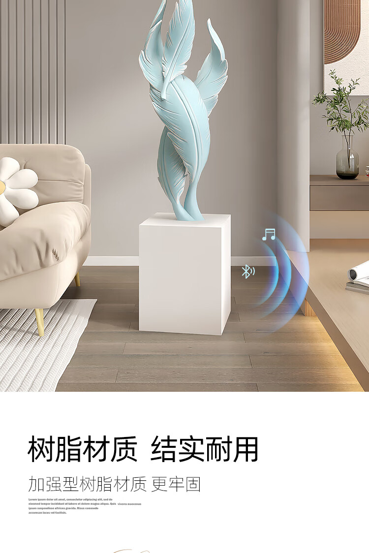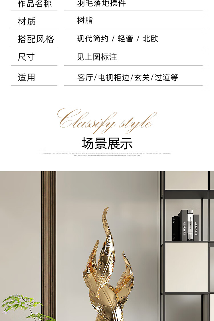Palm tree light luxury feather living room floor-standing ornaments entrance large art sculpture decorations office furnishings moving to a new home Bluetooth model-feather ornaments-electroplated gold/1.2 meters