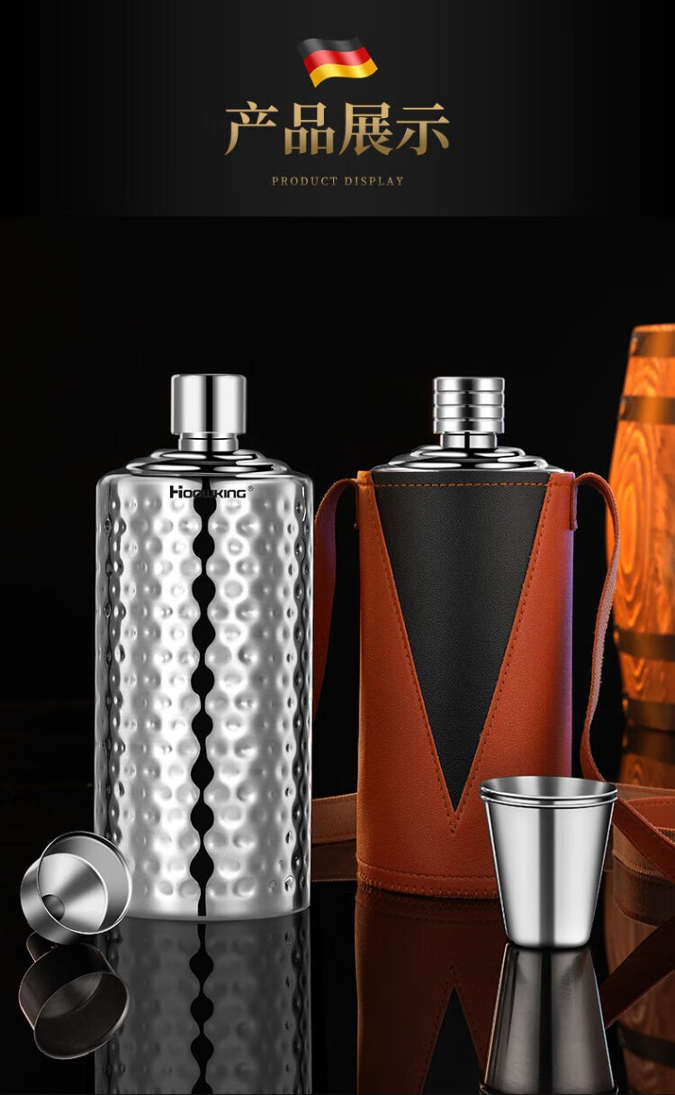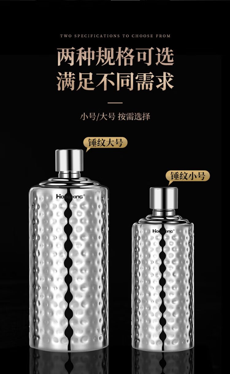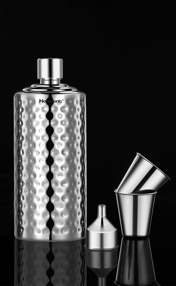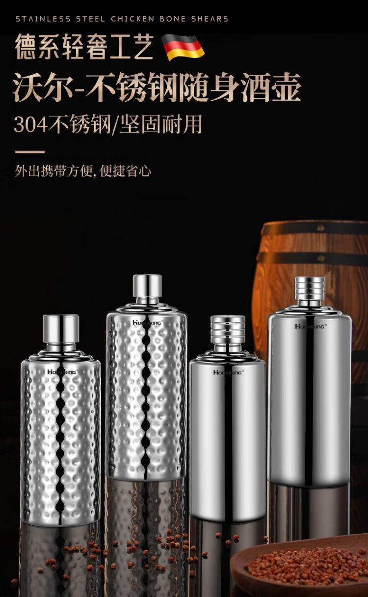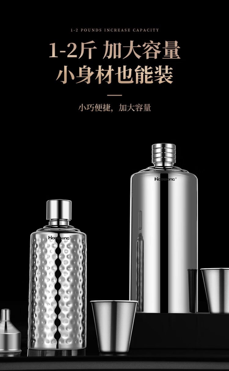 Heqing 304 stainless steel portable wine bottle, portable wine bottle, outdoor wine set, wine glass, large capacity liquor bottle, thickened, bare body, small size, capacity about 1Jin, Jin equals 0.5kg, 500ml