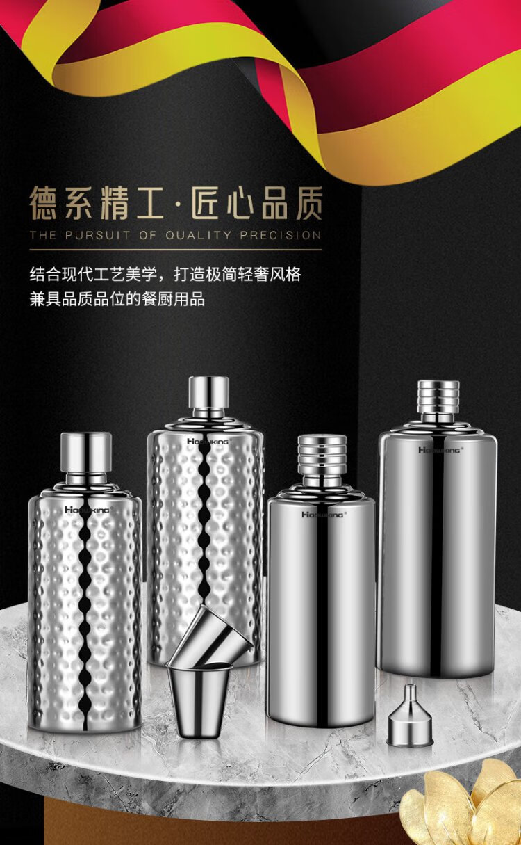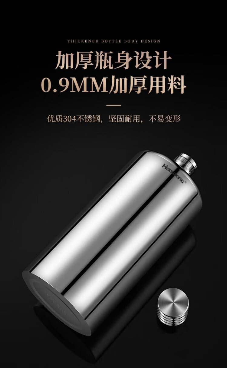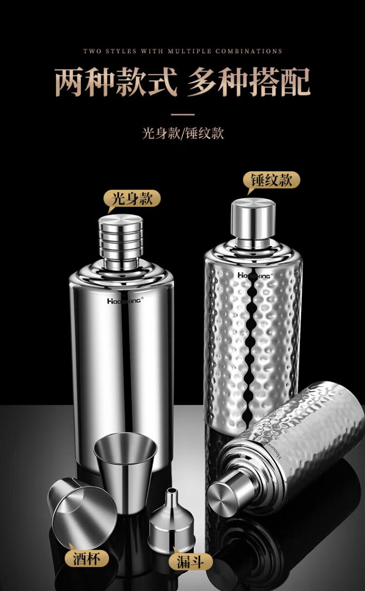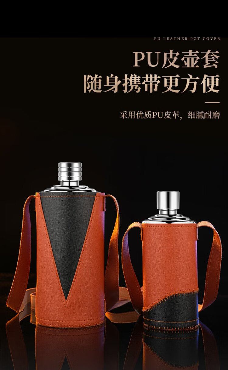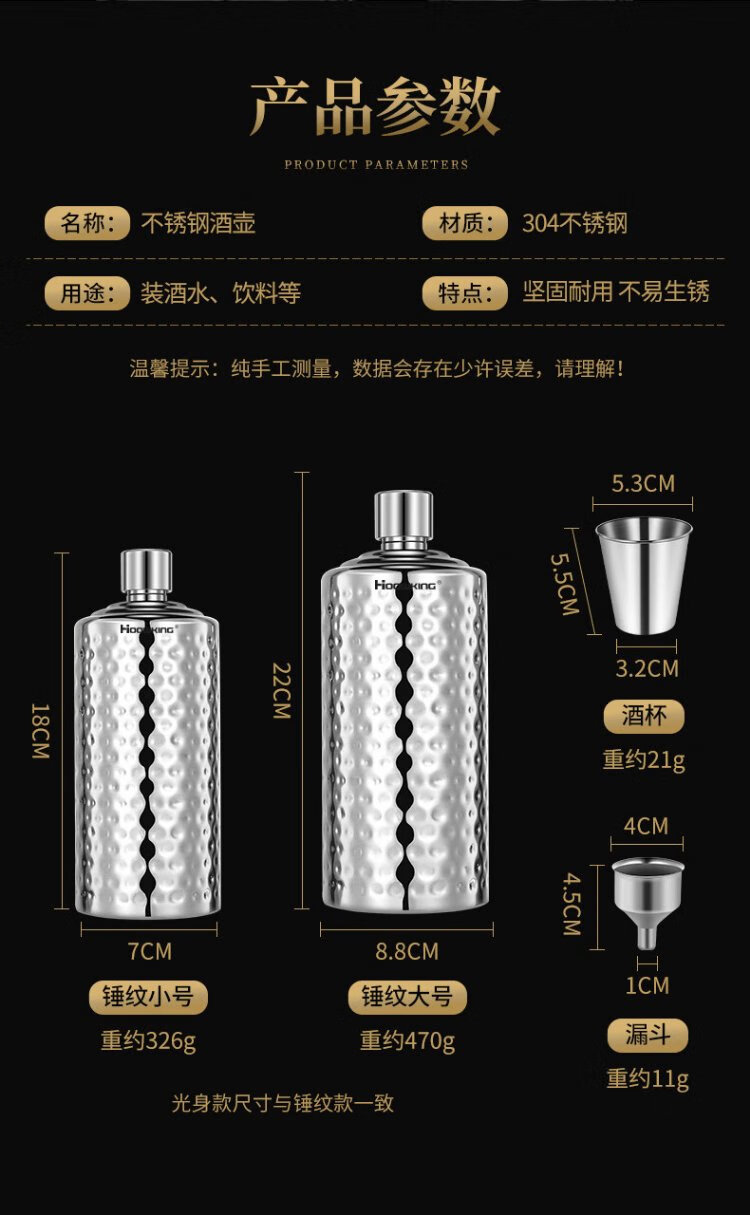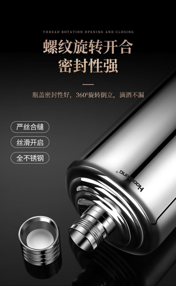 Heqing 304 stainless steel portable wine bottle, portable wine bottle, outdoor wine set, wine glass, large capacity liquor bottle, thickened, bare body, small size, capacity about 1Jin, Jin equals 0.5kg, 500ml