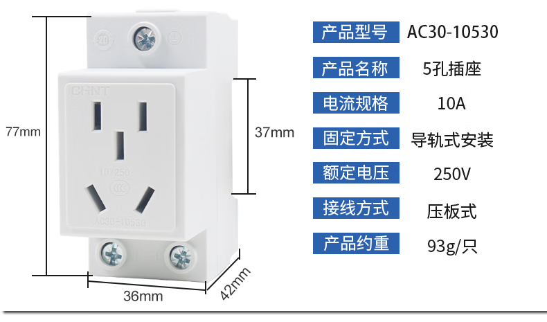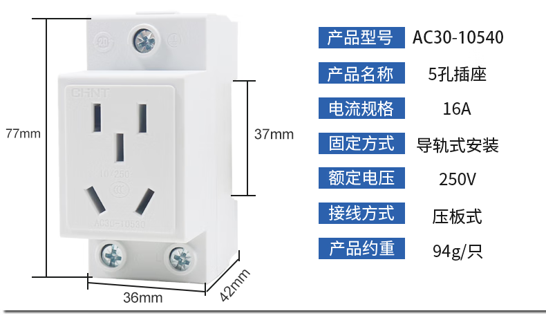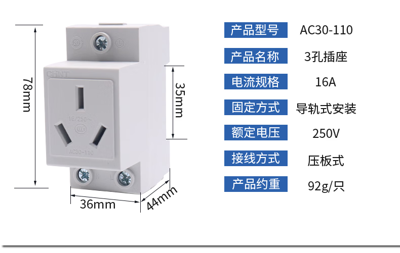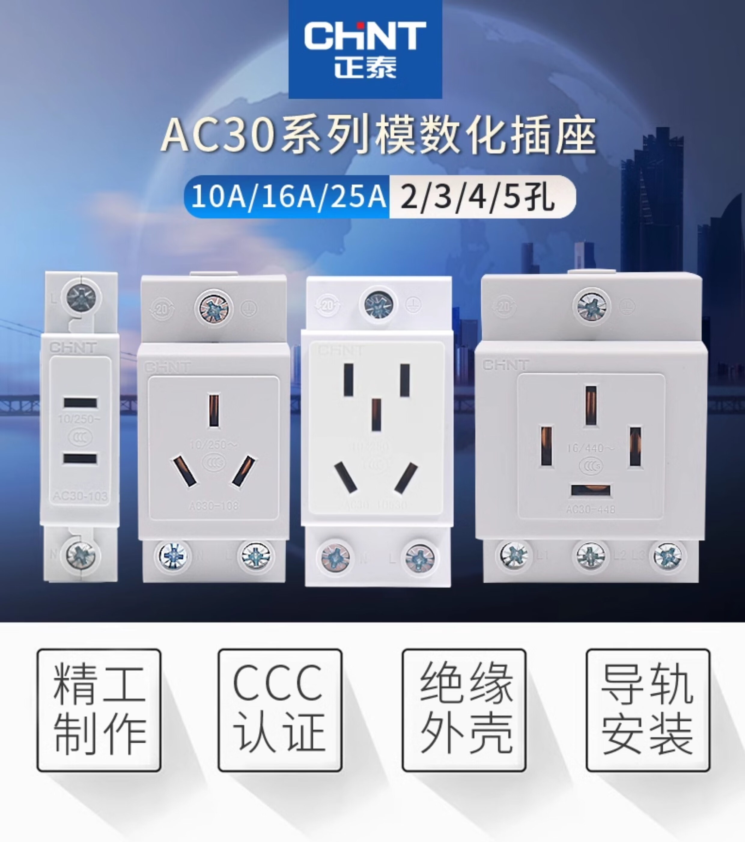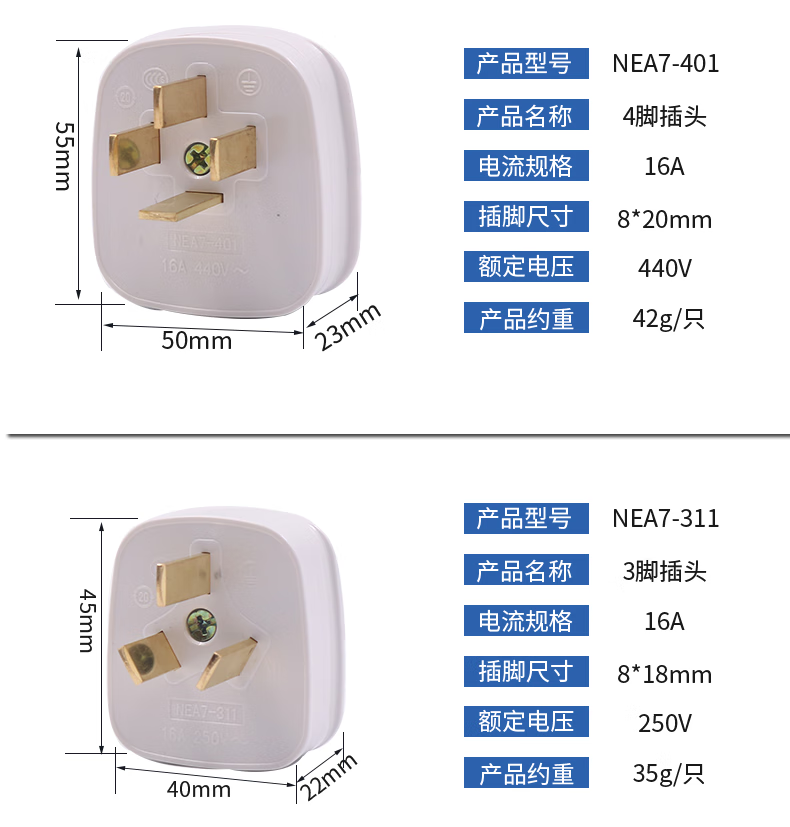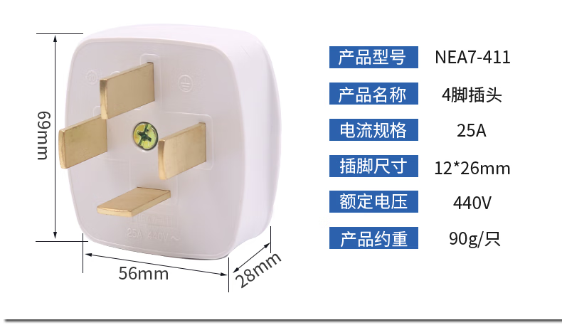 Chint household power supply 380v socket 25A three-phase four-wire 16a plug AC30 three-hole two-eye hole 3 feet 2 10a four-plug 25A NEA7-411