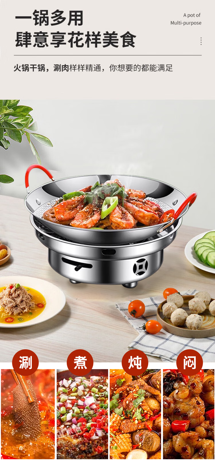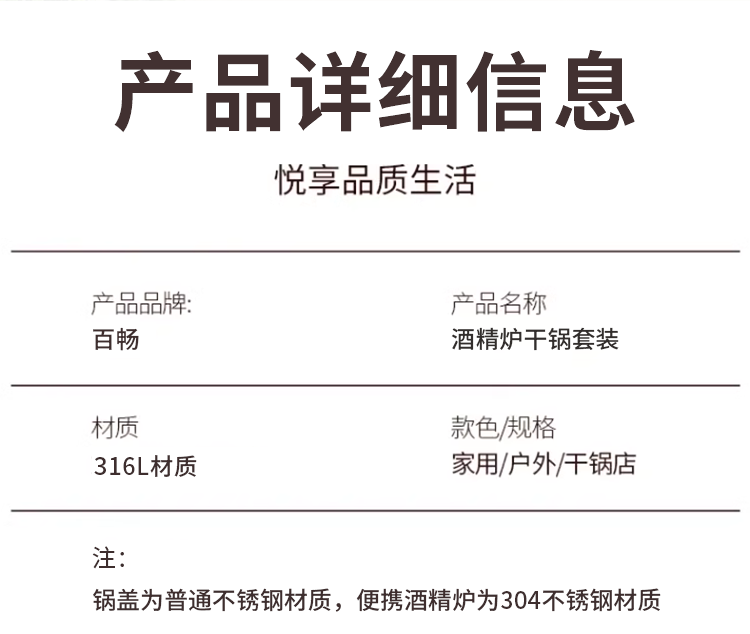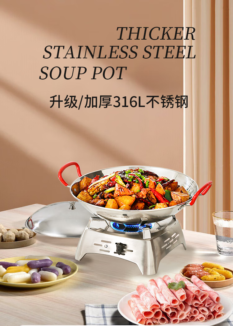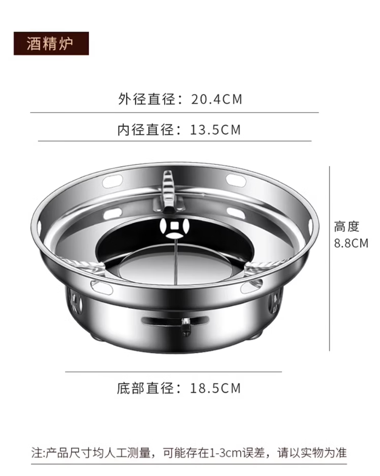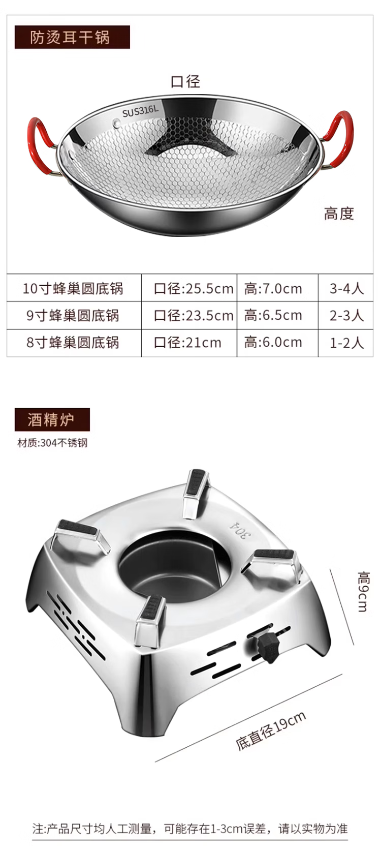 Baichang 316 stainless steel griddle pot household solid alcohol stove outdoor cassette stove small hot pot special pot commercial 316 honeycomb griddle (with lid) 10 inches