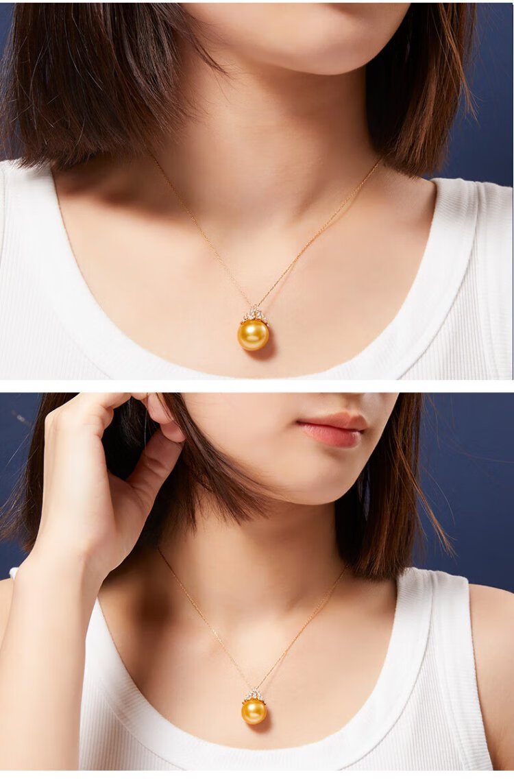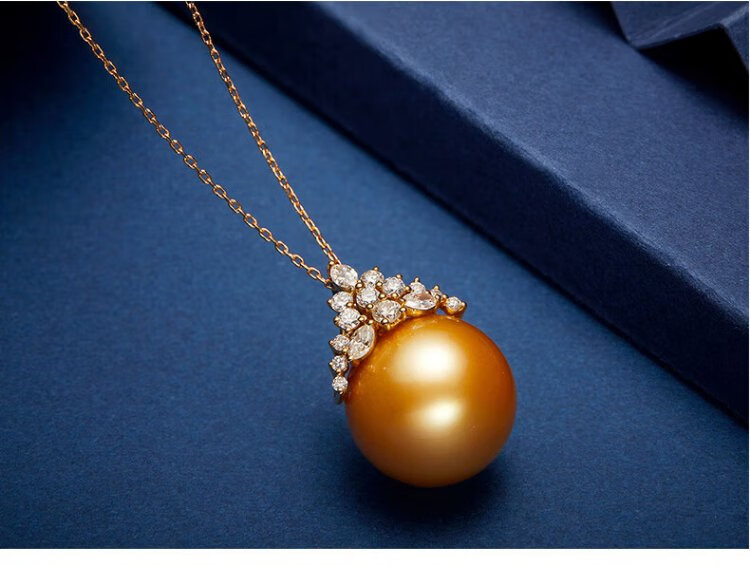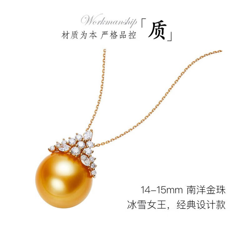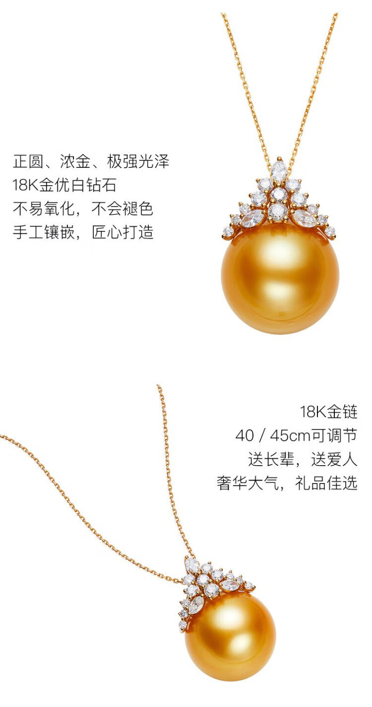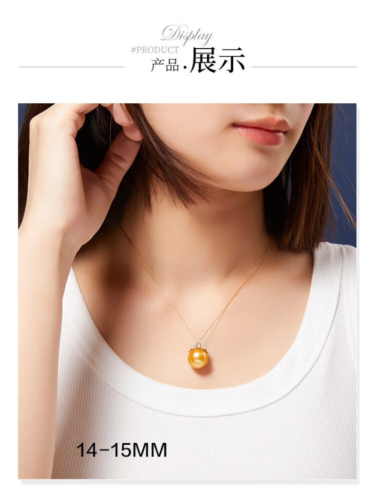 VCL Natural South Sea Gold Pearl Seawater Pearl 18K Diamond Pendant Ice Queen Perfect Round Thick Gold Gift for Mom 14-15mm Pendant Does Not Include Chain