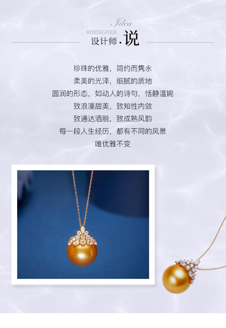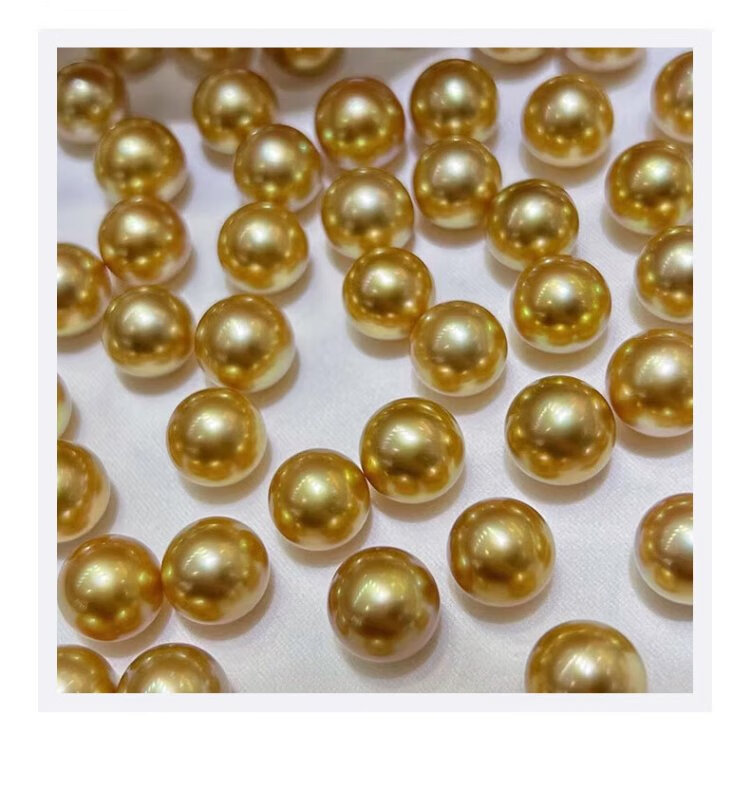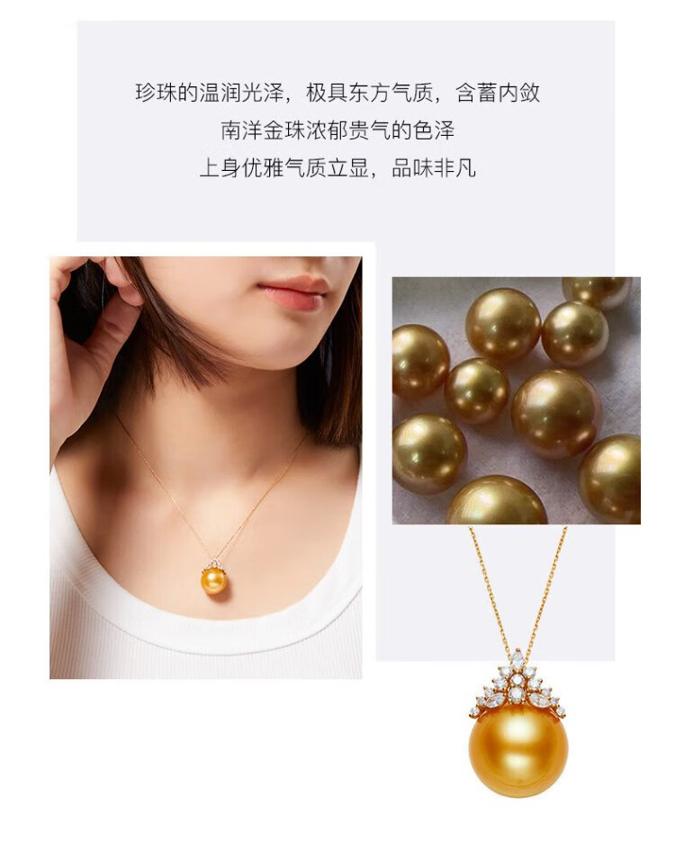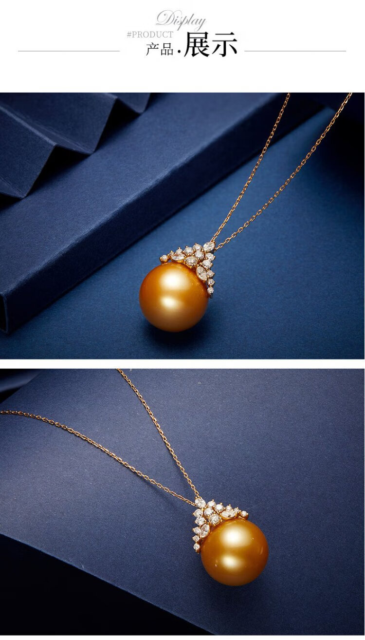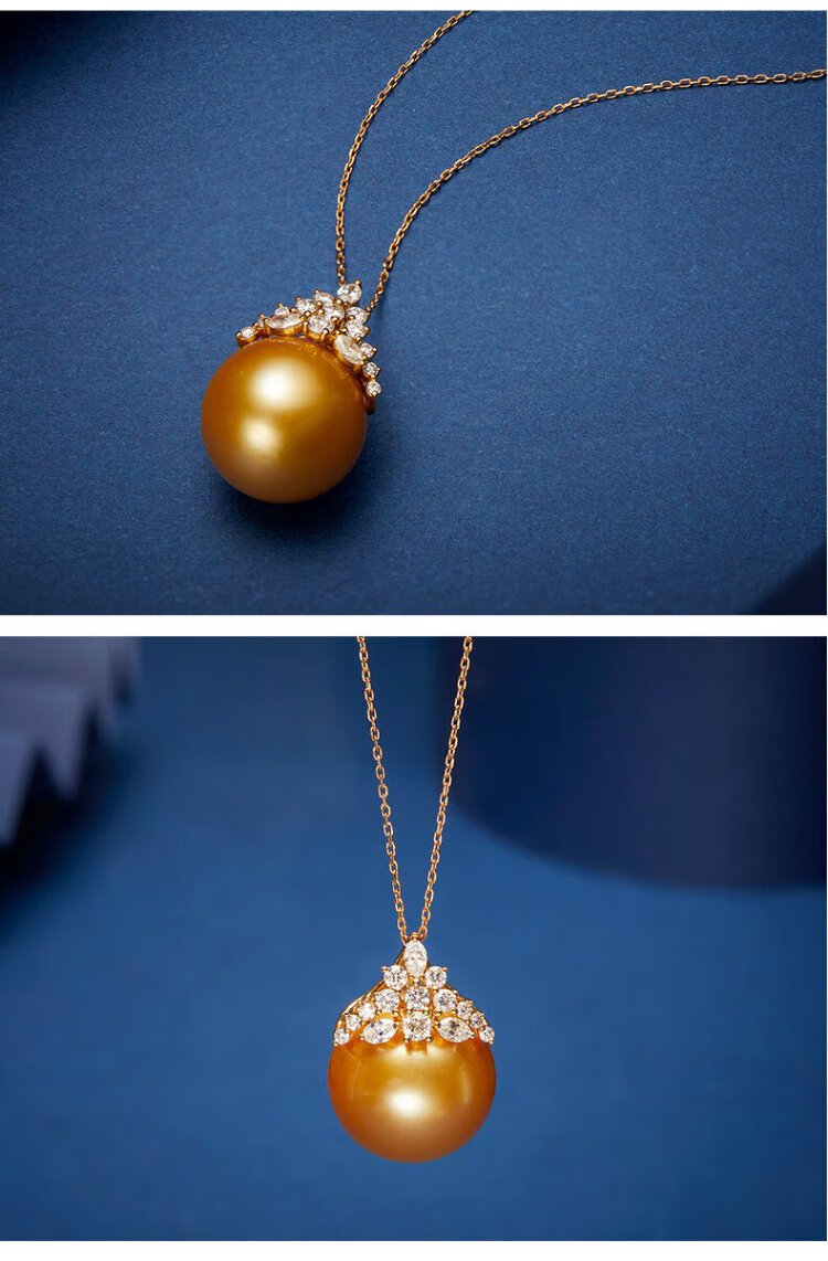 VCL Natural South Sea Gold Pearl Seawater Pearl 18K Diamond Pendant Ice Queen Perfect Round Thick Gold Gift for Mom 14-15mm Pendant Does Not Include Chain