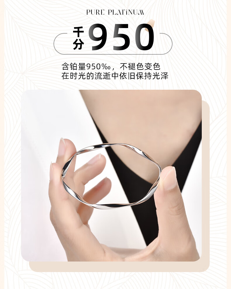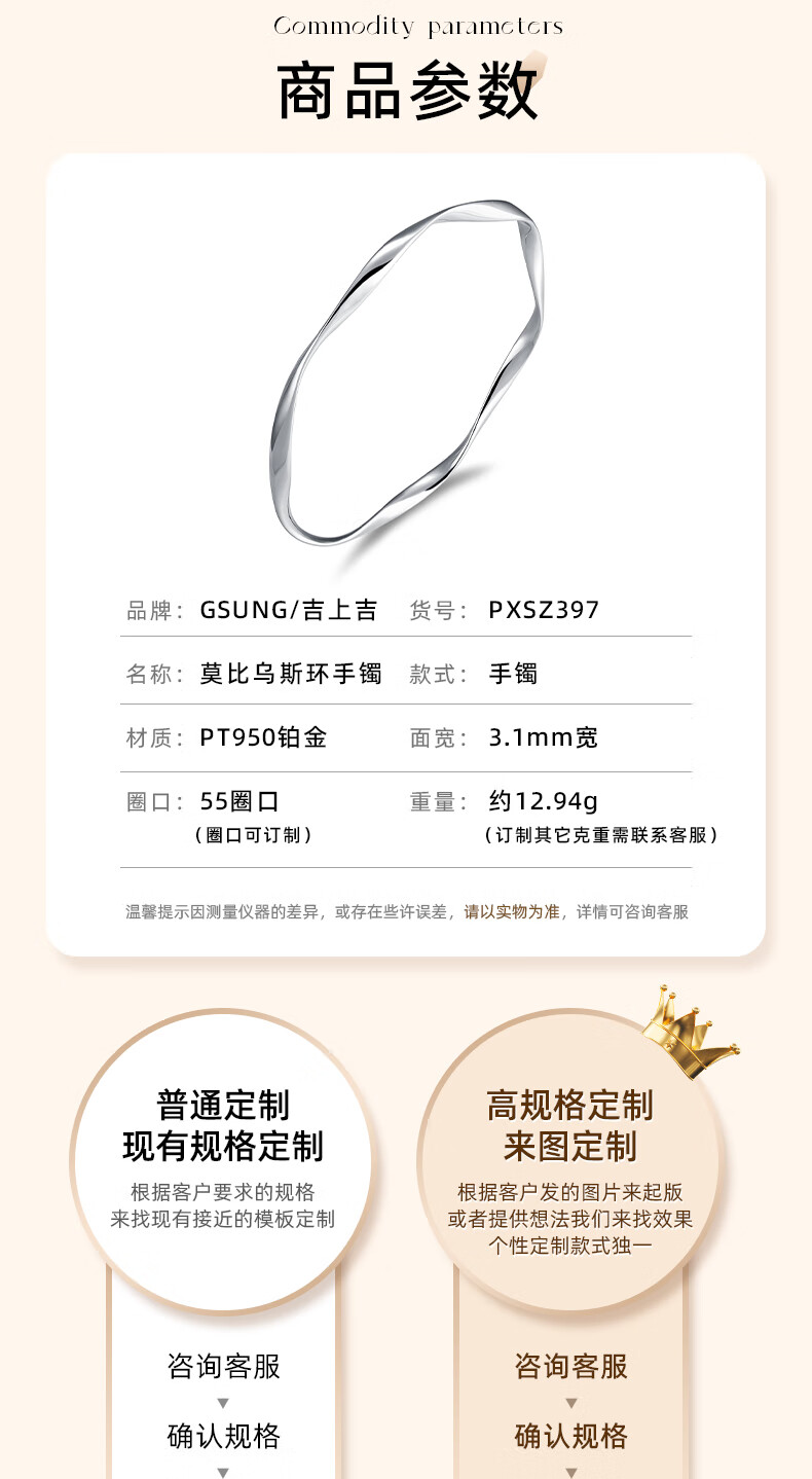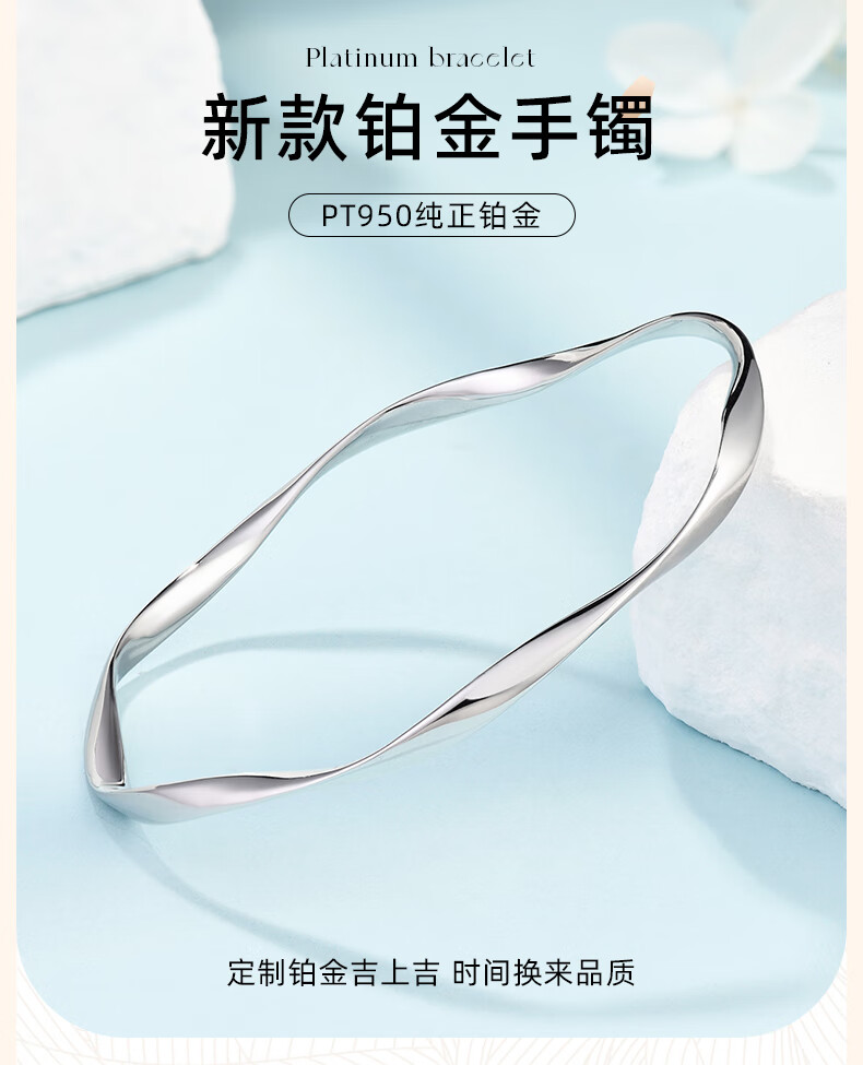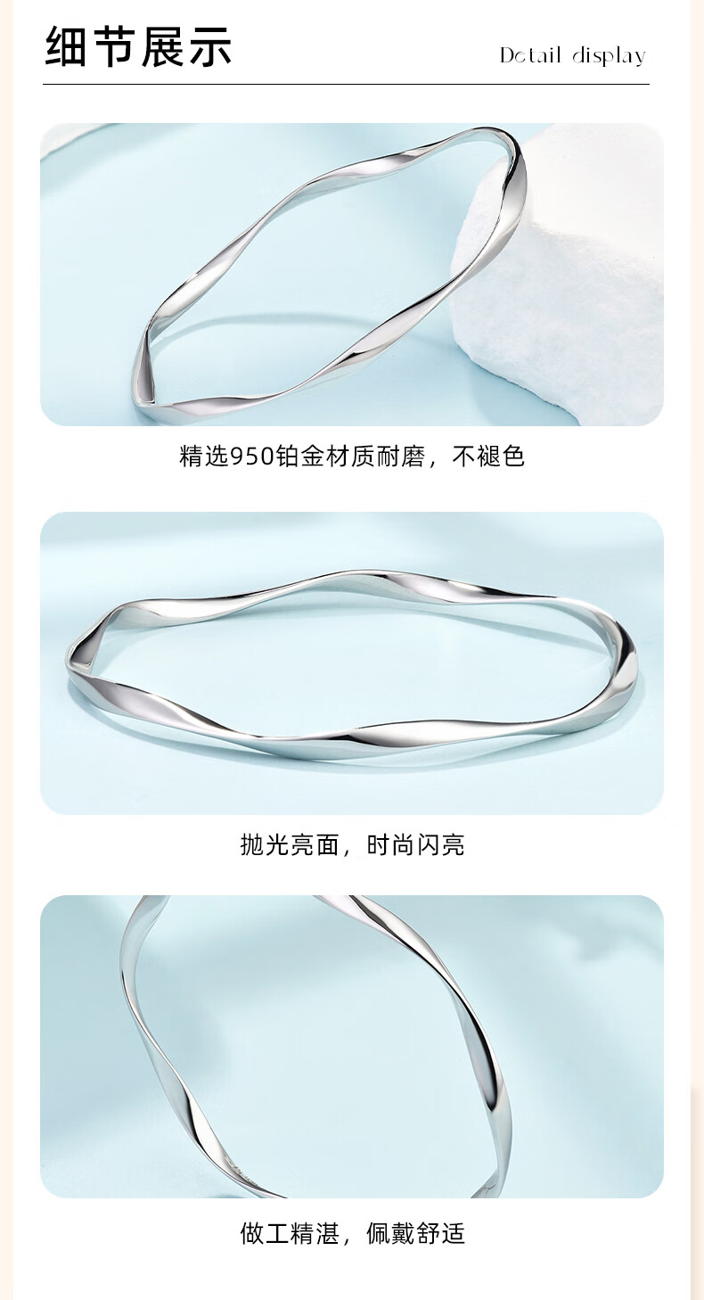 GsunG platinum women's bracelet Möbius ring bracelet new PT950 platinum bracelet women's fashion shiny bracelet PT950 bracelet about 13 grams 54 ring mouth reservation