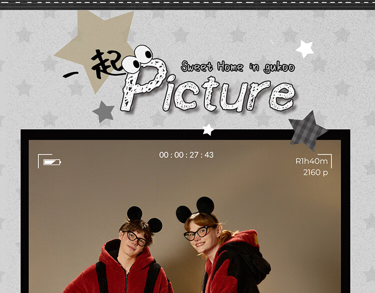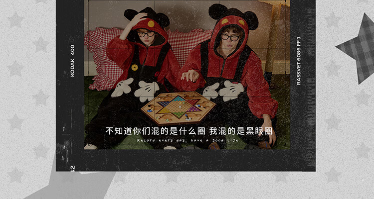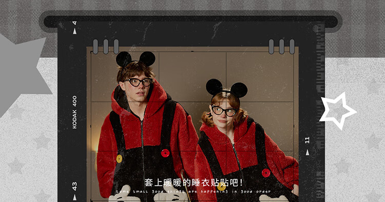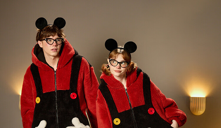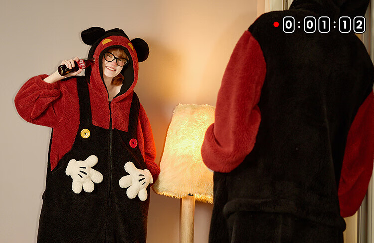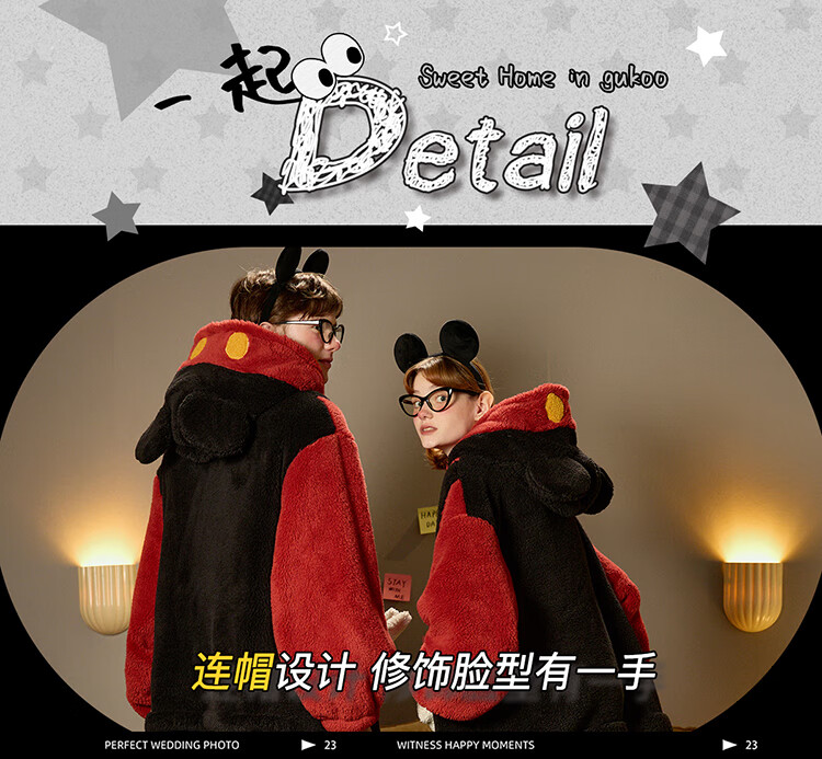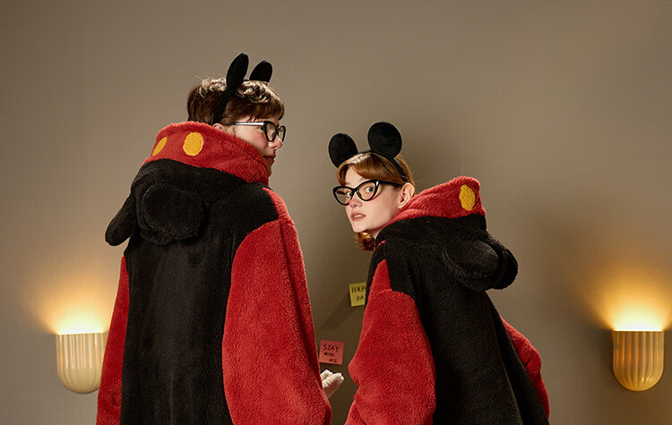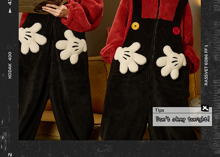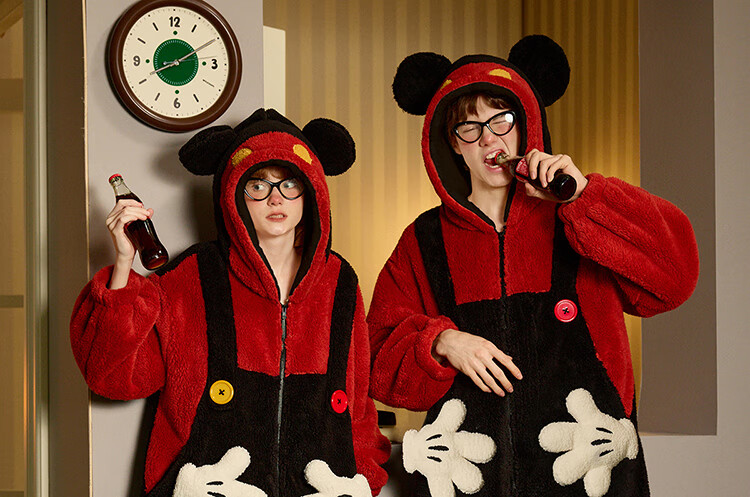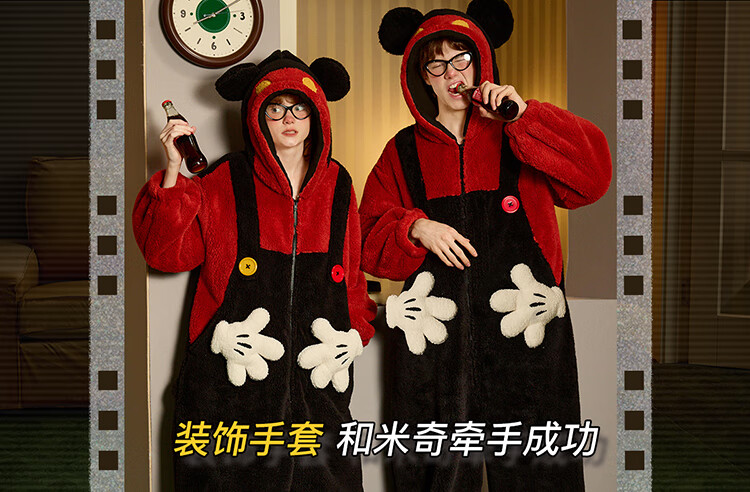 Gukoo Couple Pajamas Winter Disney Co-branded Plush Warm Women's Pajamas Men's Home Clothing Jumpsuit D Mickey Couple Style Jumpsuit L Men