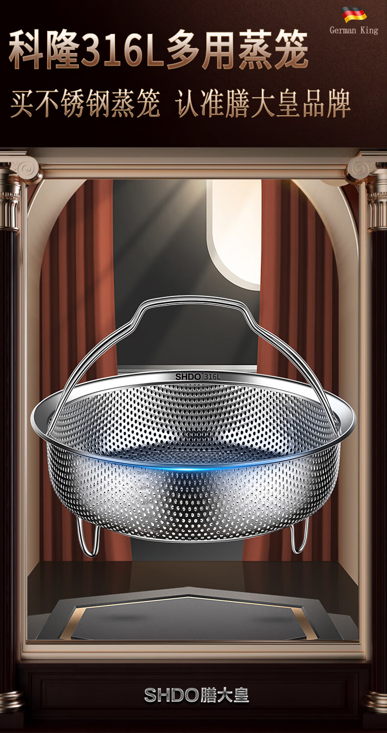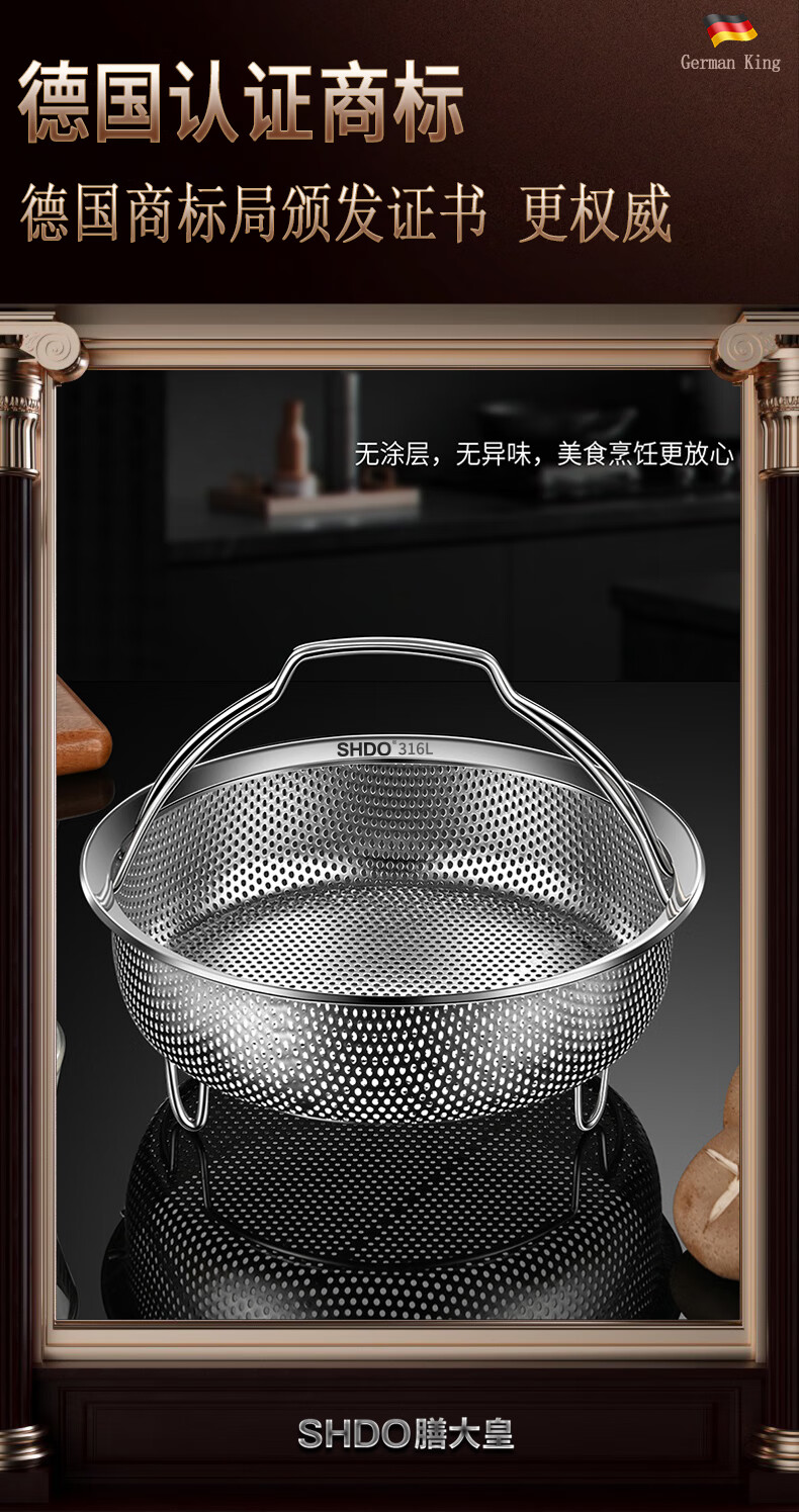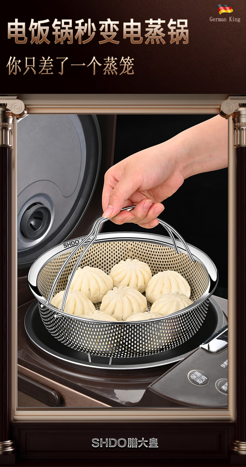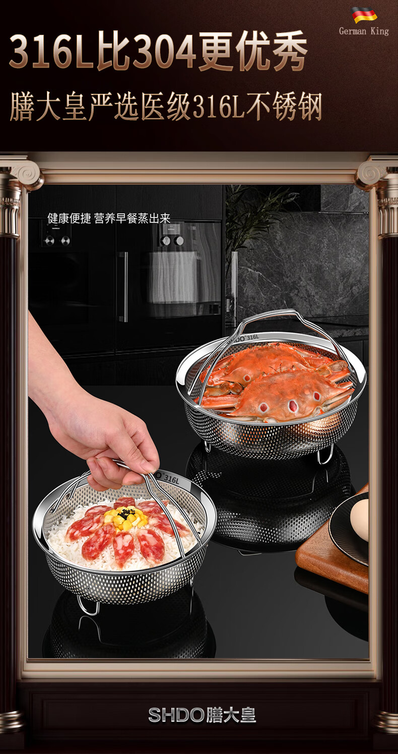 Shandahuang (SHDO) German 316 stainless steel rice cooker steamer portable steaming grid water-proof steaming rack grate steaming rice artifact steaming plate basket Cologne 316L steamer 24cm