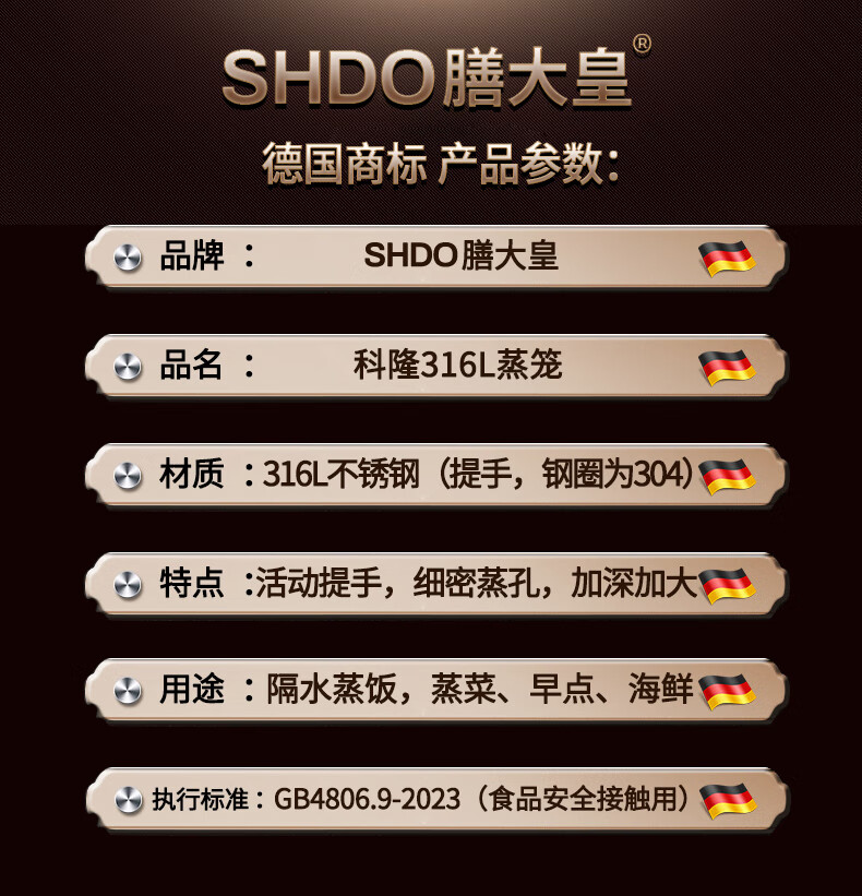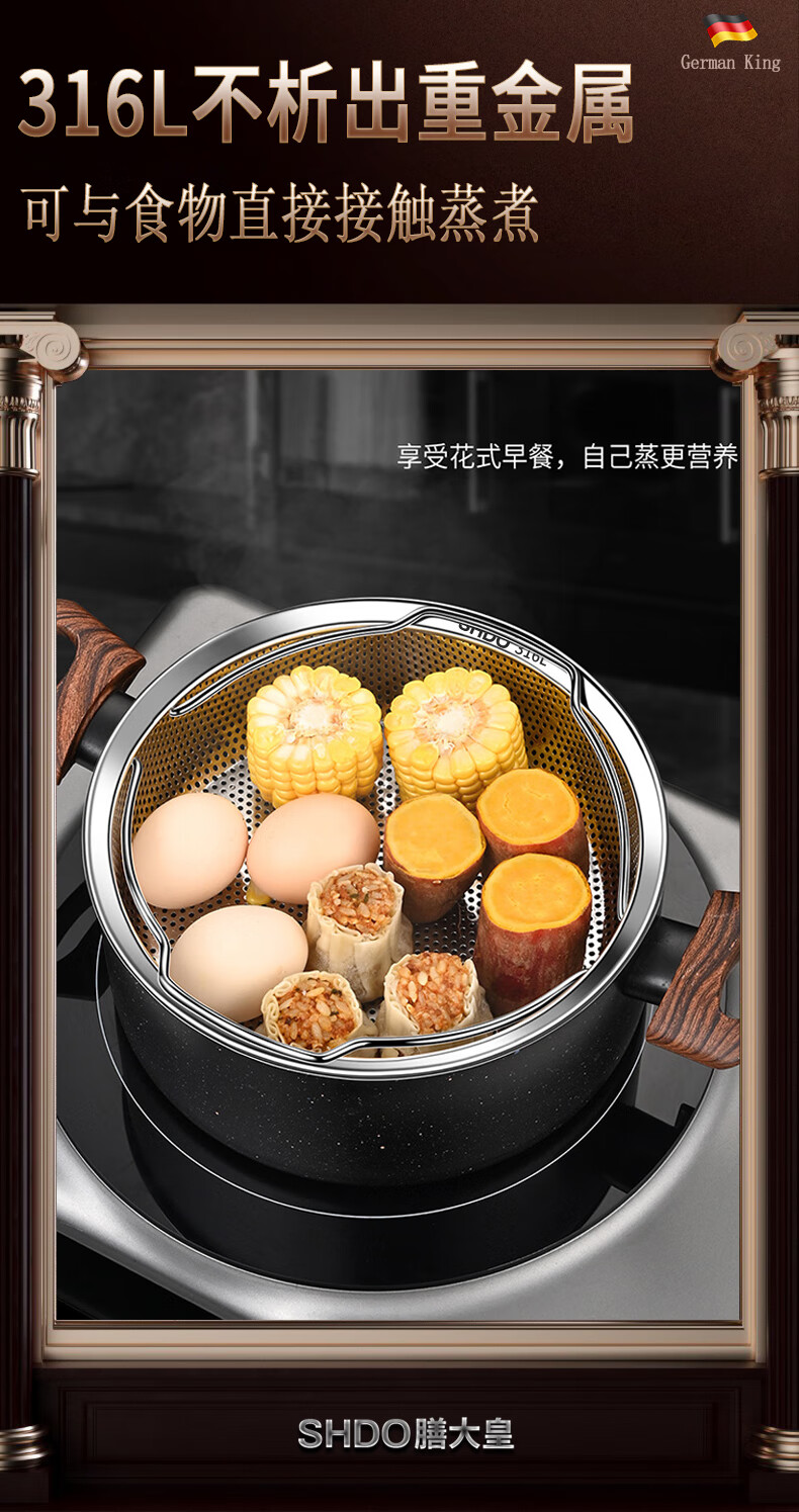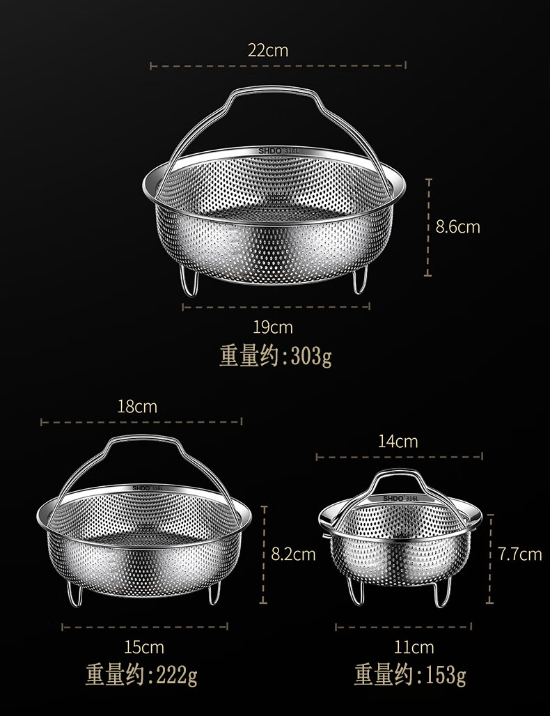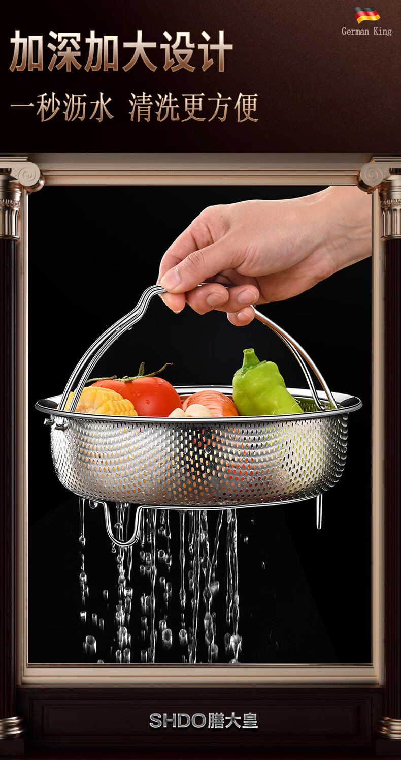 Shandahuang (SHDO) German 316 stainless steel rice cooker steamer portable steaming grid water-proof steaming rack grate steaming rice artifact steaming plate basket Cologne 316L steamer 24cm