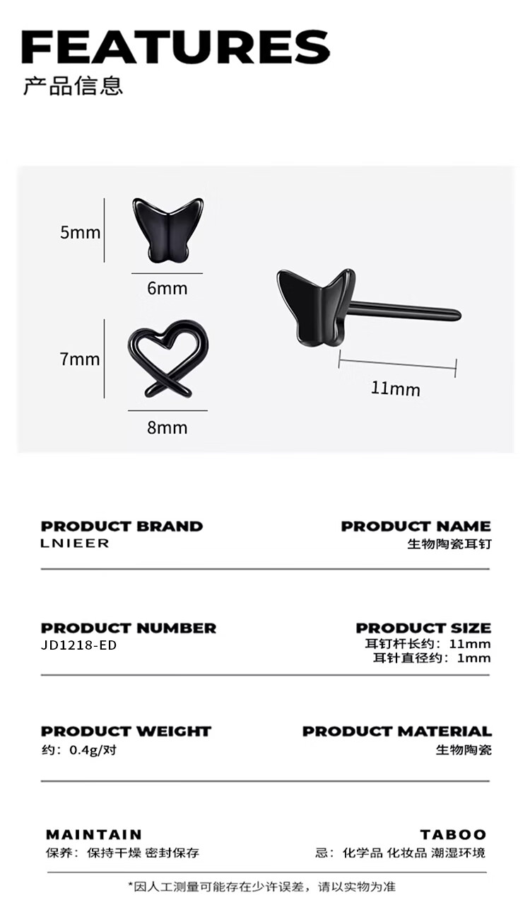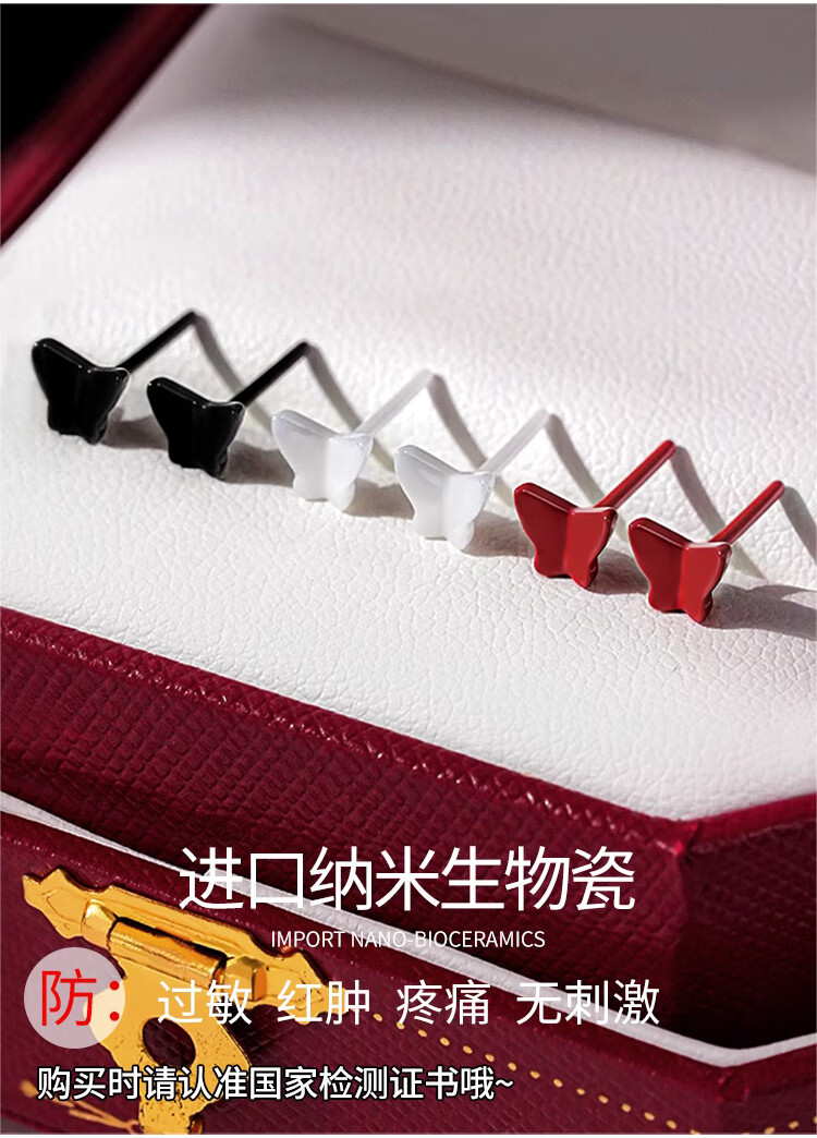 Lnieer medical bio-porcelain butterfly earrings for women ceramic ear piercing earrings ear sticks for sleeping without removing ear bone studs ear jewelry red love earrings real bio-porcelain