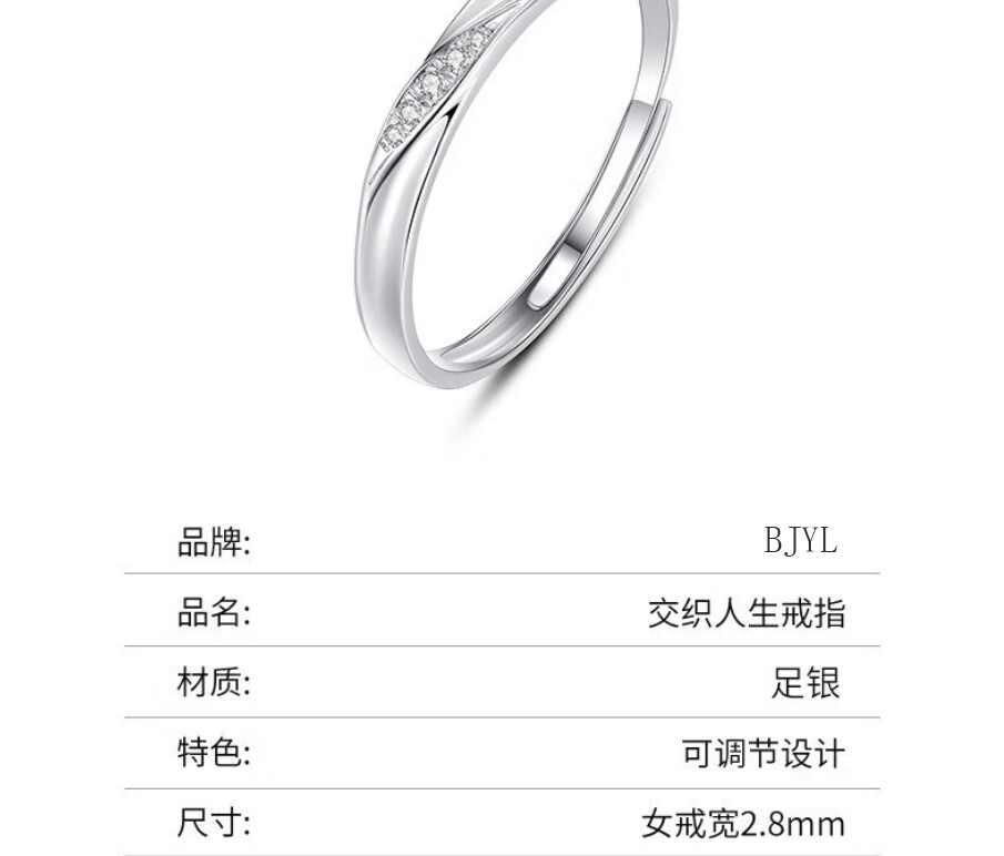 BJYLS999 pure silver ring women's single ring design sterling silver ring ring tail ring jewelry birthday gift for girlfriend S999 pure silver intertwined ring