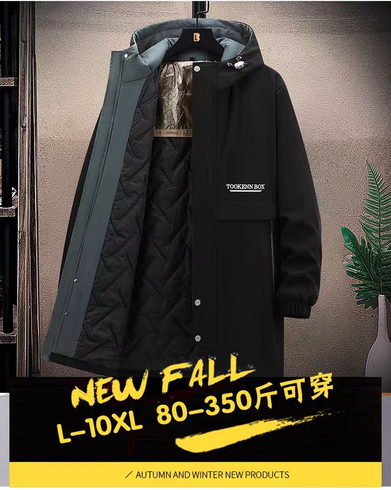 Karls large size men's cotton coat men's medium-length spring, autumn and winter fat cotton coat loose plus fat plus slimming windbreaker trend winter cotton coat 9XL (280-314Jin Jin equals 0.5 kg)