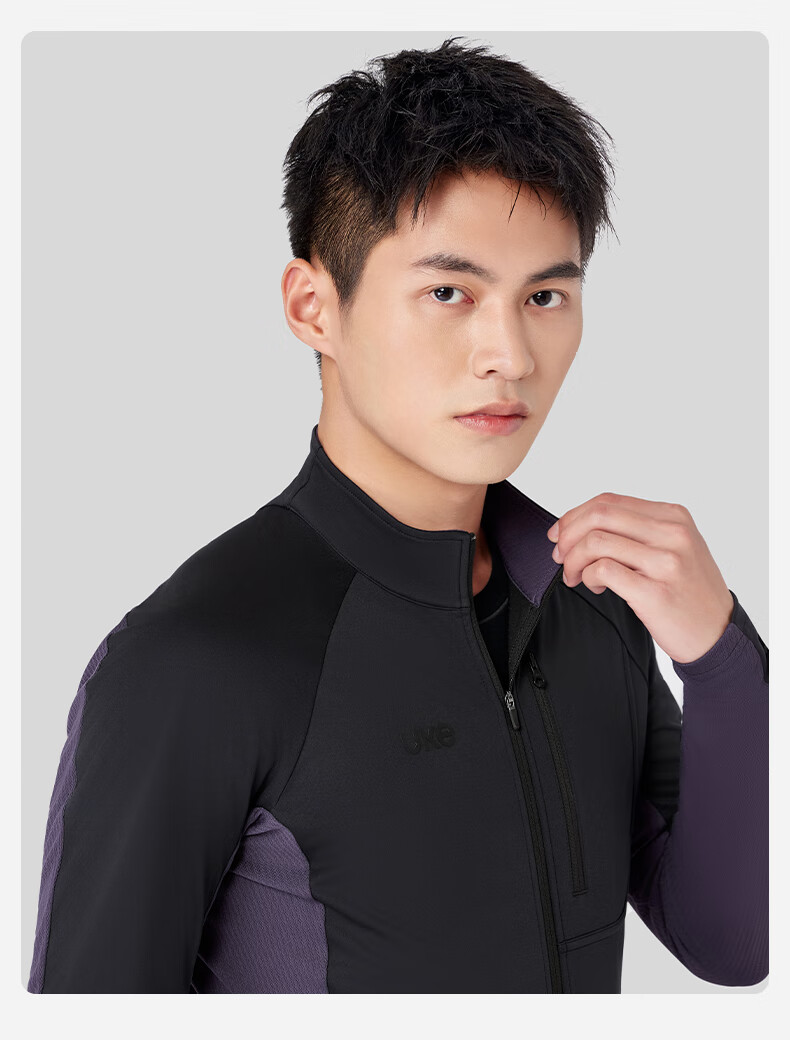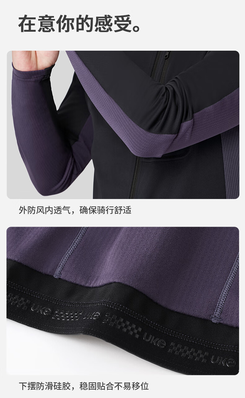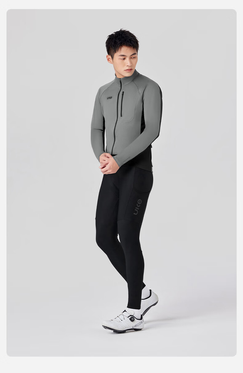 UKE Men's Thin Windproof Cycling Jacket Spring and Autumn Coldproof Color Matching Warmth Locking Front Chest Zipper Pocket Jacket Speed Shadow Gray Black M
