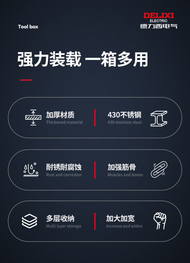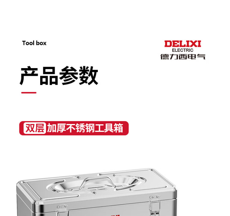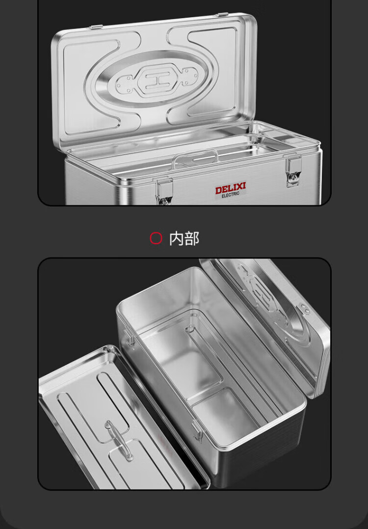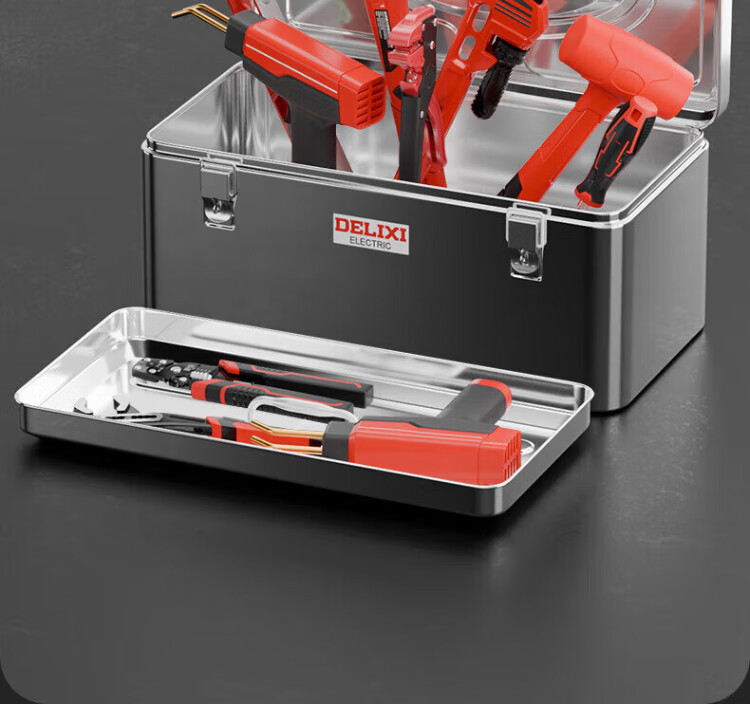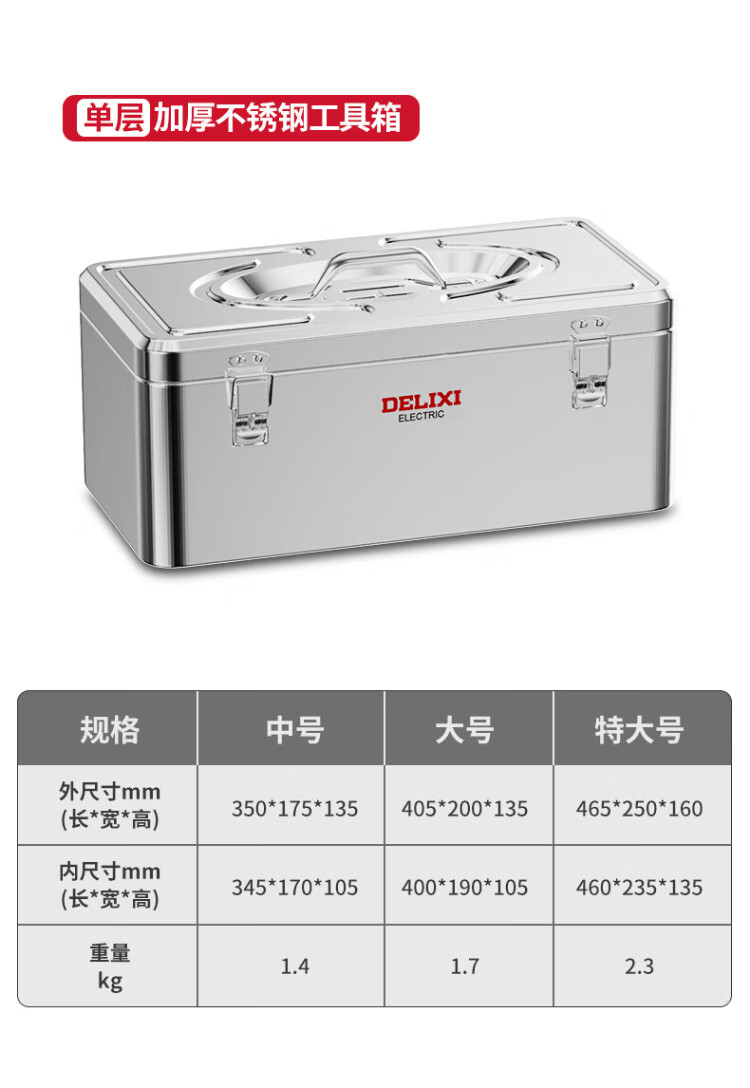 Delixi Stainless Steel Tool Box Industrial Grade Storage Box Car Household Multifunctional Hardware Iron Box Suitcase Extra Large Extra Large/Single Layer Thickened Stainless Steel Tool Box