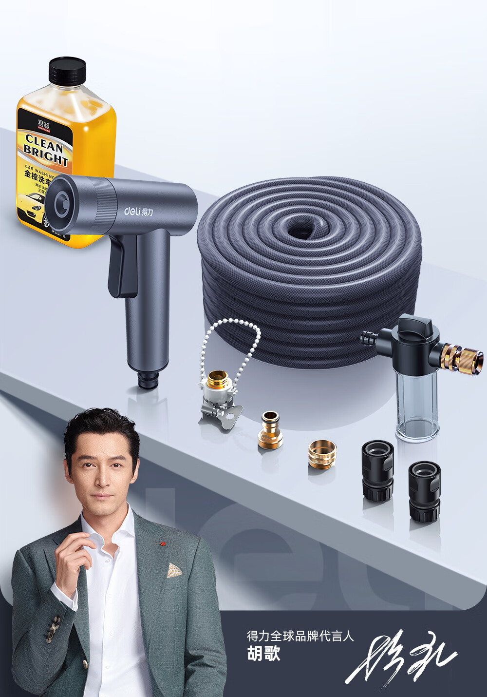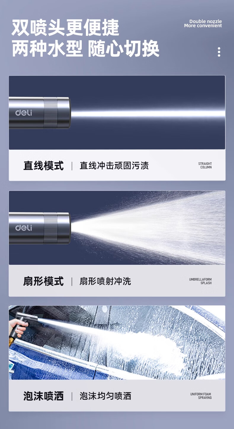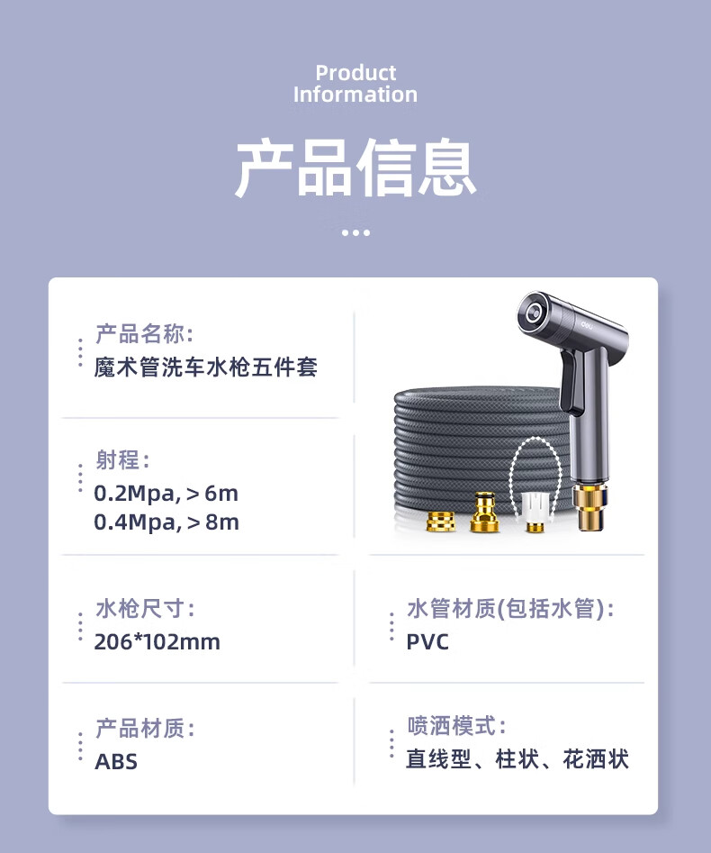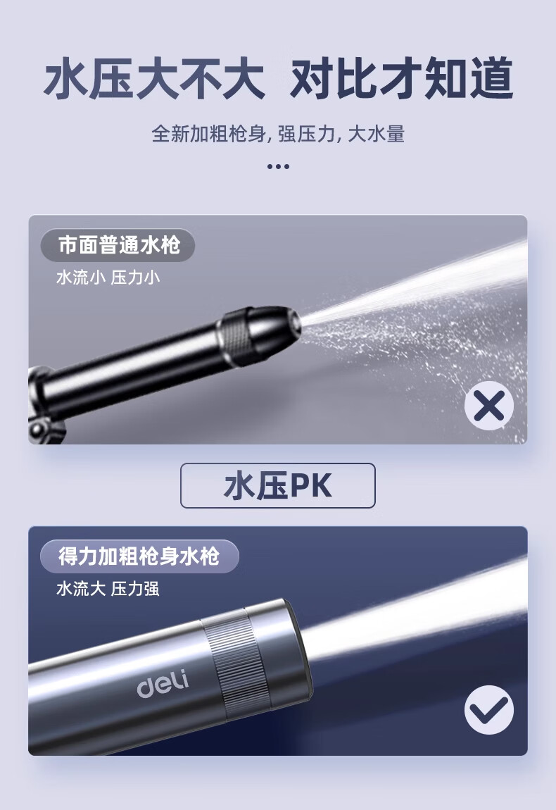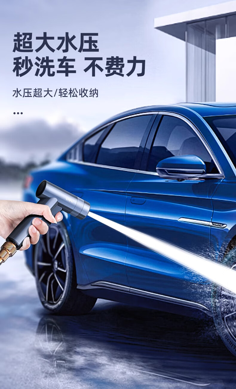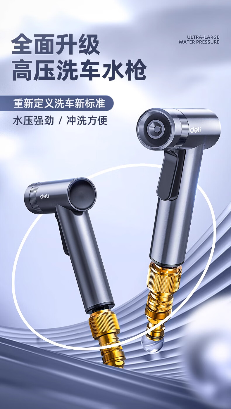 Deli car wash water gun high-pressure powerful household tap pressurized spray hose flushing ground flower watering artifact powerful supercharged version 15 meters water pipe free 5-piece set
