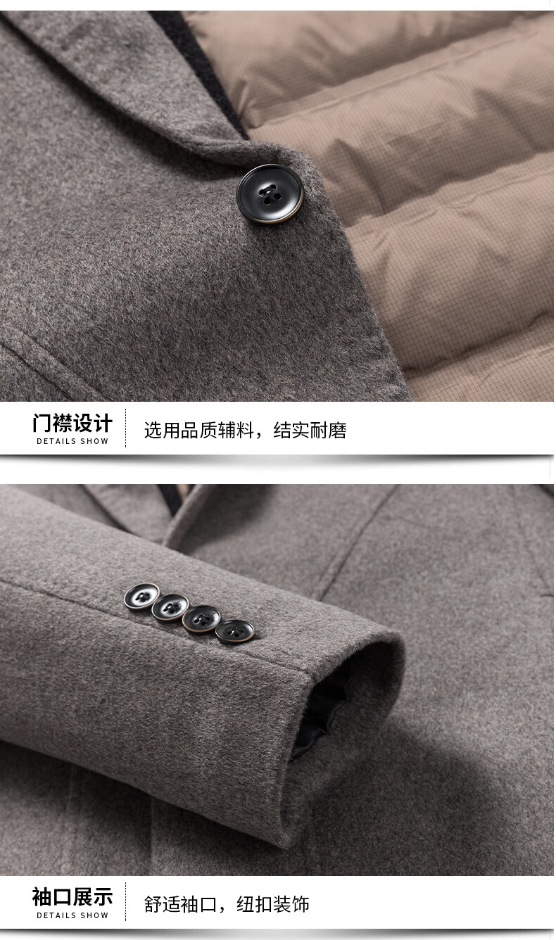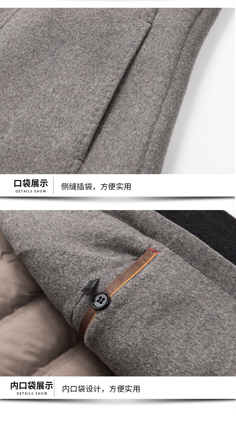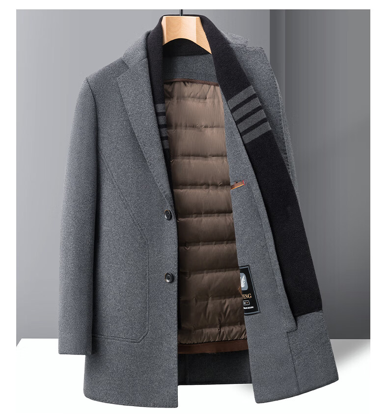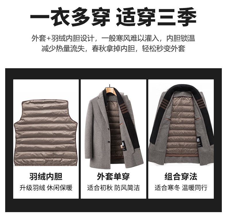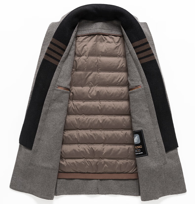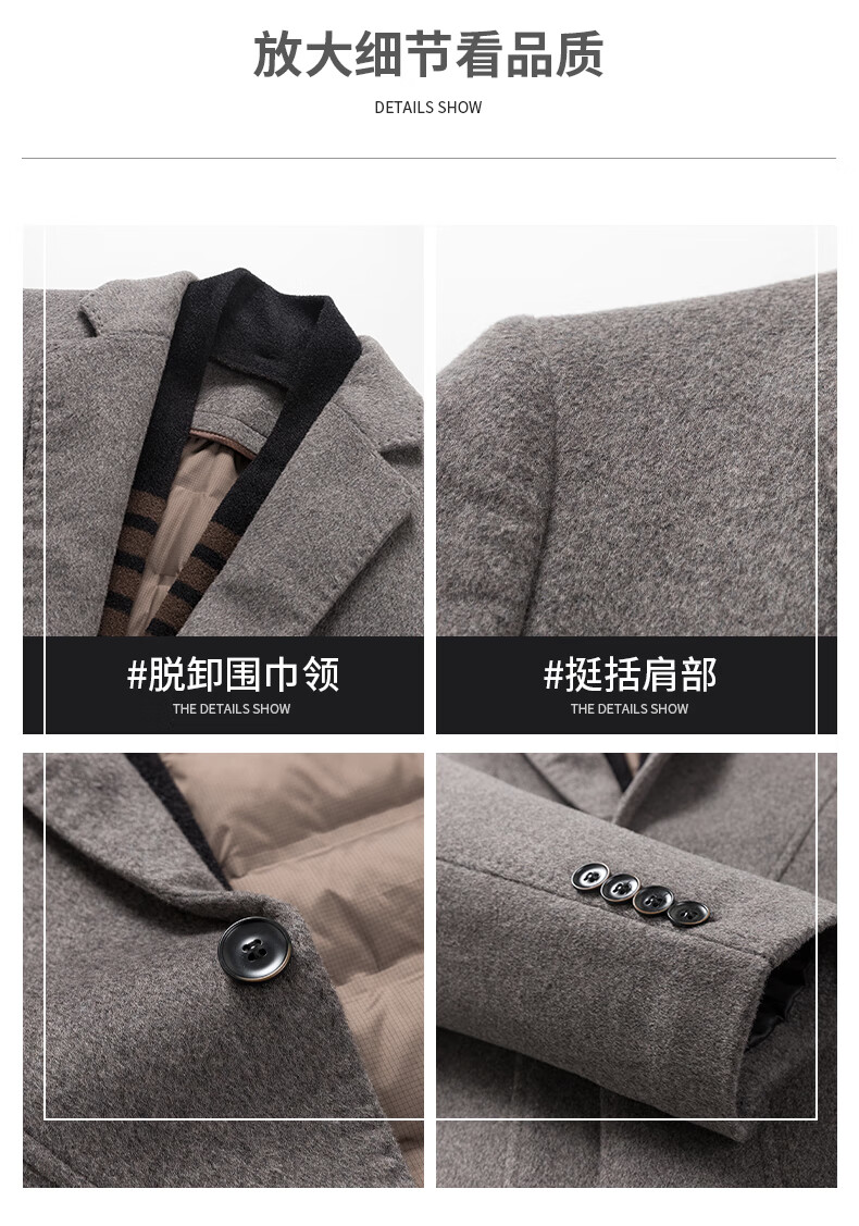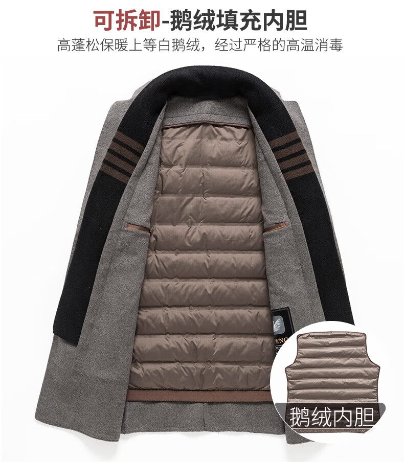 ROMON high-end woolen coat men's windbreaker jacket mid-length autumn and winter goose down jacket liner gray coffee removable goose down liner XL 180 recommended 140-155 Jin Jin equals 0.5 kg