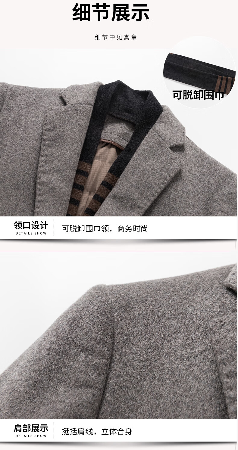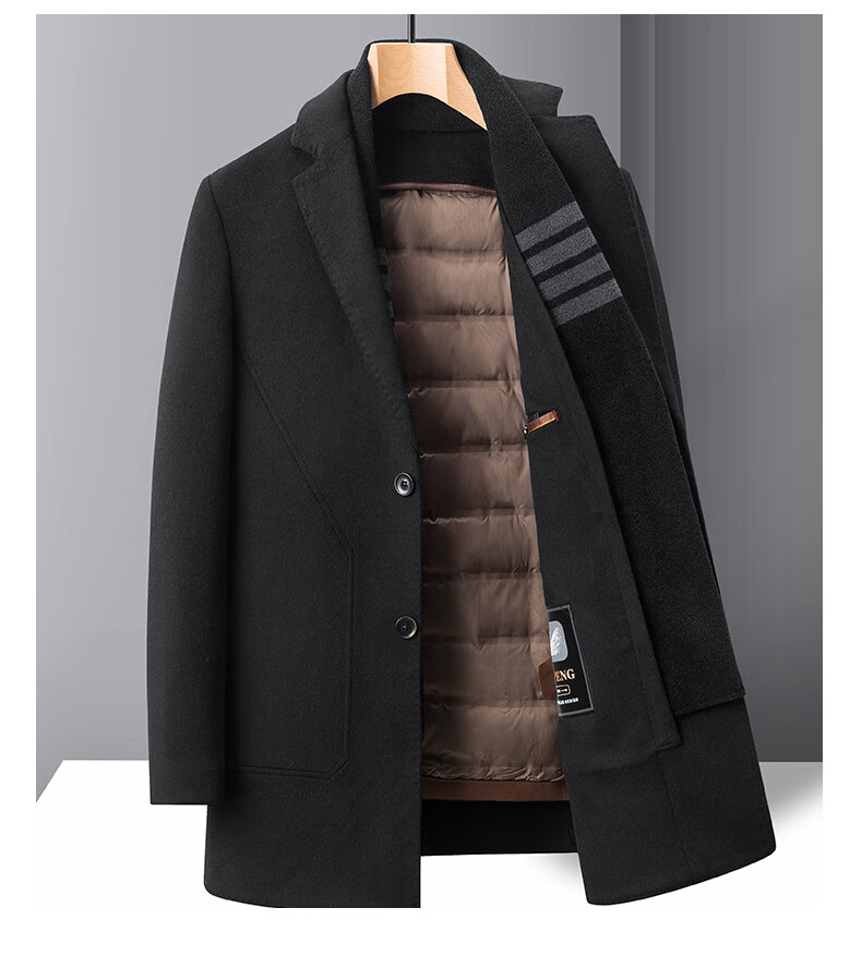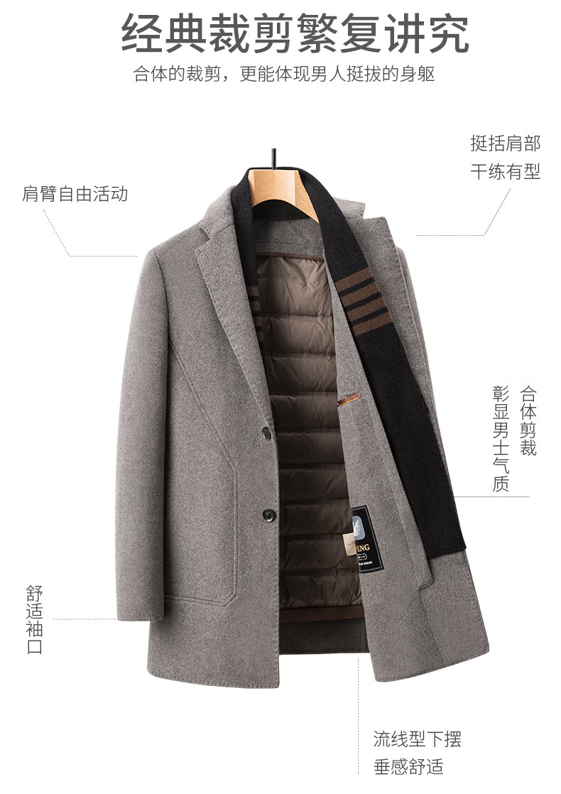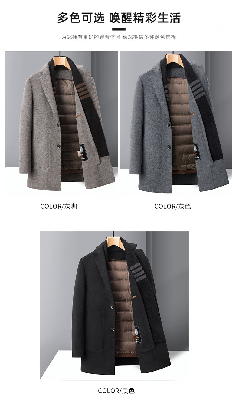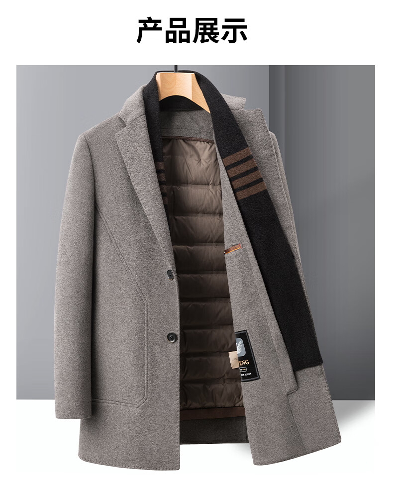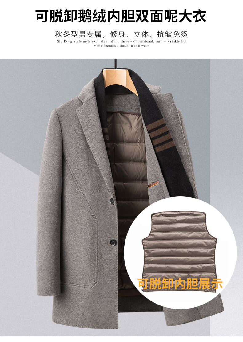 ROMON high-end woolen coat men's windbreaker jacket mid-length autumn and winter goose down jacket liner gray coffee removable goose down liner XL 180 recommended 140-155 Jin Jin equals 0.5 kg