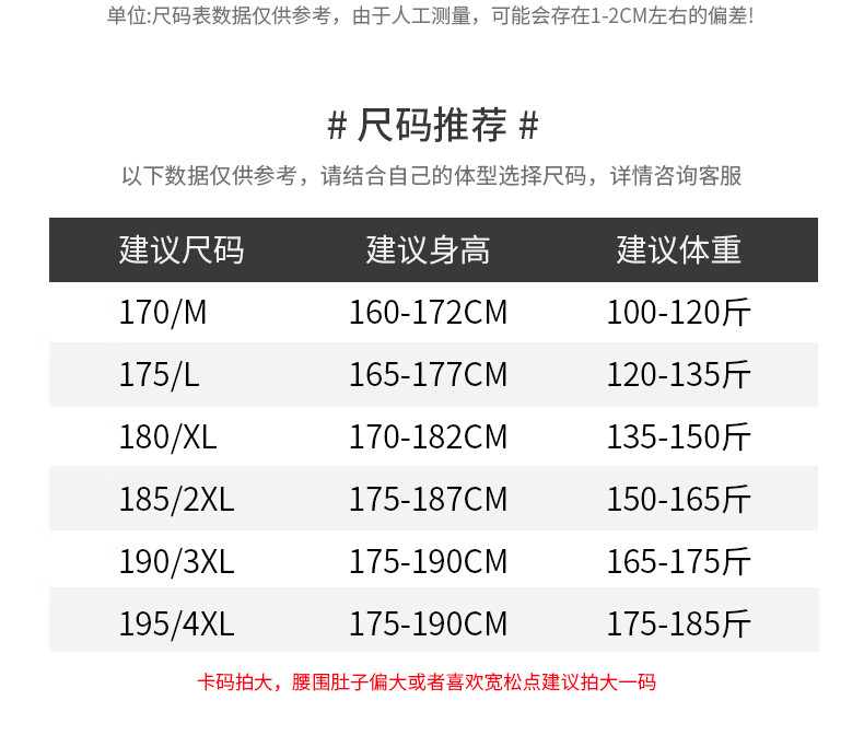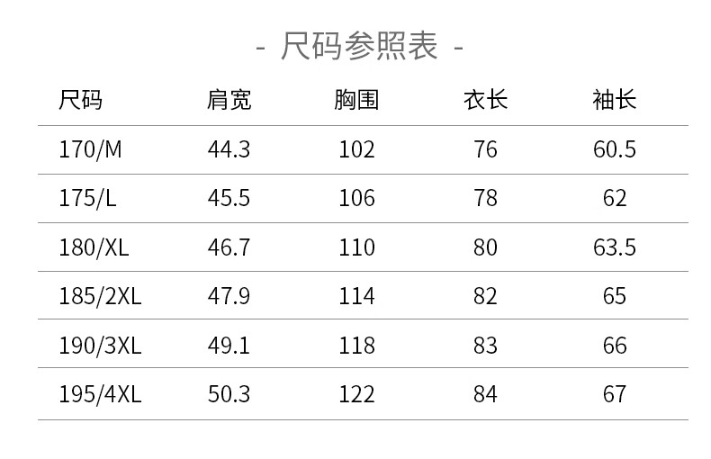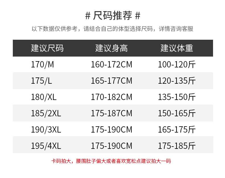 China (cm) 165 / 88-90 170 / 96-98 175 / 108-110 180 / 118-122 185 / 126-130