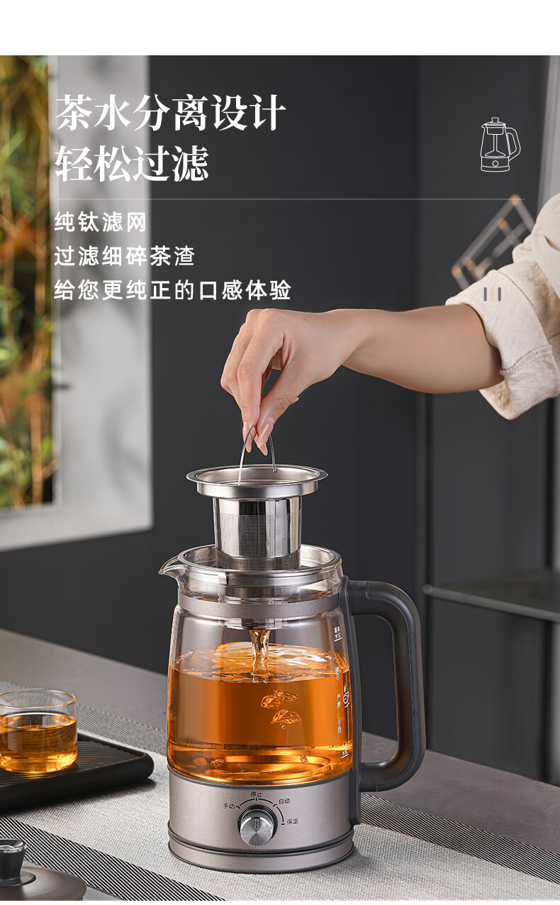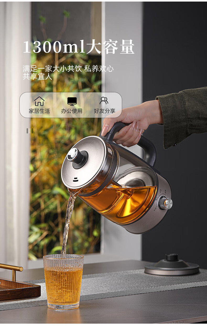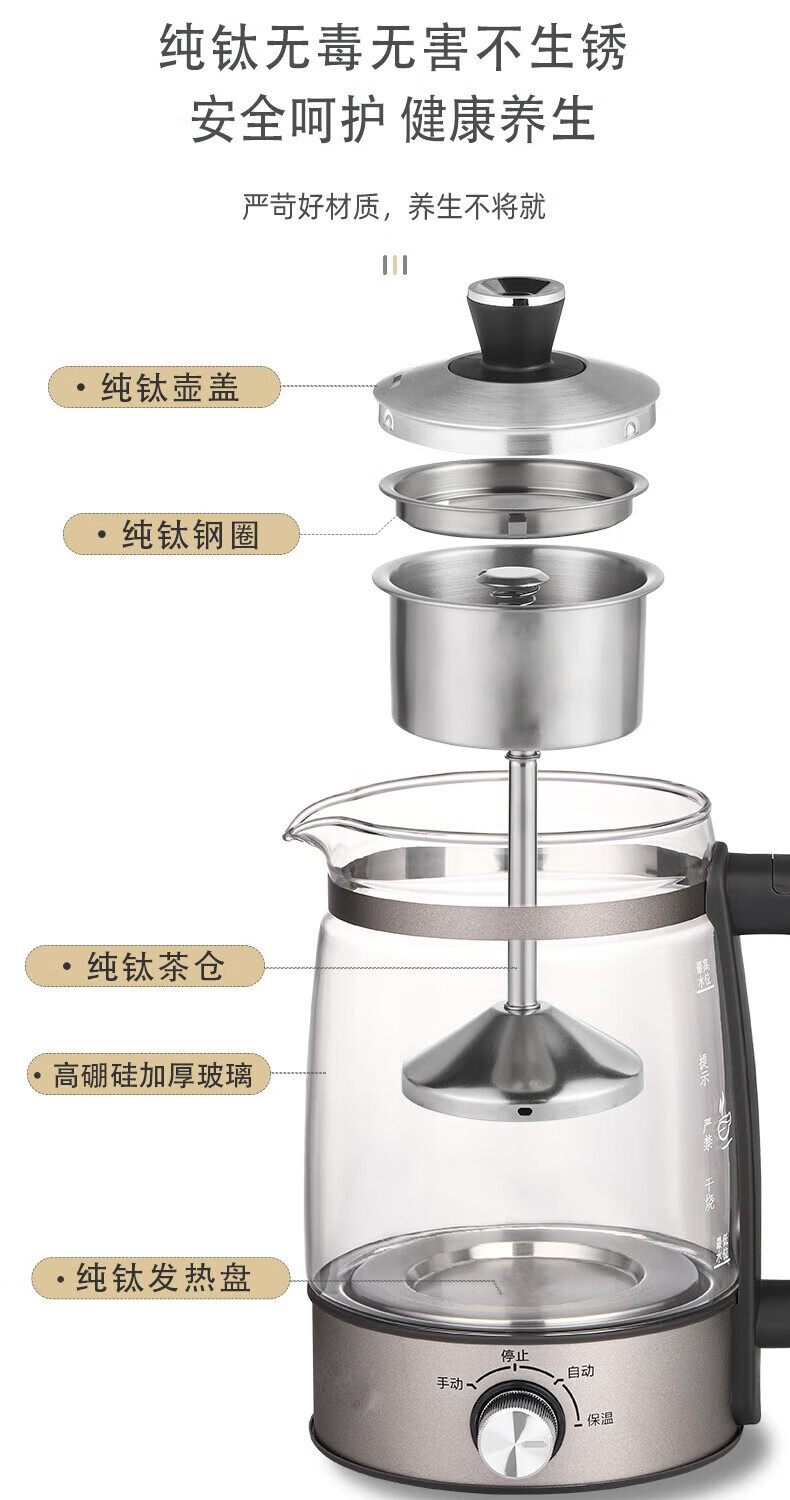 Silver pure titanium tea kettle steaming tea kettle spray type steam tea kettle fully automatic household small health pot flower tea kettle pure titanium spray type tea kettle - 1.3L