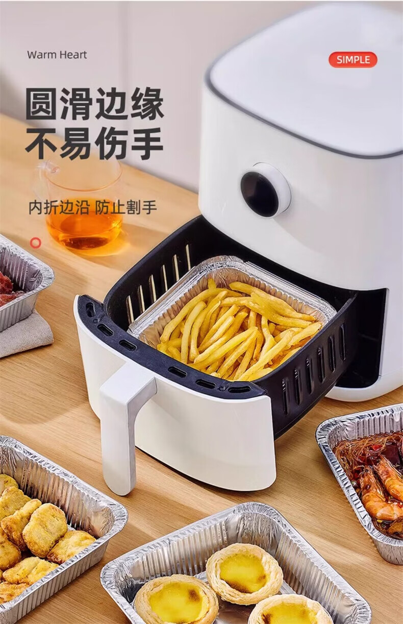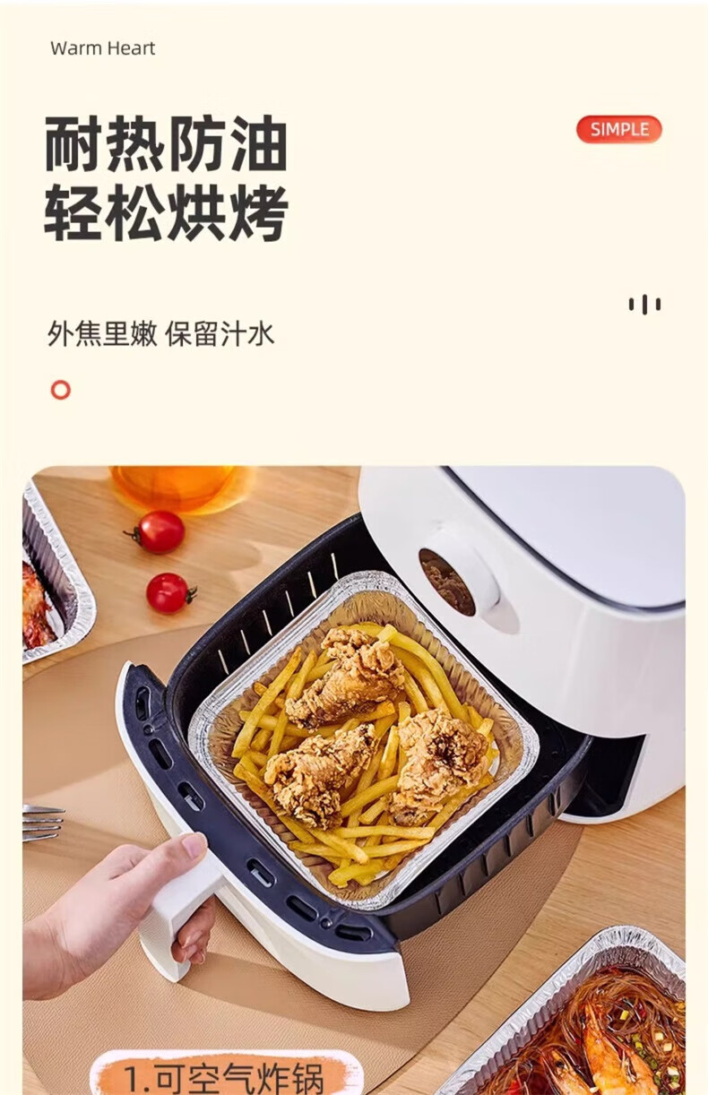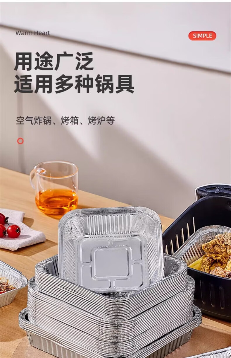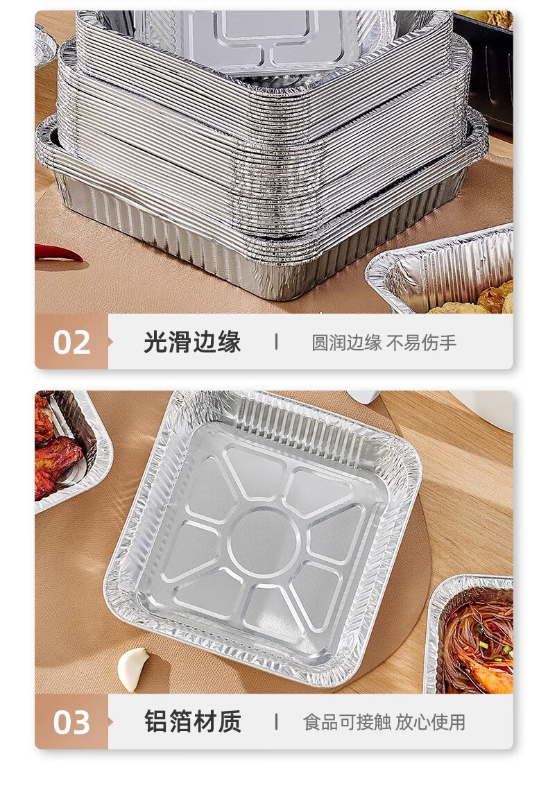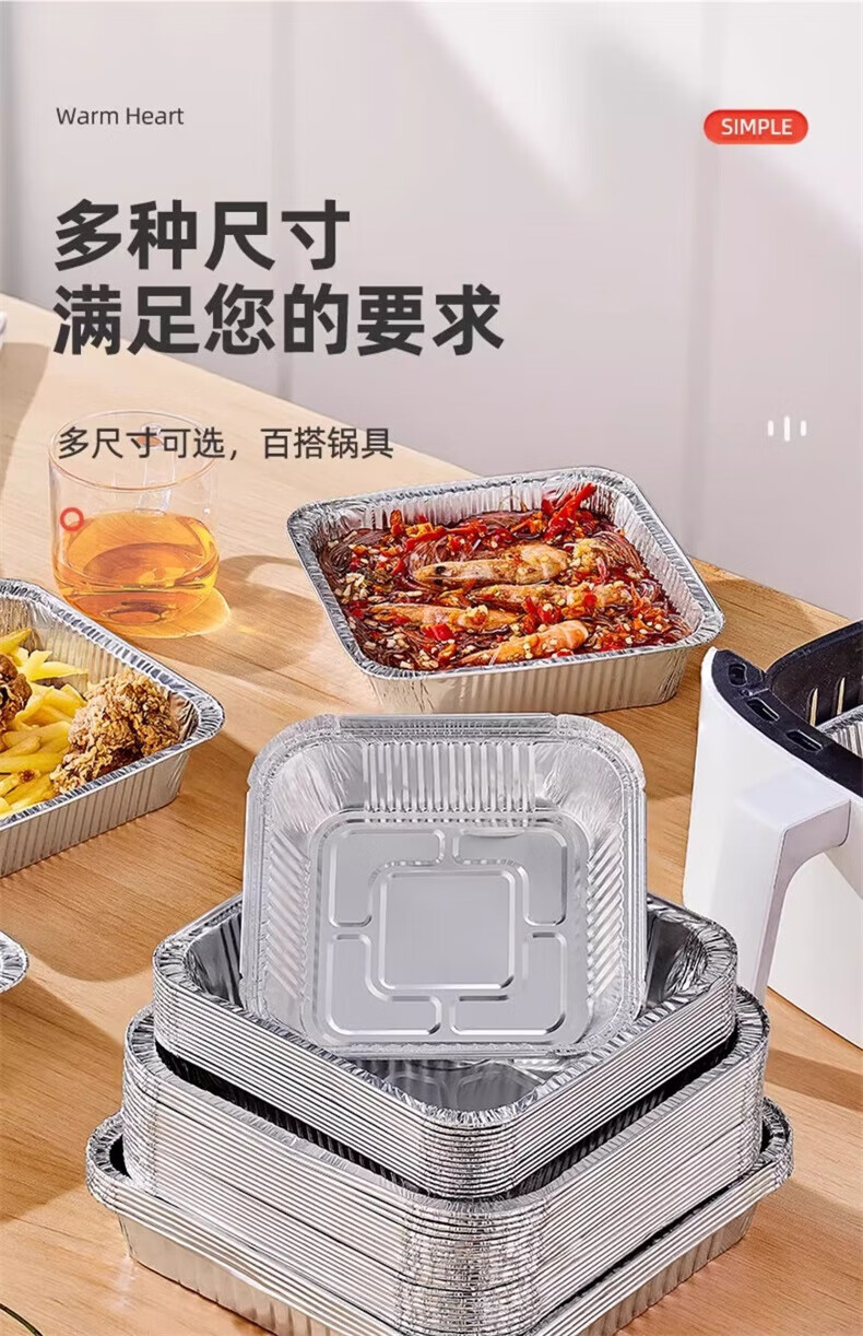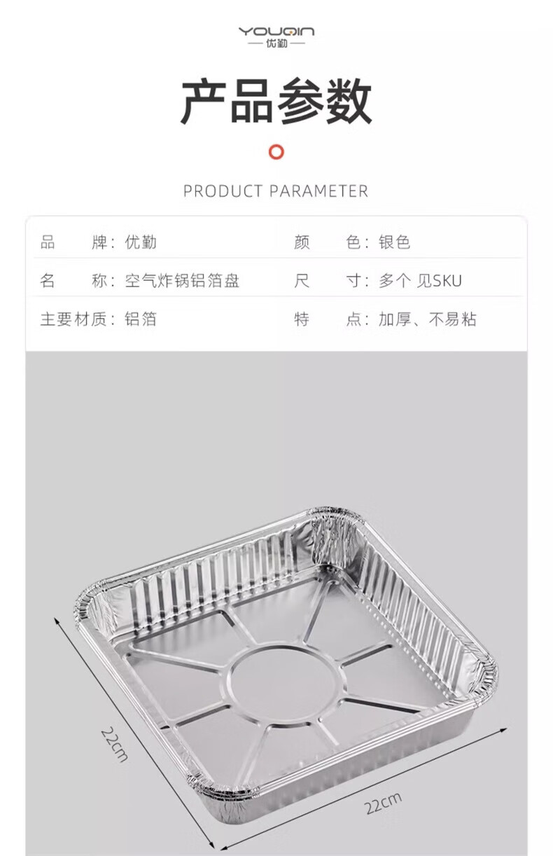 YOUQIN air fryer special tinfoil plate square baking tray tinfoil box baking tinfoil oven household aluminum foil tinfoil bowl square thickened 22cm*22cm 20 pieces