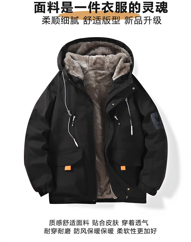 Woodpecker Plush Cotton Jacket Men's Winter 2025 New Men's Cotton Coat Featherless Thick Down Jacket Warm Cotton Jacket Men's 999 Black Plush Velvet Fashion & Warmth 2XL (Recommended 140-160 Jin Jin equals 0.5 kg)