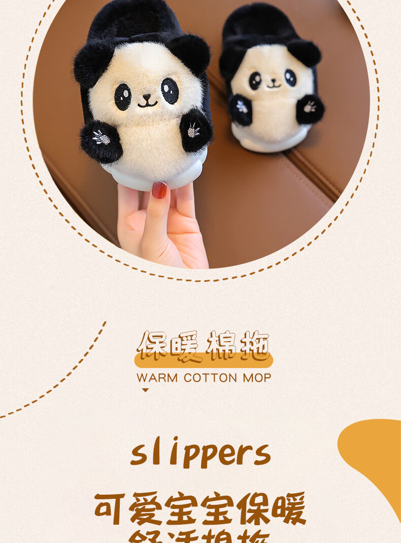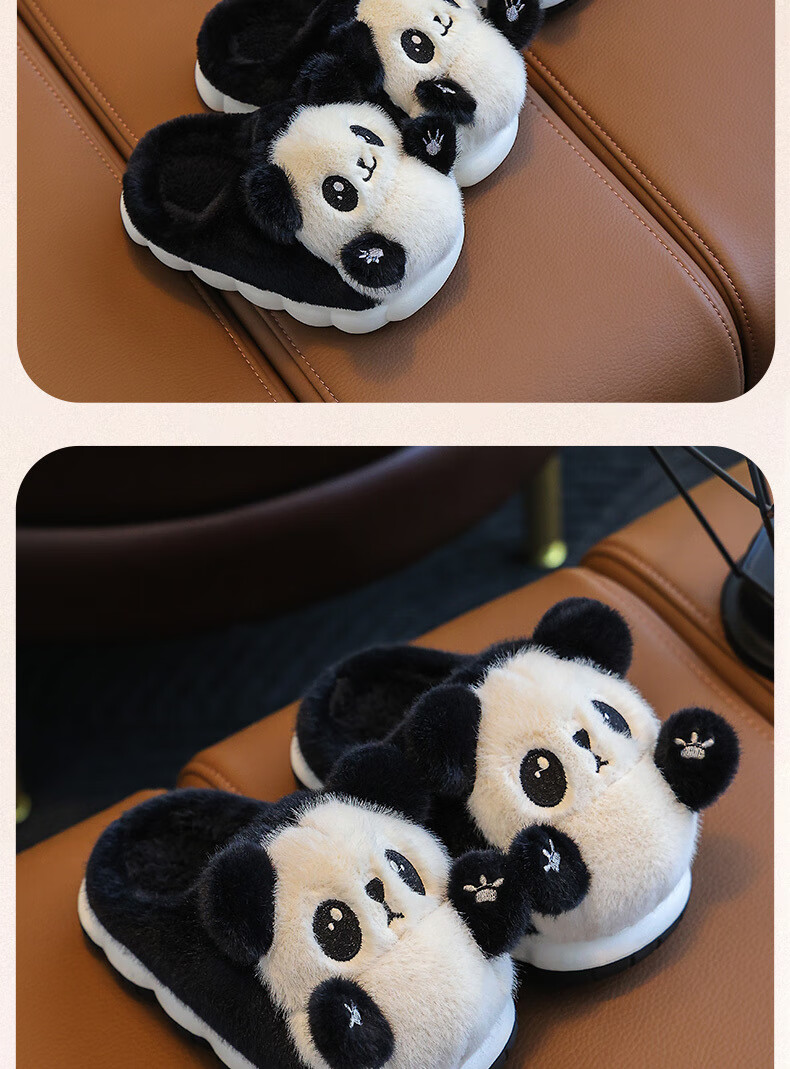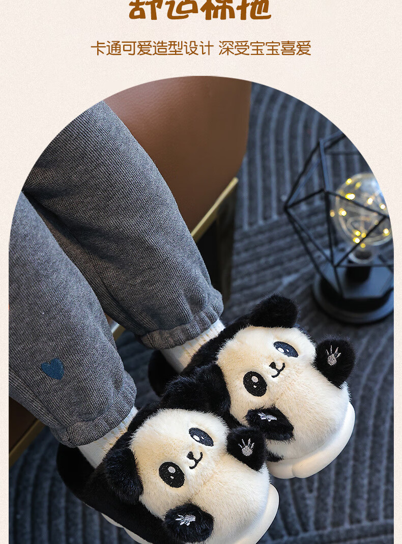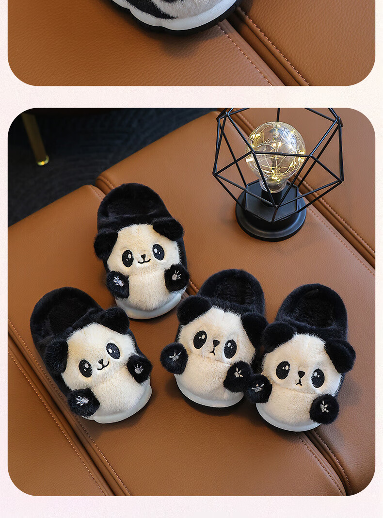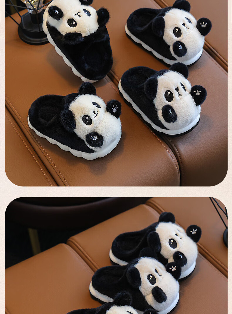 Gesufan winter children's cotton slippers, boys' stylish cartoon children's cotton slippers, cute home indoor and outdoor warm furry slippers, black panda slippers, size 24/25, inner length 15.0cm, 2-3 years old