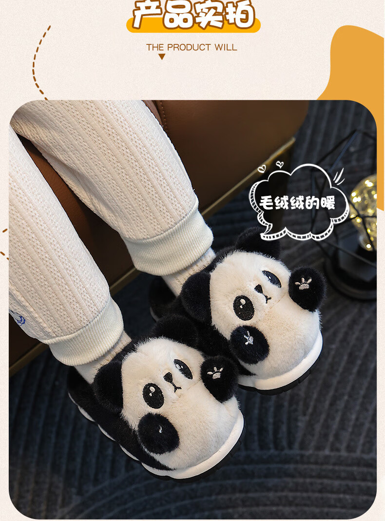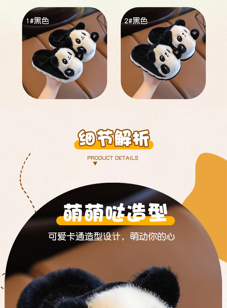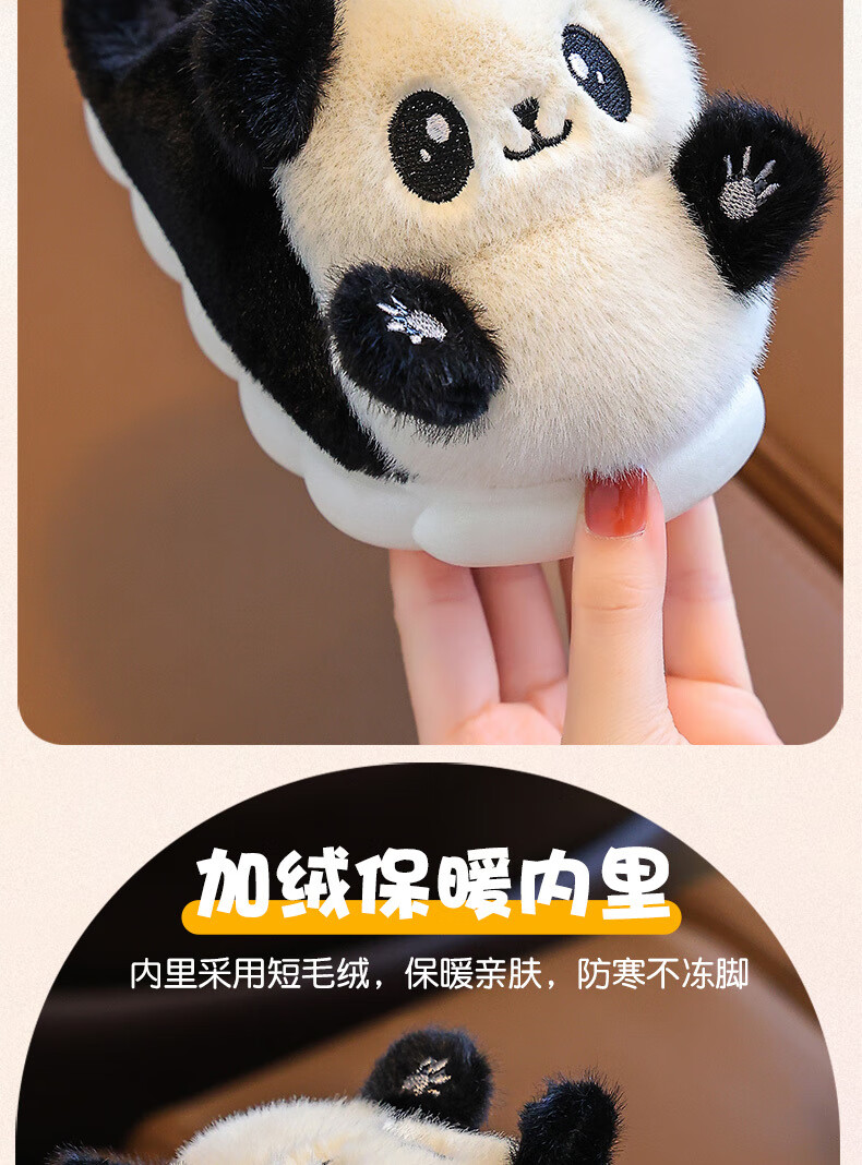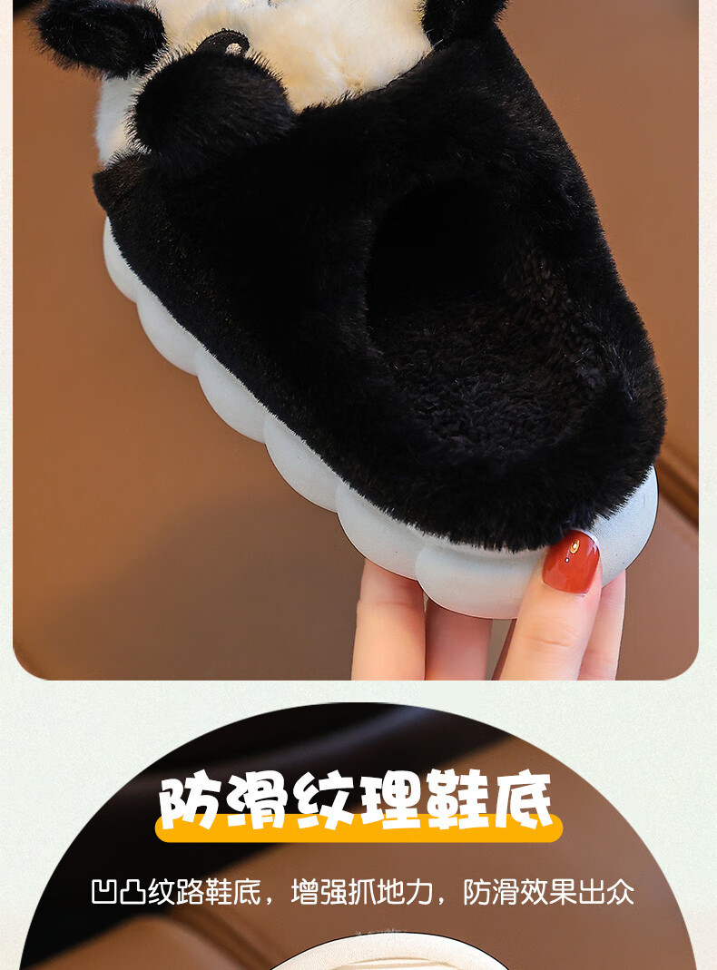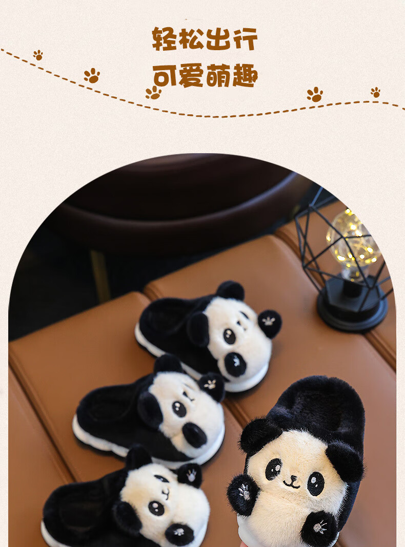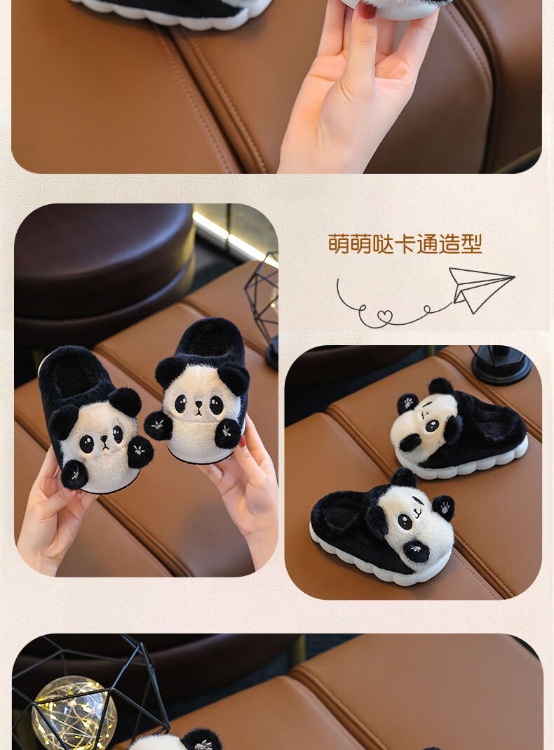 Gesufan winter children's cotton slippers, boys' stylish cartoon children's cotton slippers, cute home indoor and outdoor warm furry slippers, black panda slippers, size 24/25, inner length 15.0cm, 2-3 years old