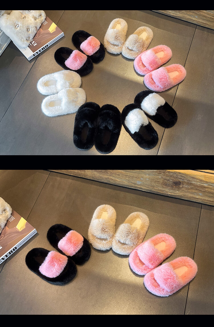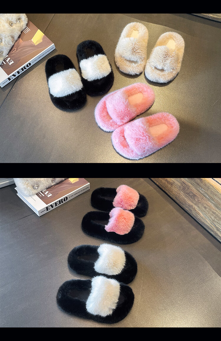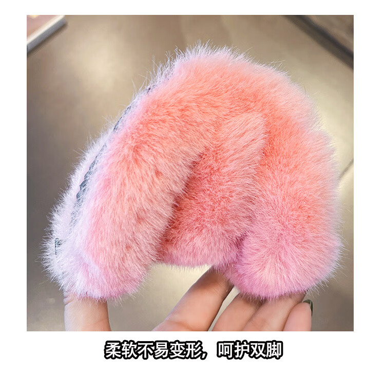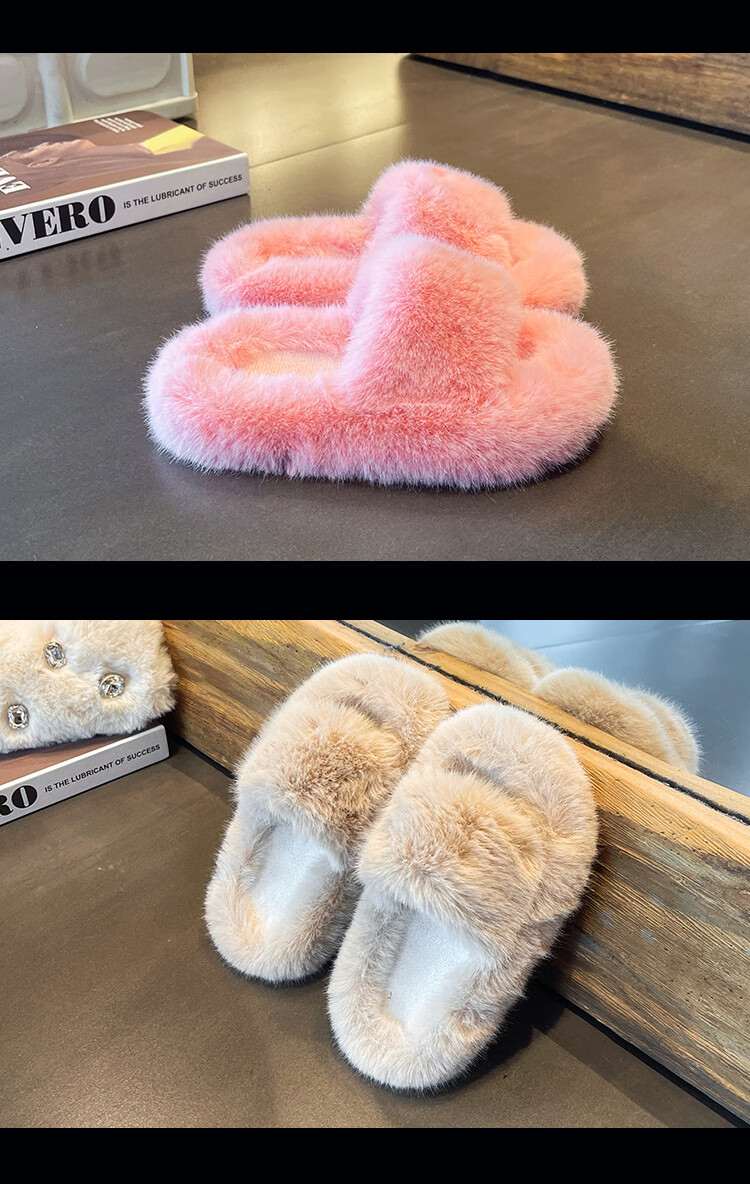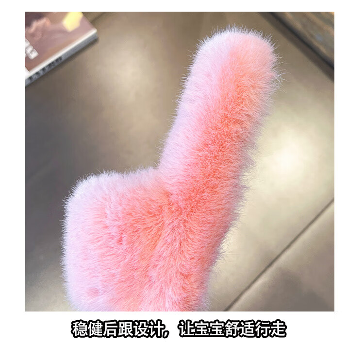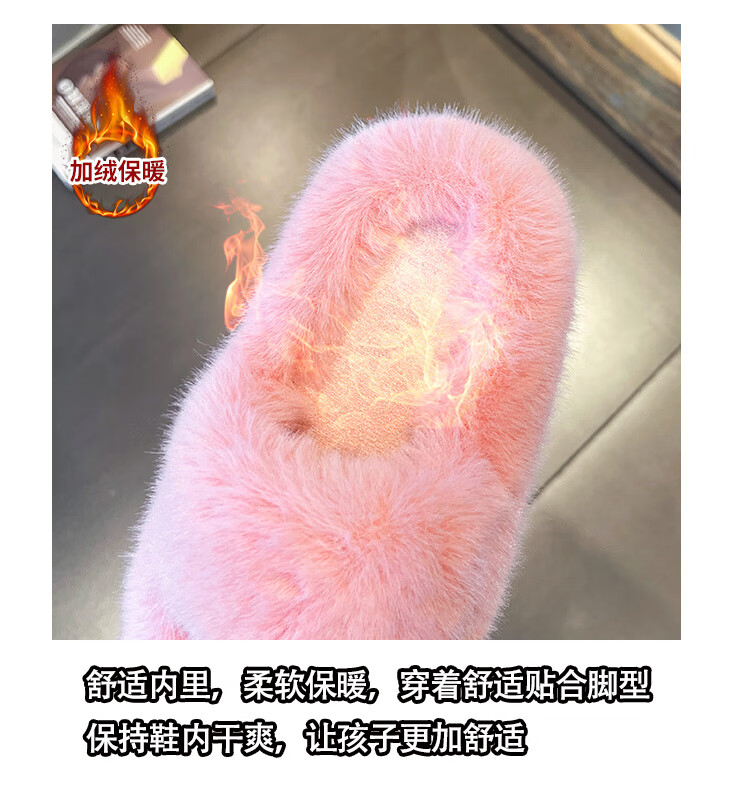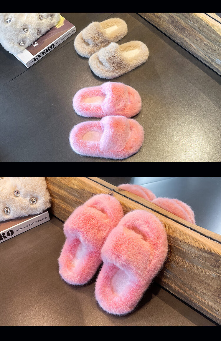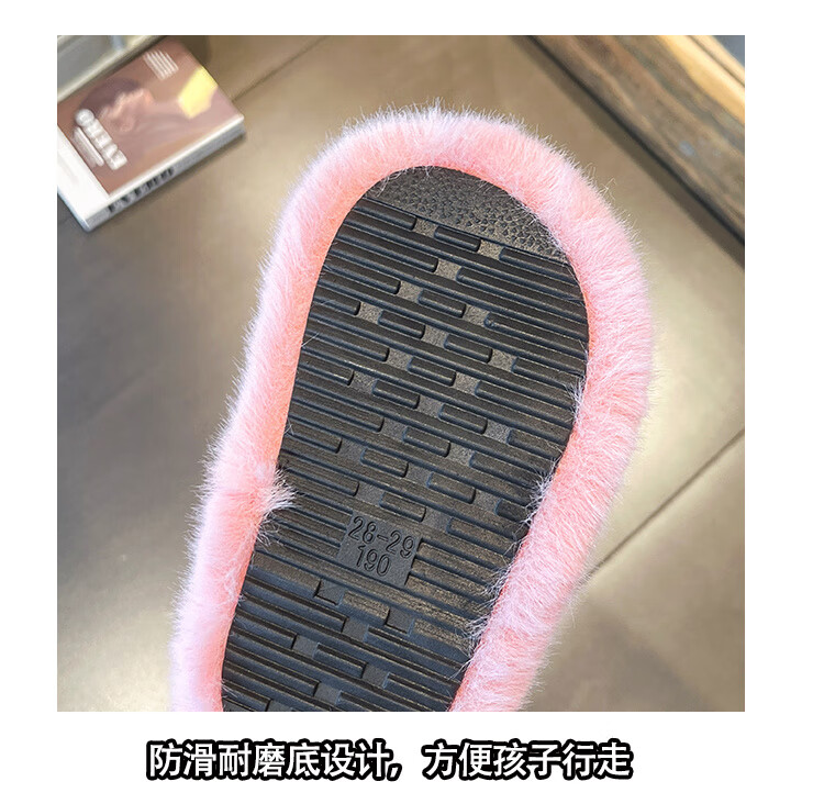 Xianzheyi Girls' Furry Slippers 2023 Winter New Indoor Non-Slip Slippers Western Style Children's Outerwear Warm Cotton Slippers Beige 28