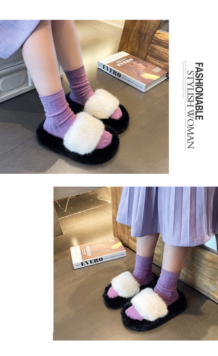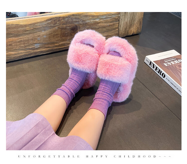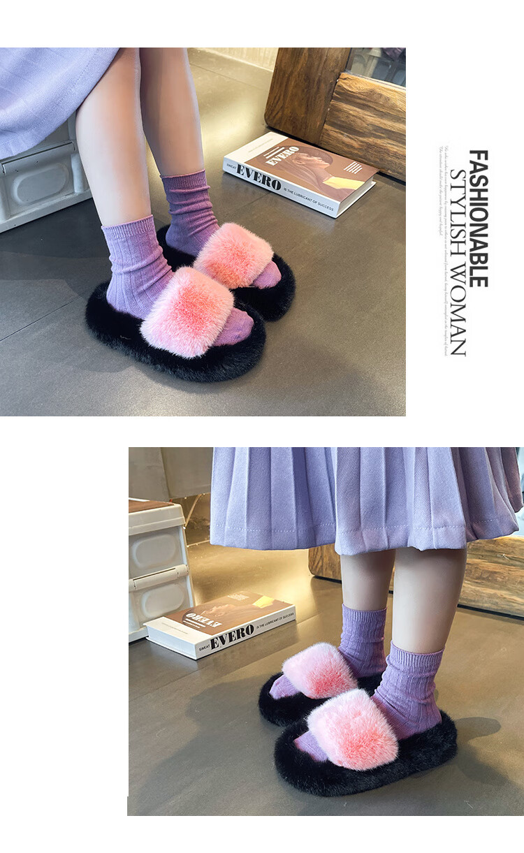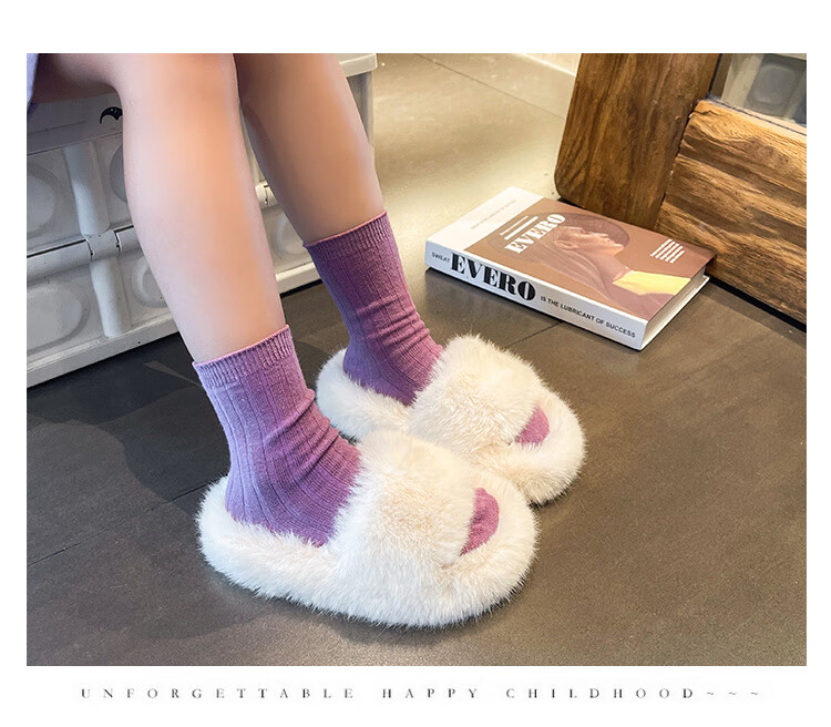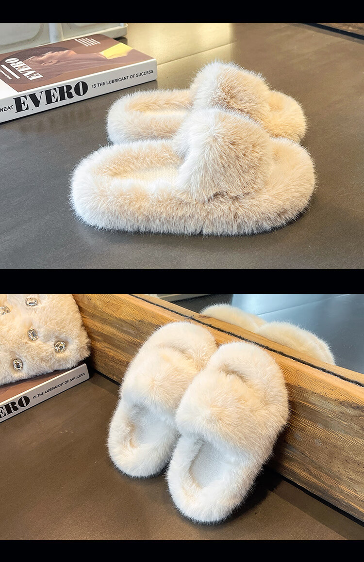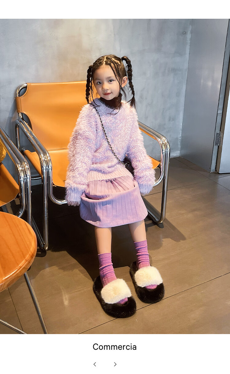 Xianzheyi Girls' Furry Slippers 2023 Winter New Indoor Non-Slip Slippers Western Style Children's Outerwear Warm Cotton Slippers Beige 28