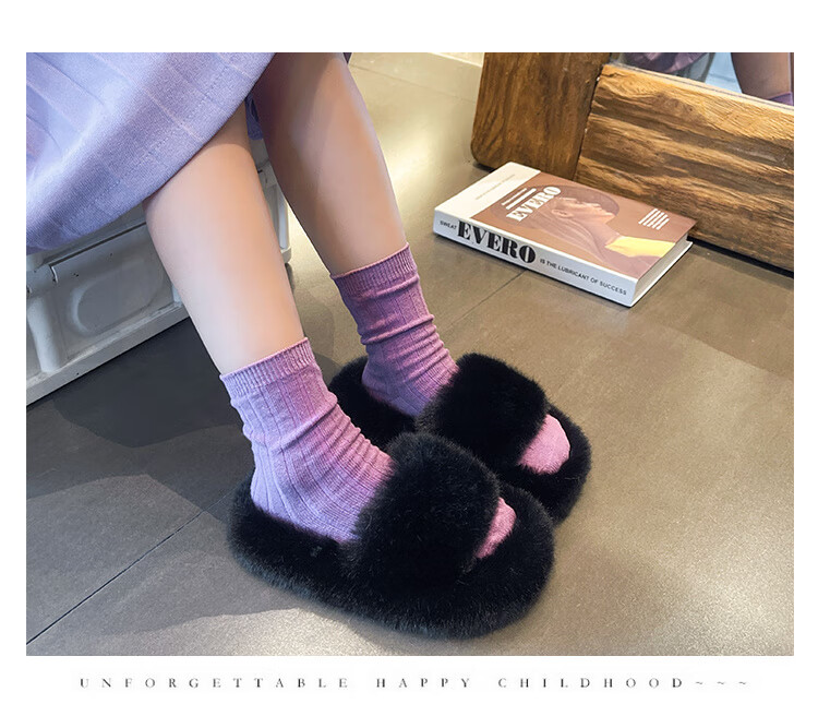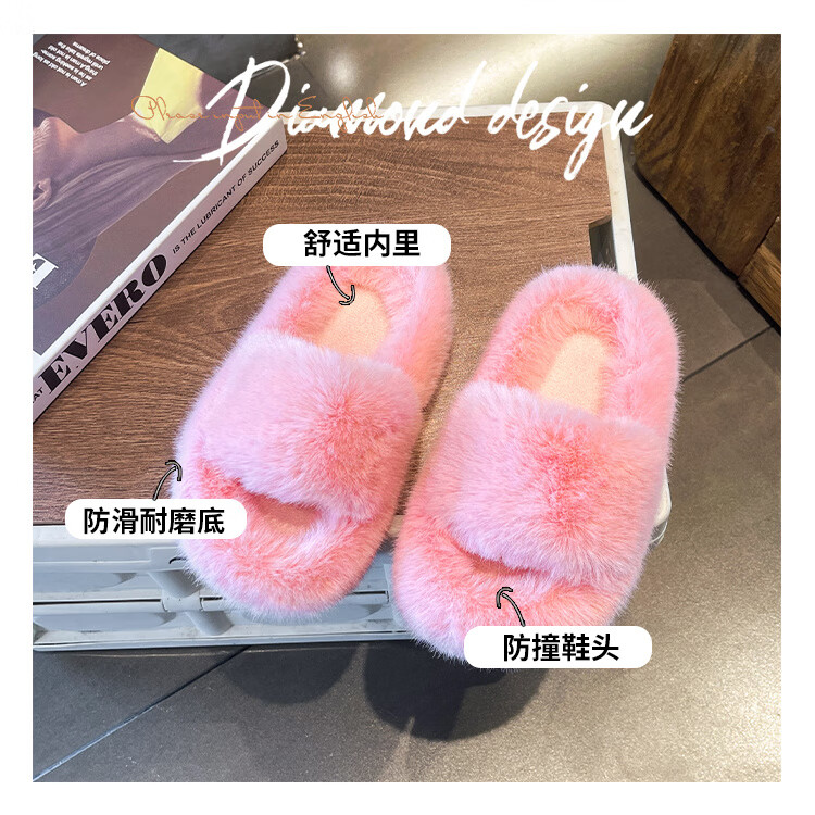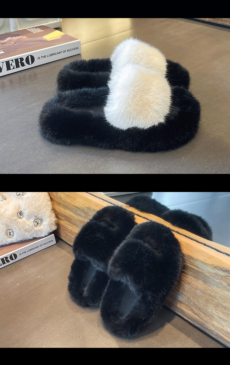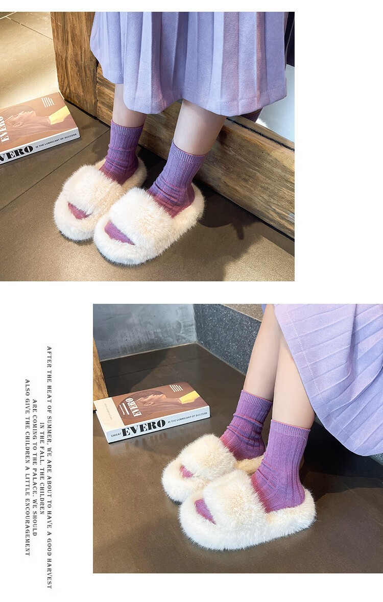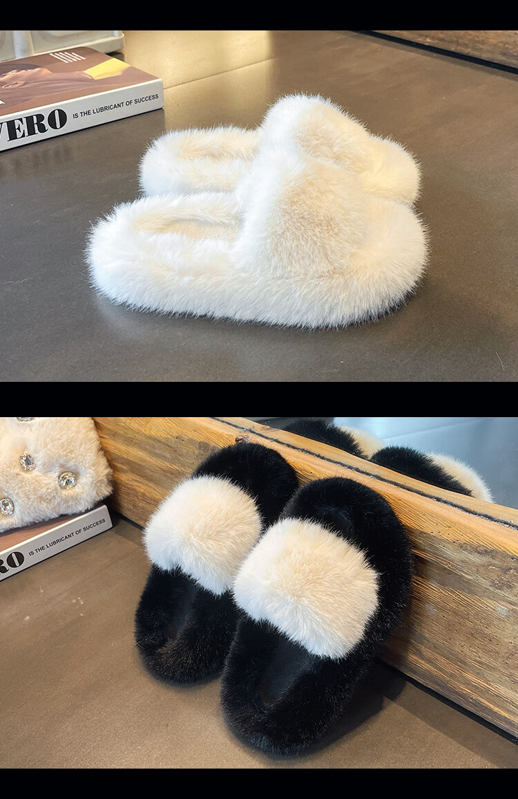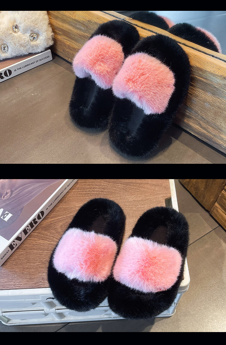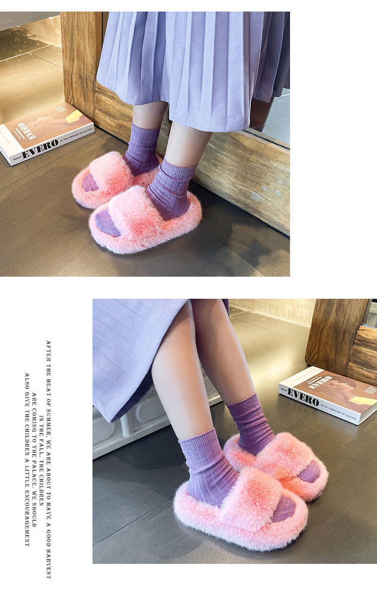 Xianzheyi Girls' Furry Slippers 2023 Winter New Indoor Non-Slip Slippers Western Style Children's Outerwear Warm Cotton Slippers Beige 28