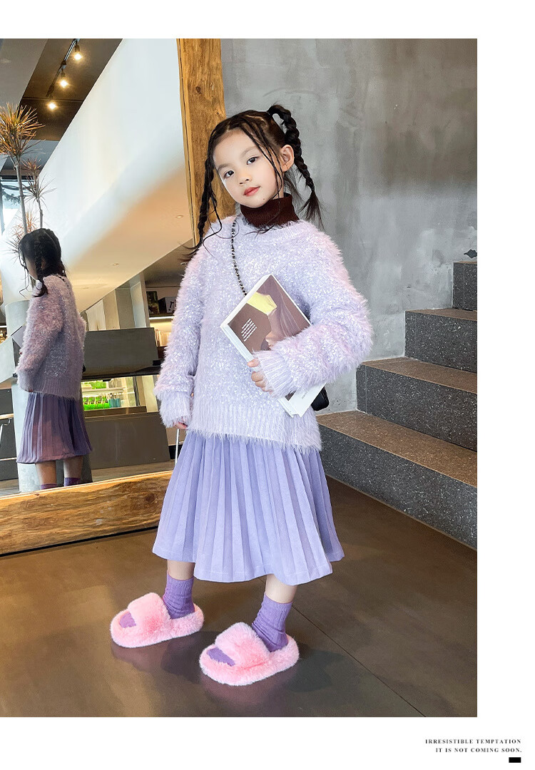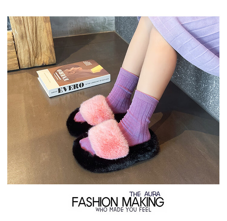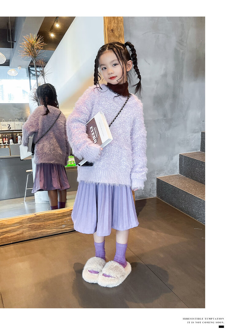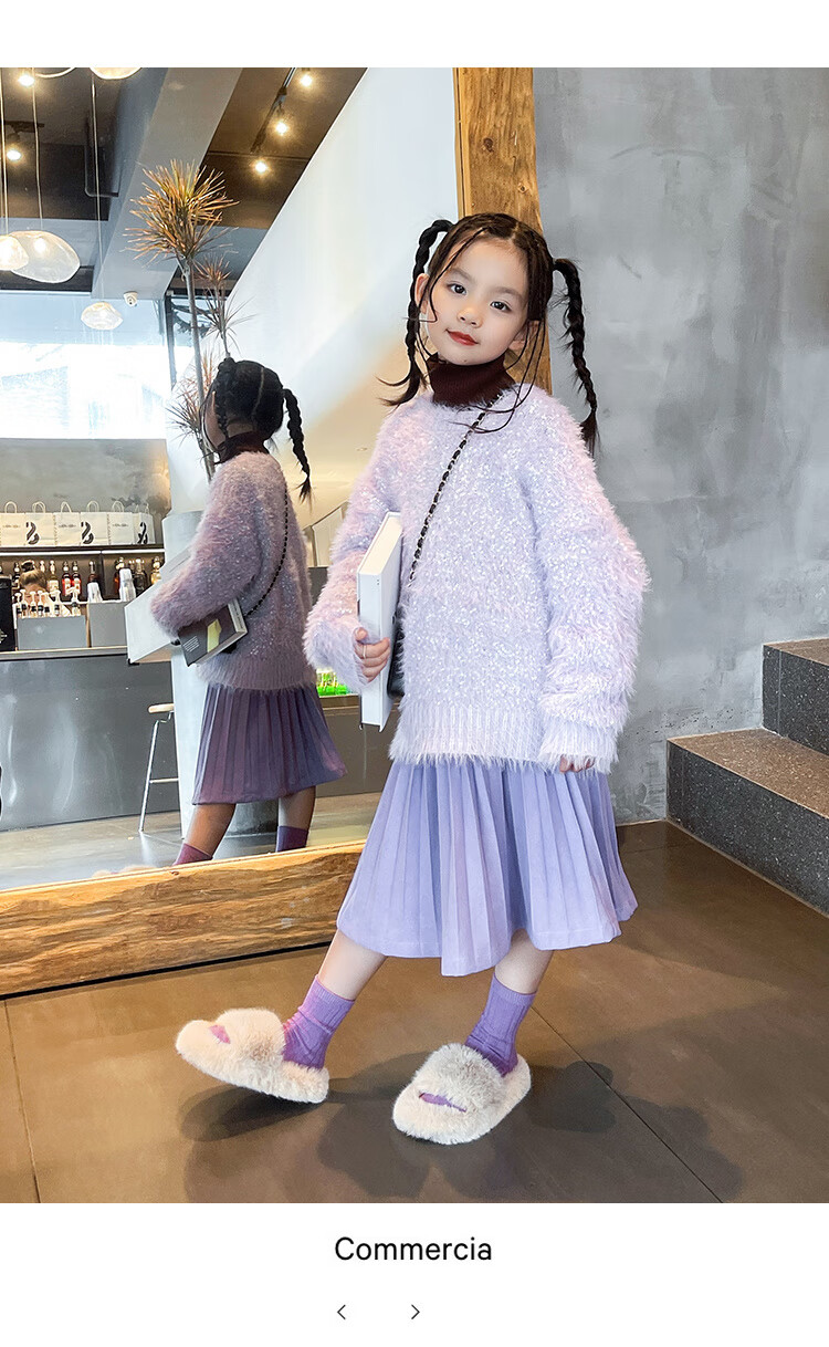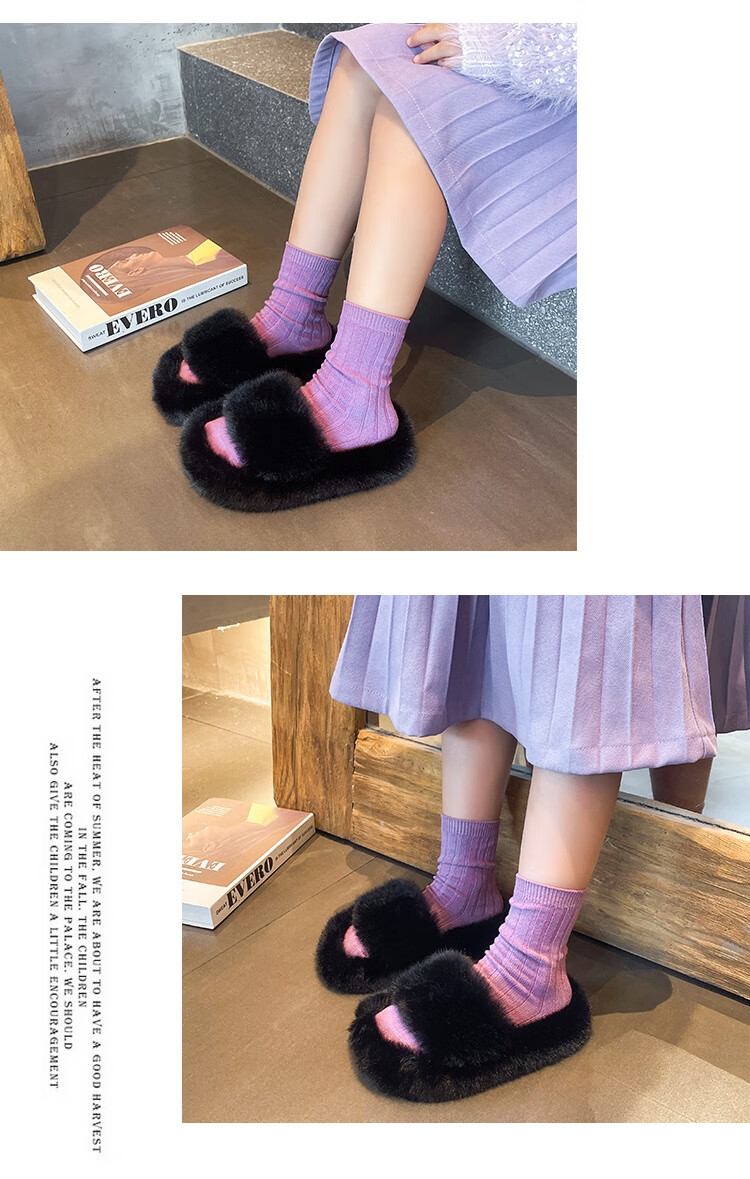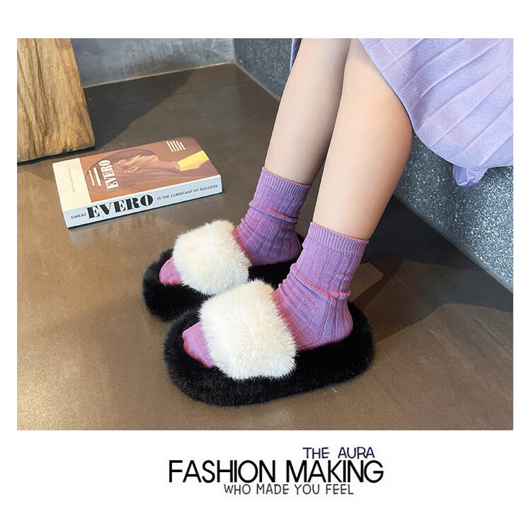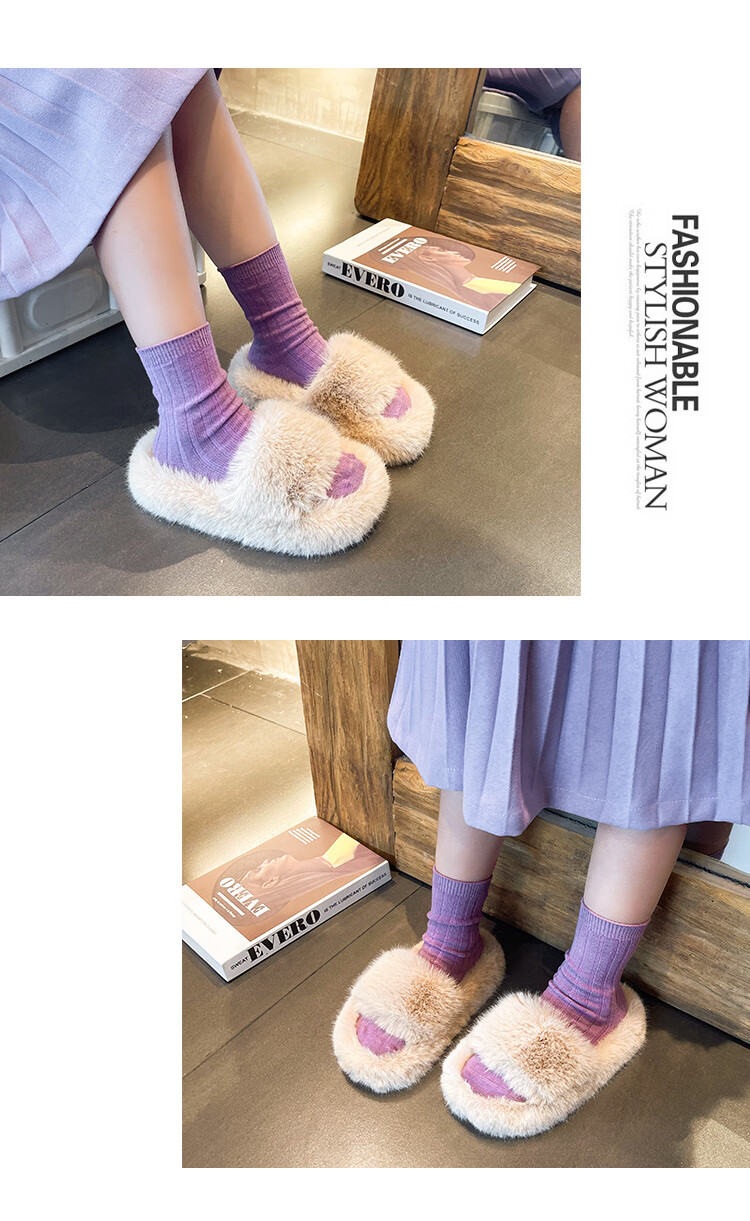 Xianzheyi Girls' Furry Slippers 2023 Winter New Indoor Non-Slip Slippers Western Style Children's Outerwear Warm Cotton Slippers Beige 28