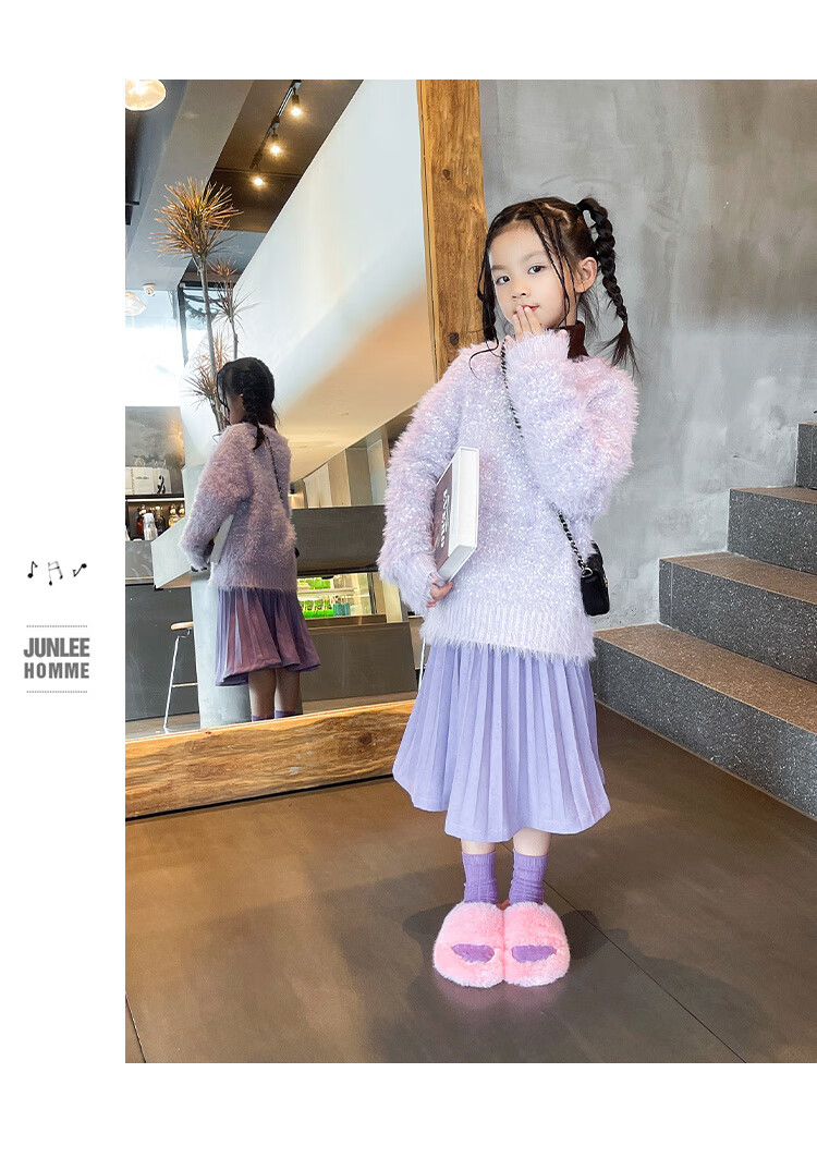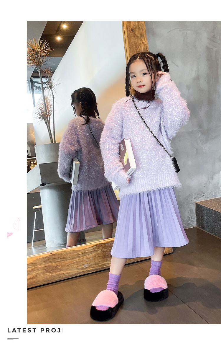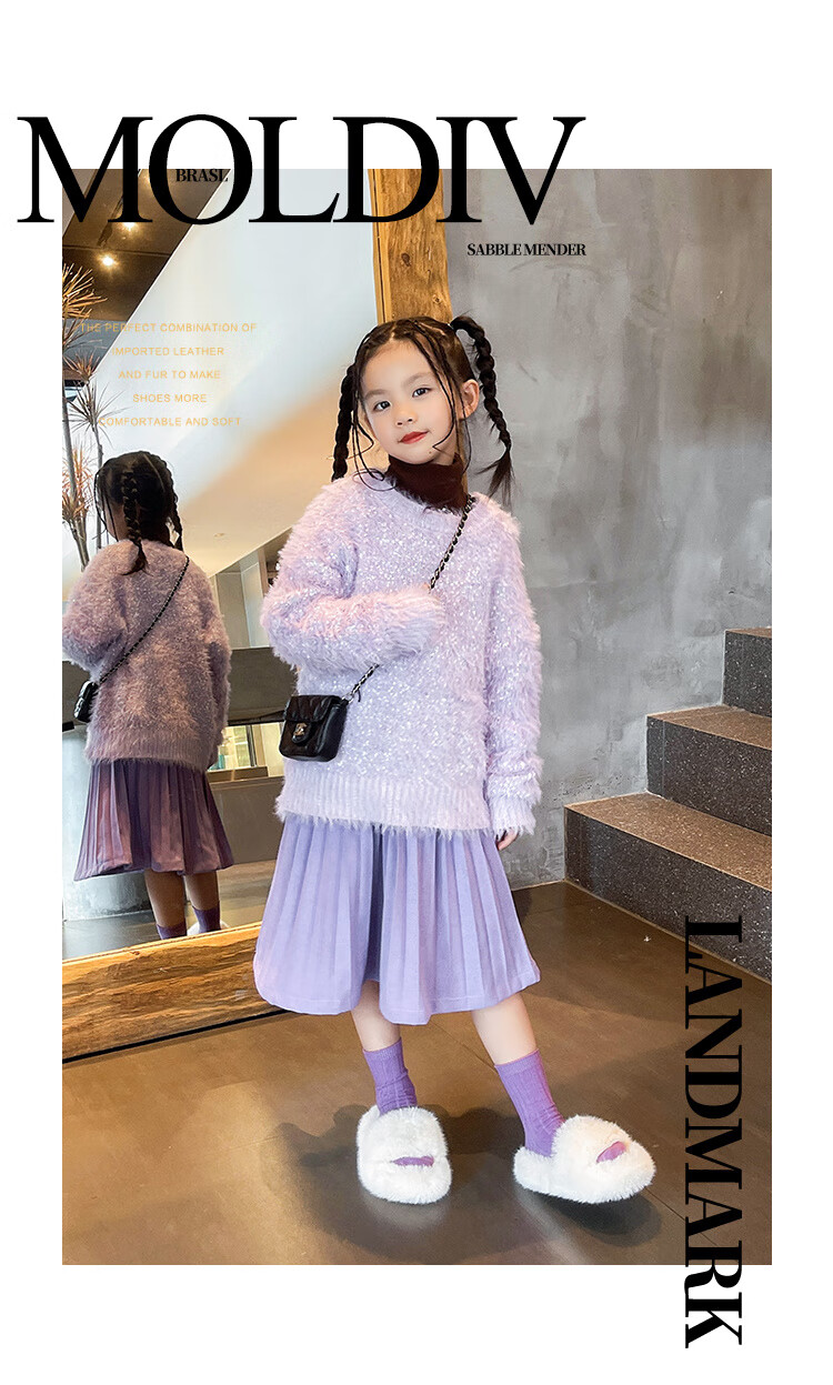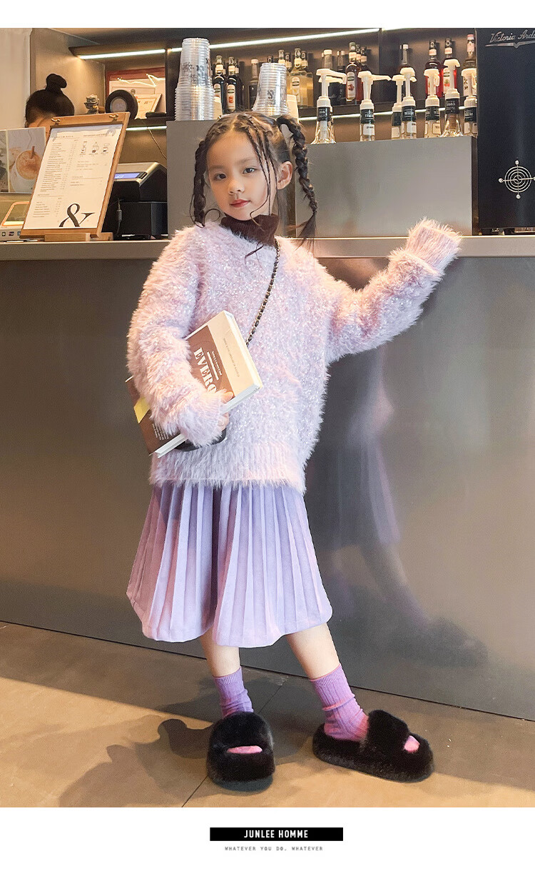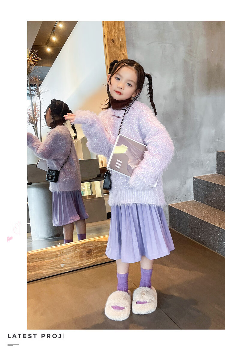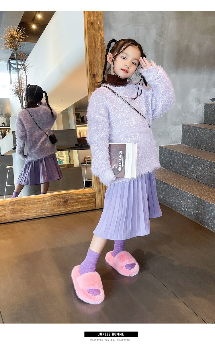 Xianzheyi Girls' Furry Slippers 2023 Winter New Indoor Non-Slip Slippers Western Style Children's Outerwear Warm Cotton Slippers Beige 28