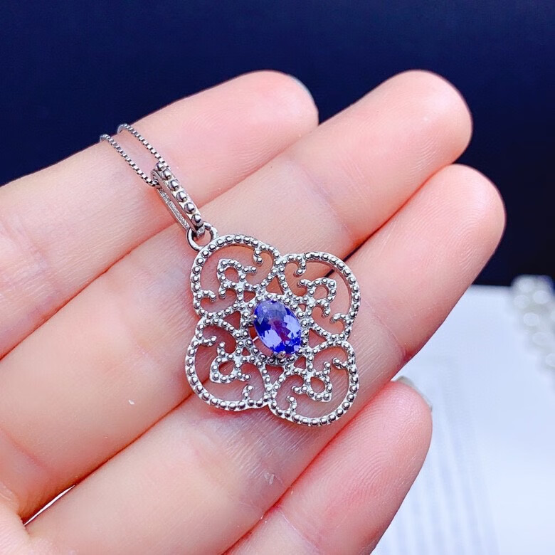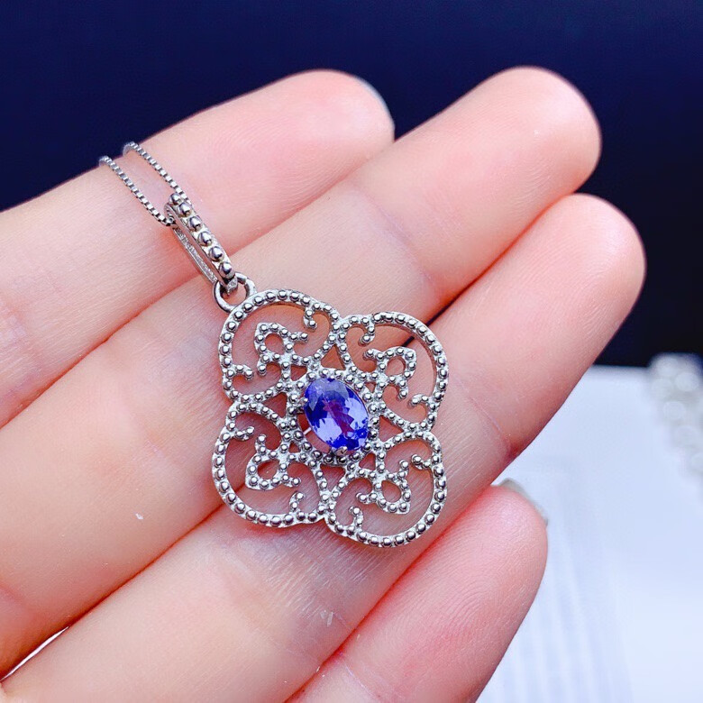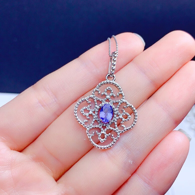 Guran emerald pendant natural tanzanite necklace 925 silver precision inlaid platinum plated main stone 4*6mm simple bud