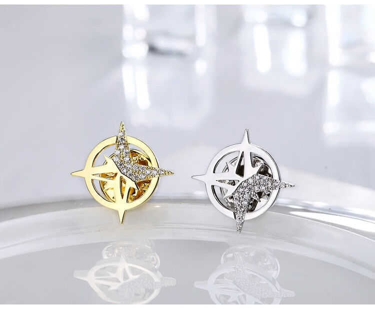 The six-pointed star at the end of the world, men's brooch-like suit corsage, coat collar pin, personalized simple suit, exquisite decoration, collection, priority delivery, cross star silver