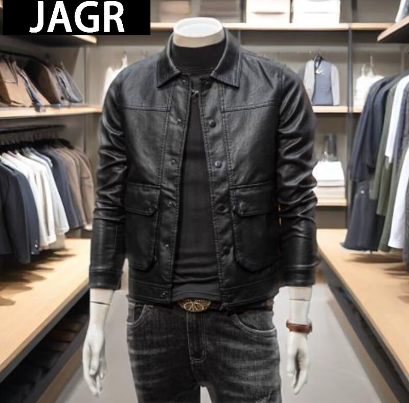 JAGR trendy brand leather jacket men's 2024 new workwear top light business men's motorcycle trendy men's PU leather jacket black M